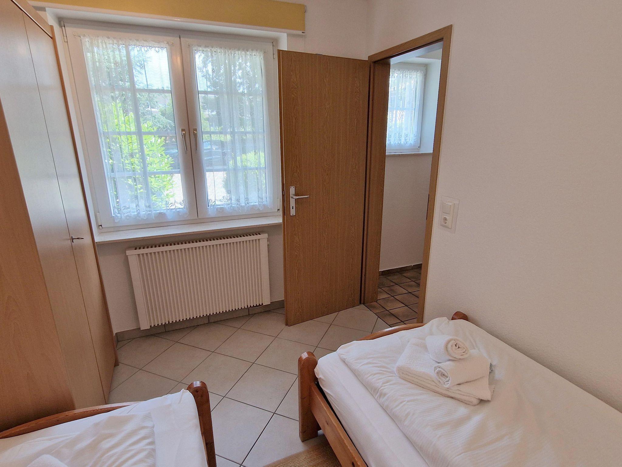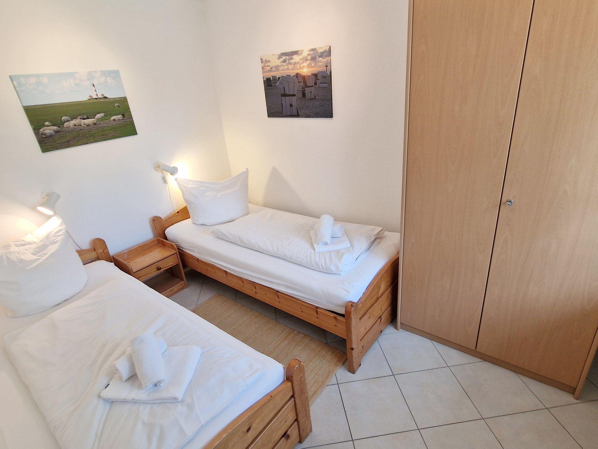 Schlafzimmer2 Einzelbetten, Nachttisch, Kleiderschrank, E-Heizung, Klappstuhl
