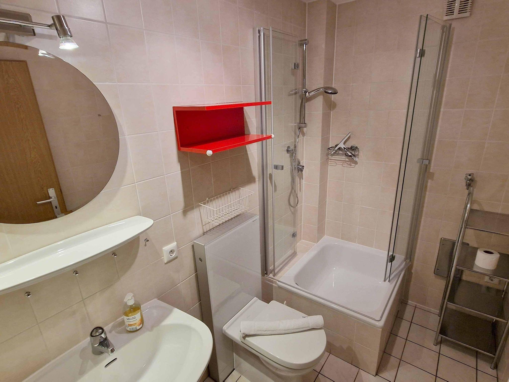 BadDusche, Waschbecken, WC, Rollwagen, Duschkabine