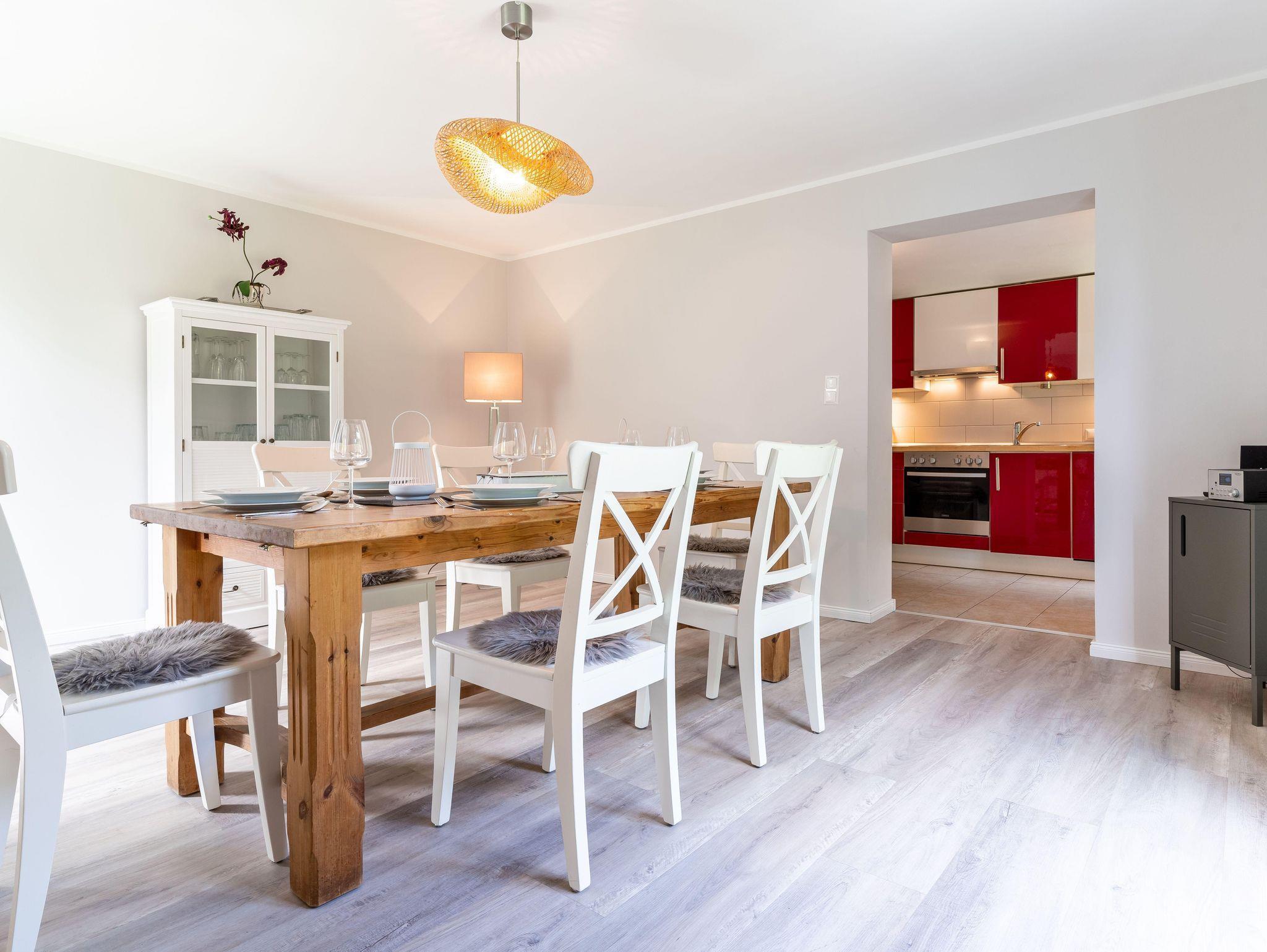 Unsere Wohnung Annika ist unsere größte Wohnung. Mit Küche, Esszimmer, drei Schlafzimmern, Bad, großem Wohnzimmer mit Homeoffice Arbeitsplatz und einem großen Garten ist sie ideal für große Familien.