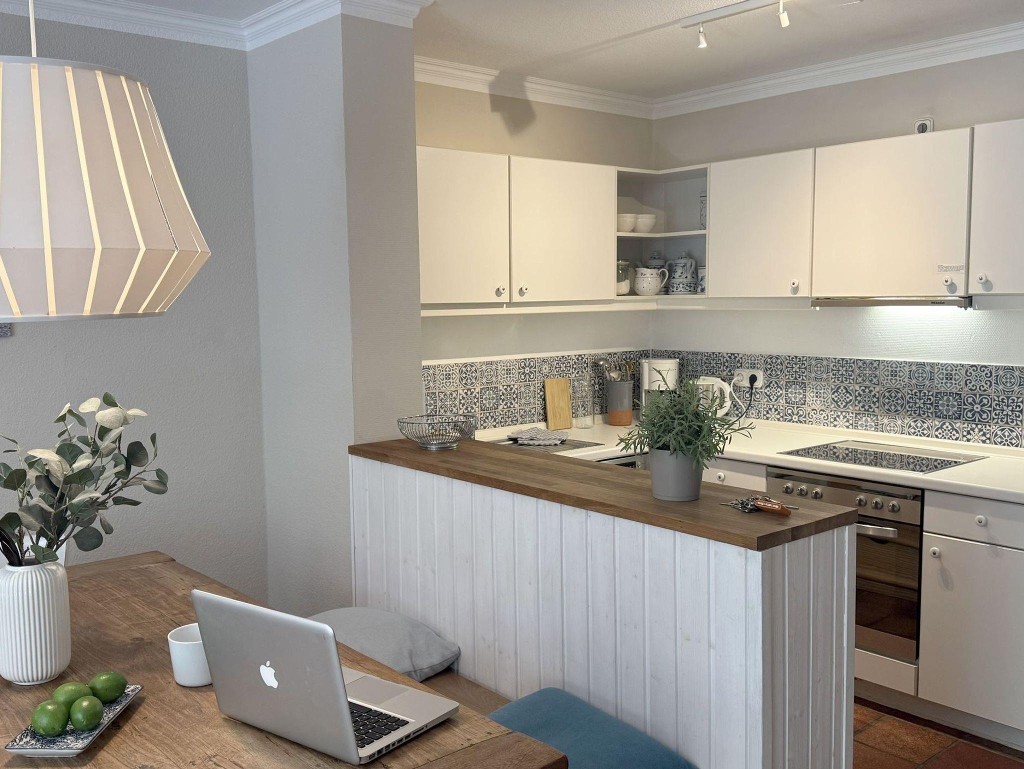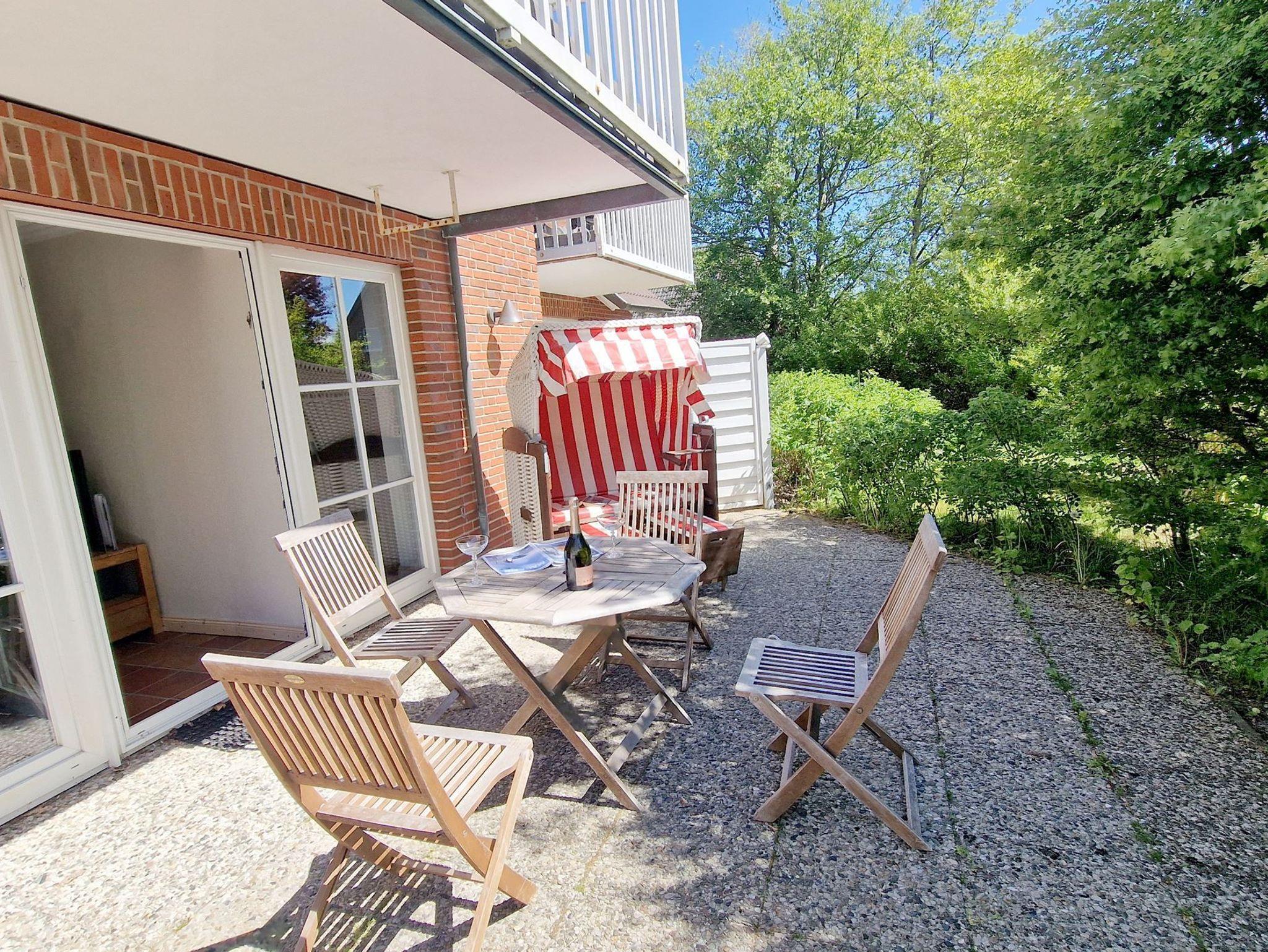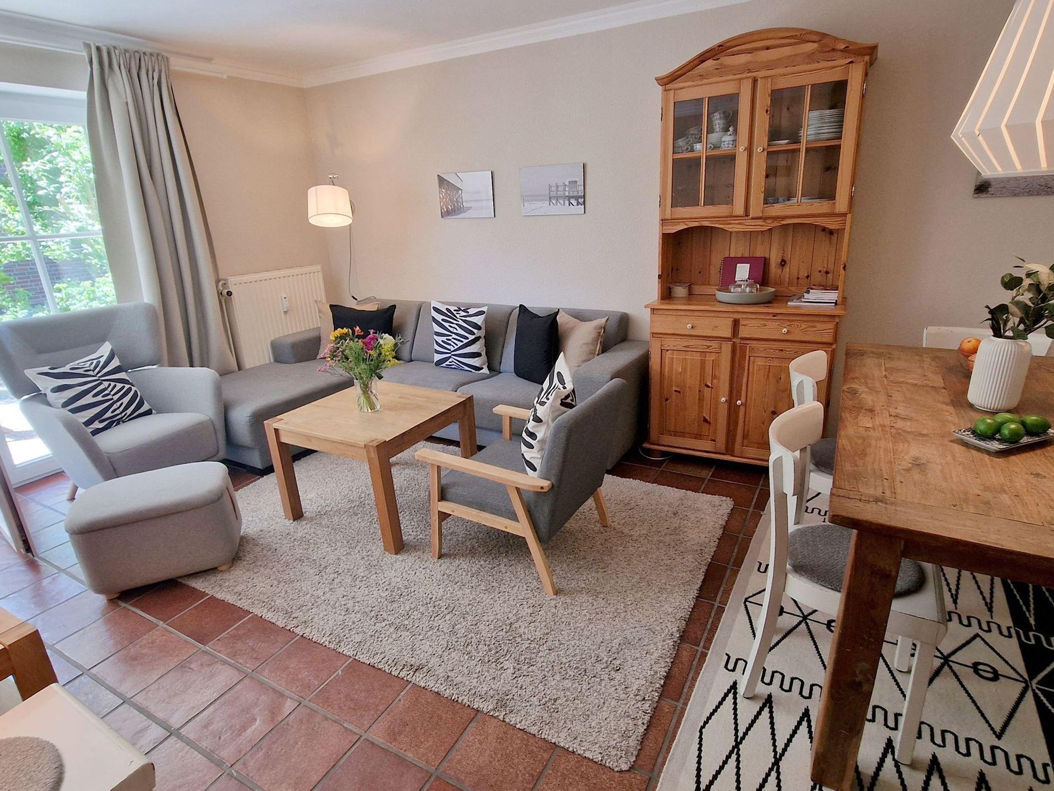Stilvolle 3-Zimmer-Ferienwohnung direkt hinter dem Seedeich in St. Peter-Ording, mit Terrasse und Pkw-Stellplatz.