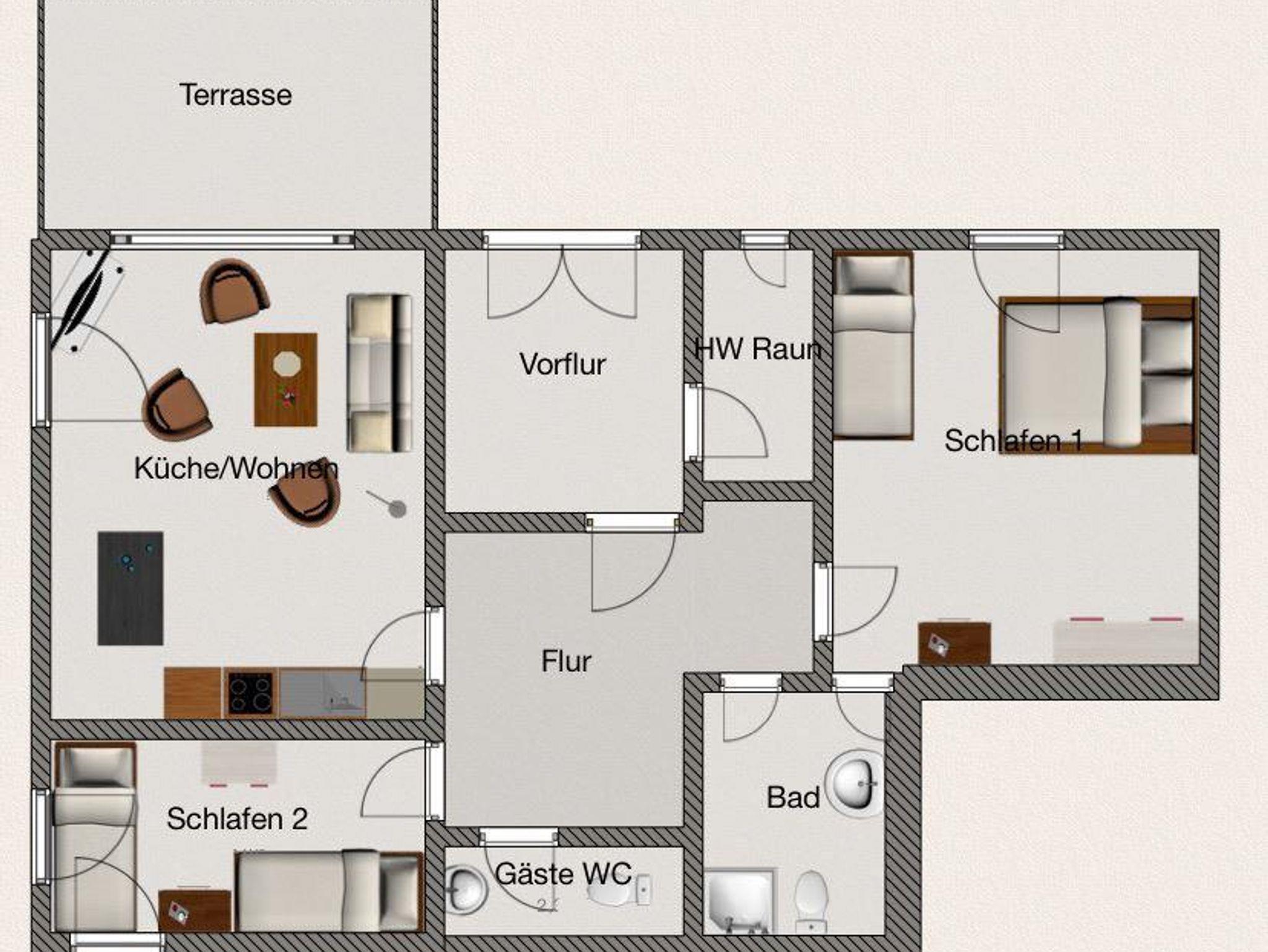Wohnung 305 - Ca. 75 qm, max. 5 Personen Einfach ausgestattete 3-Zimmer-Ferienwohnung im Haus Aufwind mit ca. 75 qm auf 1 Ebene (EG) für bis zu 5 Personen (Wohlfühlbelegung: max. 4 Erwachsene). In ruhiger Lage am Waldesrand im Ortsteil Dorf in St. Peter-Ording. Wohnzimmer mit Sofa für 3 Personen, 2 Sesseln, großem TV (Sat), DVD-Player, Radio und Esstisch mit Eck-Sitzbank für 3 Personen und 2 Stühlen. Direkter Zugang zur möblierten Terrasse nach Nordost und dem eingezäunten Garten. Offene Küche mit Backofen, Mikrowelle, Geschirrspüler, Kühlschrank und Gefrierschrank. 1. Schlafzimmer mit Doppelbett (2x 80 x 200cm), Schlafsofa zum klappen (110 x 190cm), großem Kleiderschrank und Kommode. 2. Schlafzimmer mit 2 Einzelbetten (je 90 x 200cm) und Kommode. Badezimmer (Duschbad) mit Dusche, WC und Föhn. Separates Gäste-WC mit Waschbecken. Flur mit Spiegel, Sitzbank, Schuhablage, Kleiderschrank und Garderobe mit Staubsauger im Eingangsbereich. Gartennutzung und Nutzung eines Grillplatzes (2 Grillplätze sind auf dem Grundstück vorhanden) ist möglich. Pkw-Stellplatz, Fahrradabstelle vorhanden. WLAN. Gemeinschaftliche Waschmaschine und Trockner gegen Gebühr im Keller des Hauses. Elektrische Direktheizung.