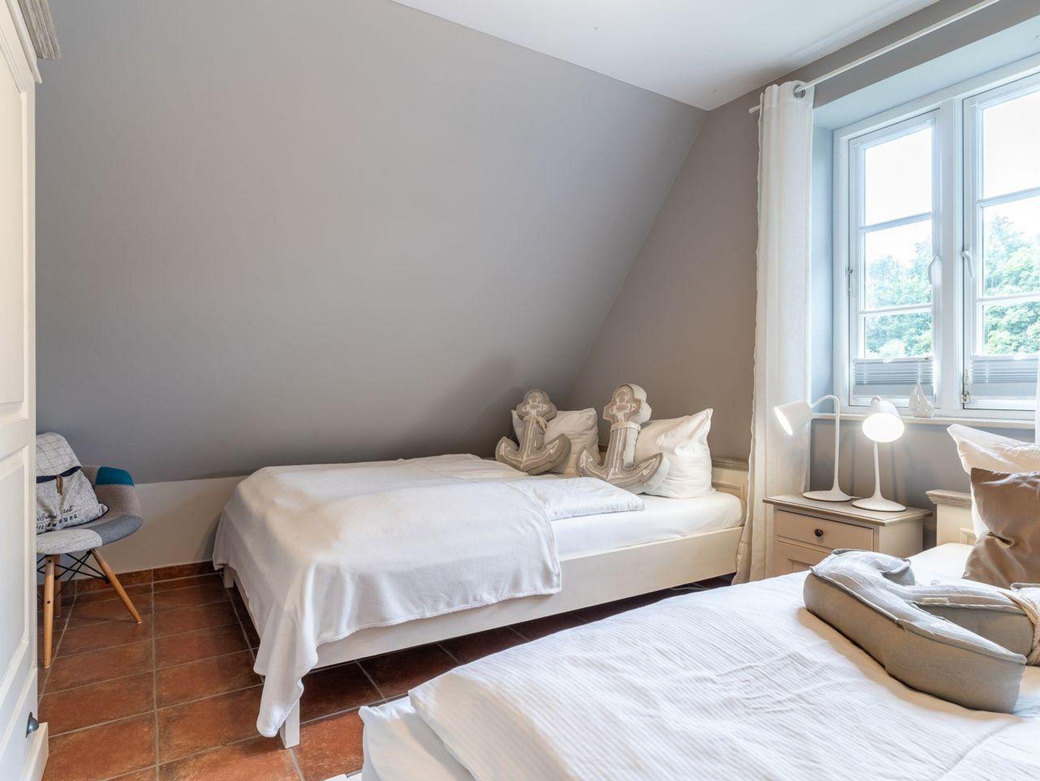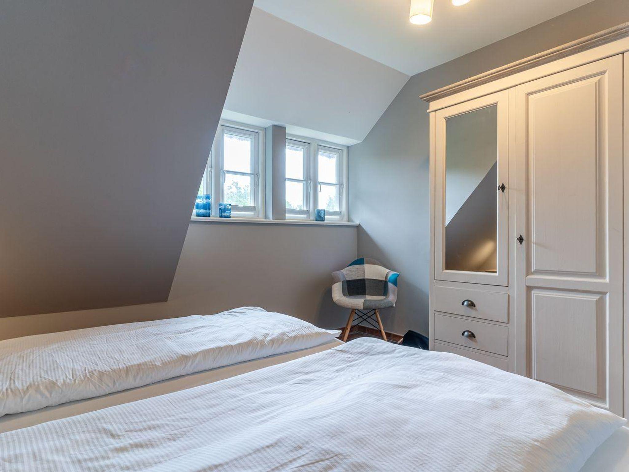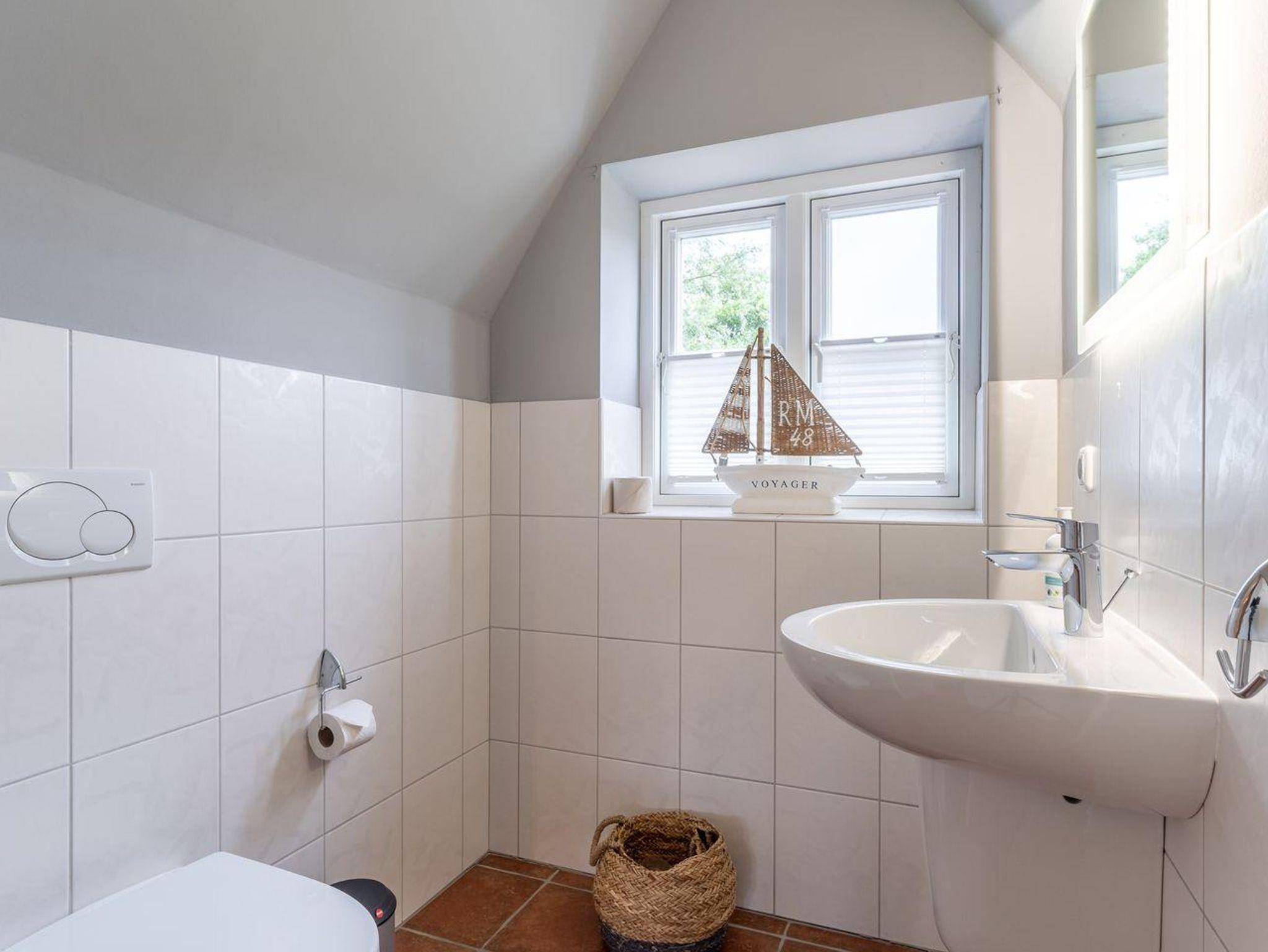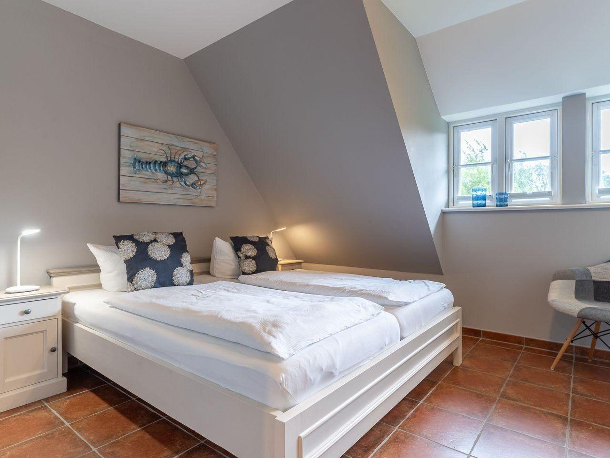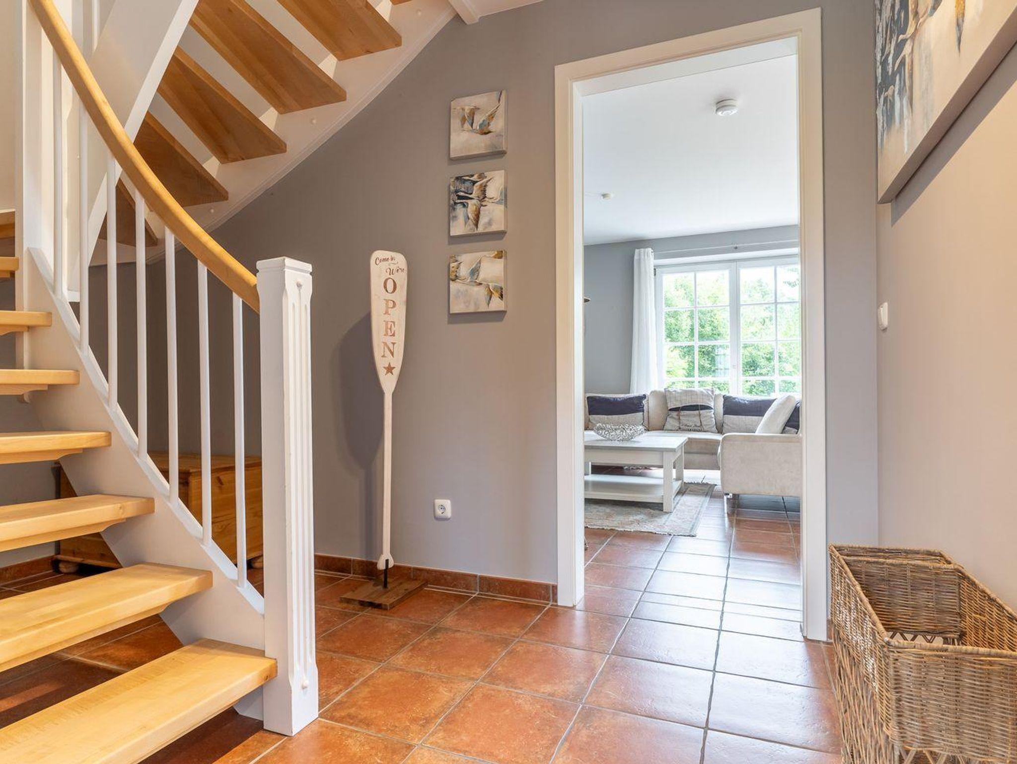 Im Erdgeschoss befindet sich der wunderschöne Wohnraum mit einem gemütlichen Essbereich und Zugang zu 2 Terrassen. Die offene Wohnküche ist mit allen wichtigen Geräten voll ausgestattet und lädt zum gemeinsamen Kochen ein. Ebenso ist im Erdgeschoss ein geräumiger Flur und ein Gäste WC. Im Obergeschoss befinden sich zwei Schlafzimmer. Eines mit einem Doppelbett und großem Kleiderschrank und ein weiteres mit 3 Schlafplätzen, einem Doppelbett und einem Einzelbett. Außerdem ist im Obergeschoss ein geräumiges Vollbad mit Eckbadewanne. Zusätzlicher Luxus im Obergeschoss ist ein weiteres Gäste-WC.