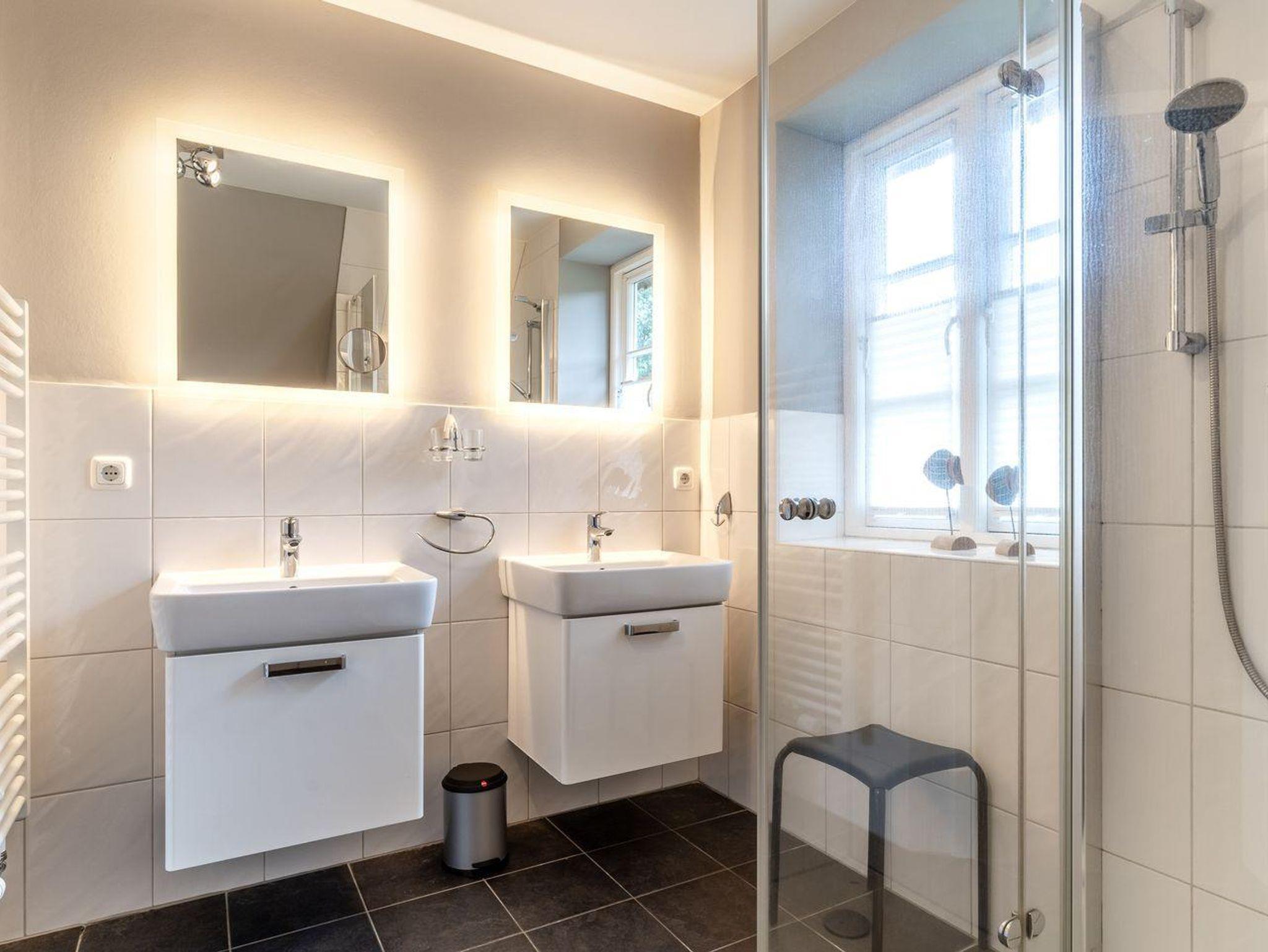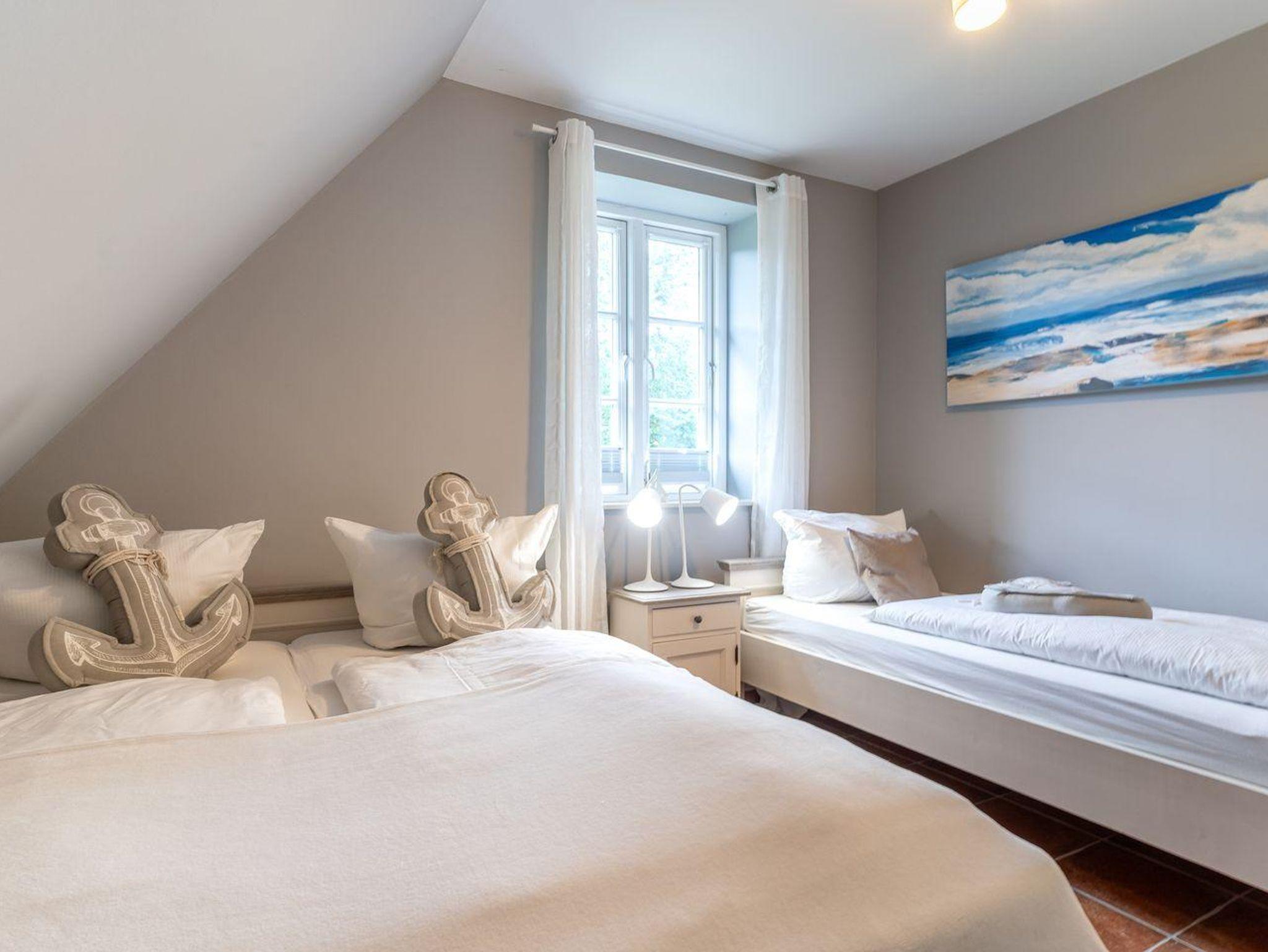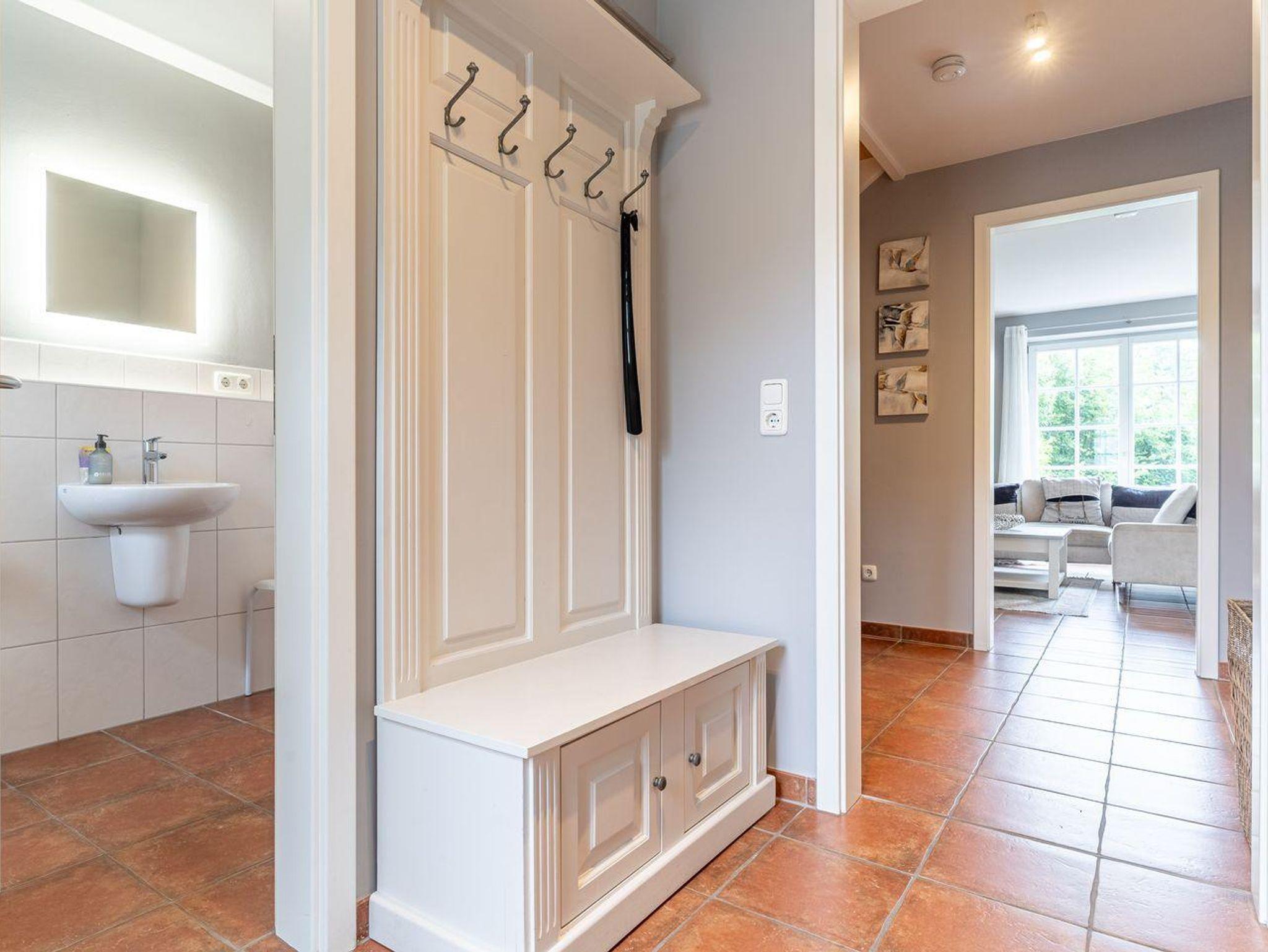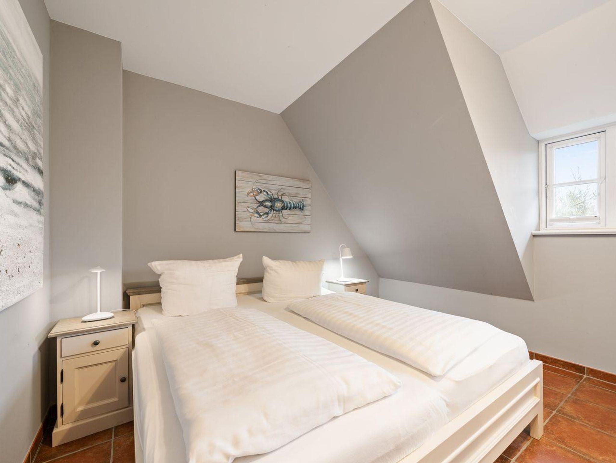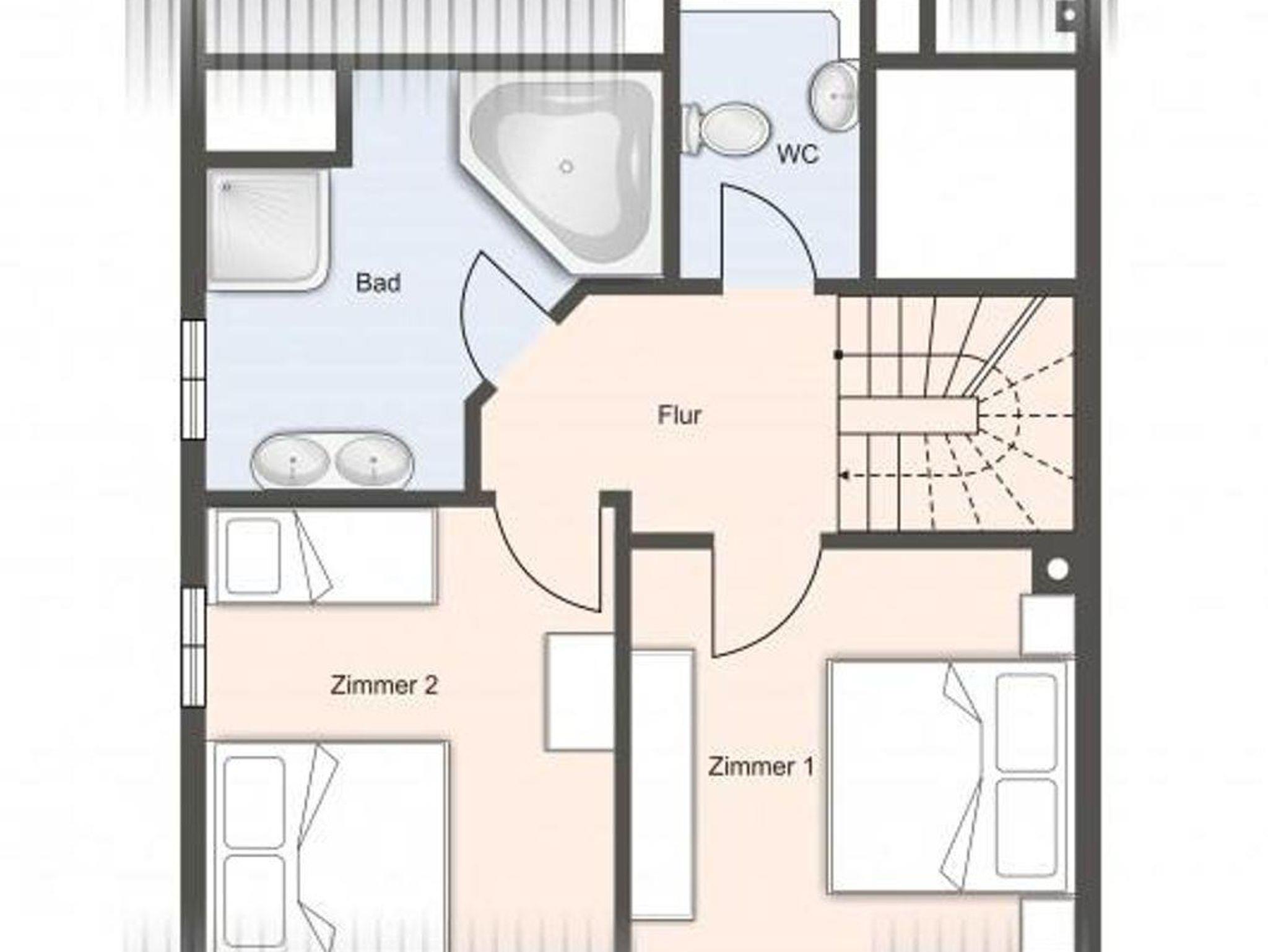 Im Erdgeschoss befindet sich der wunderschöne Wohnraum mit einem gemütlichen Essbereich und Zugang zu 2 Terrassen. Die offene Wohnküche ist mit allen wichtigen Geräten voll ausgestattet und lädt zum gemeinsamen Kochen ein. Ebenso ist im Erdgeschoss ein geräumiger Flur und ein Gäste WC. Im Obergeschoss befinden sich zwei Schlafzimmer. Eines mit einem Doppelbett und großem Kleiderschrank und ein weiteres mit 3 Schlafplätzen, einem Doppelbett und einem Einzelbett. Außerdem ist im Obergeschoss ein geräumiges Vollbad mit Eckbadewanne. Zusätzlicher Luxus im Obergeschoss ist ein weiteres Gäste-WC.