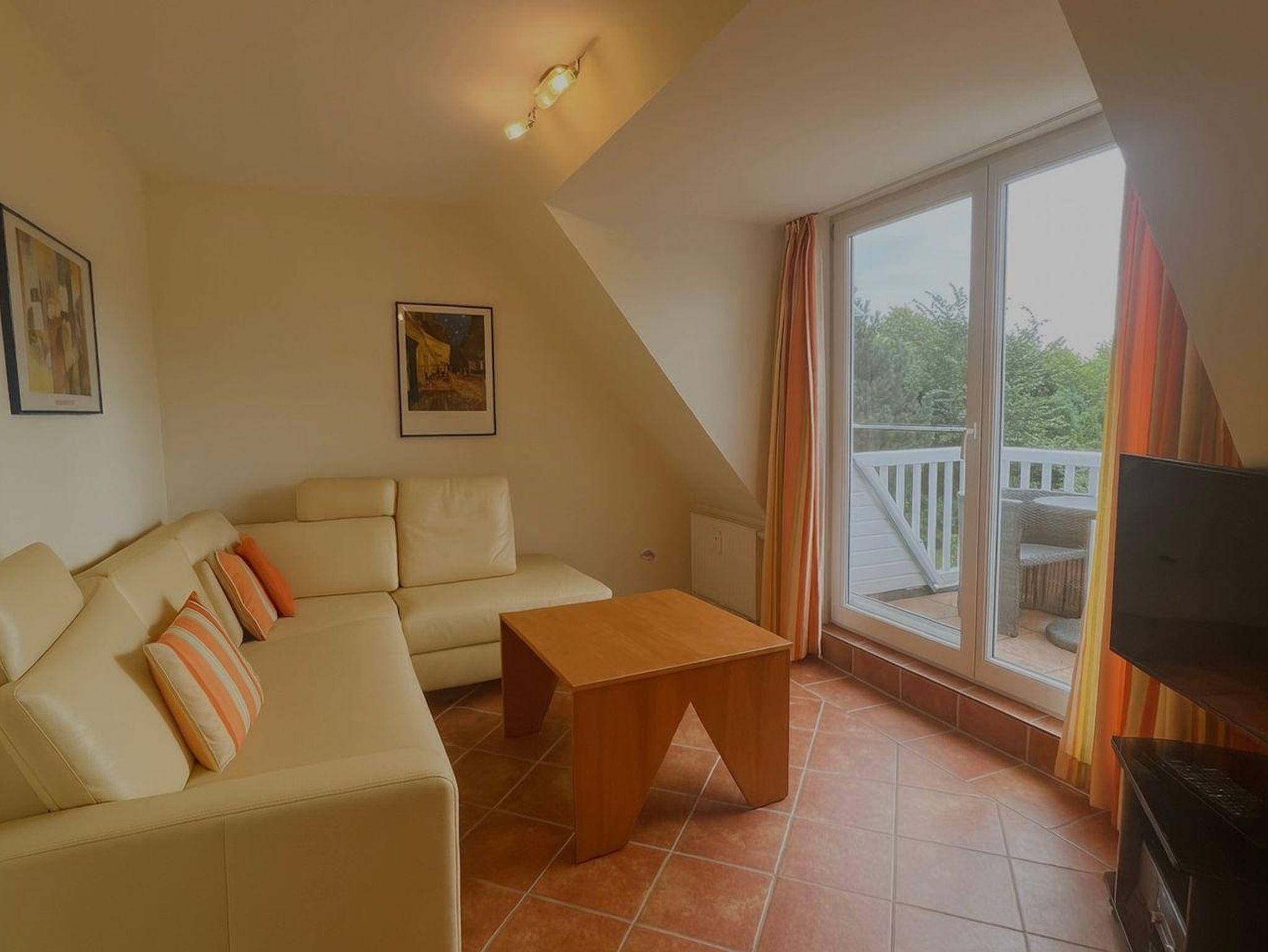 Gemütliches Appartement in St. Peter-Ording mit Balkon und Blick in den Bauerngarten, ideal für bis zu 4 Personen.