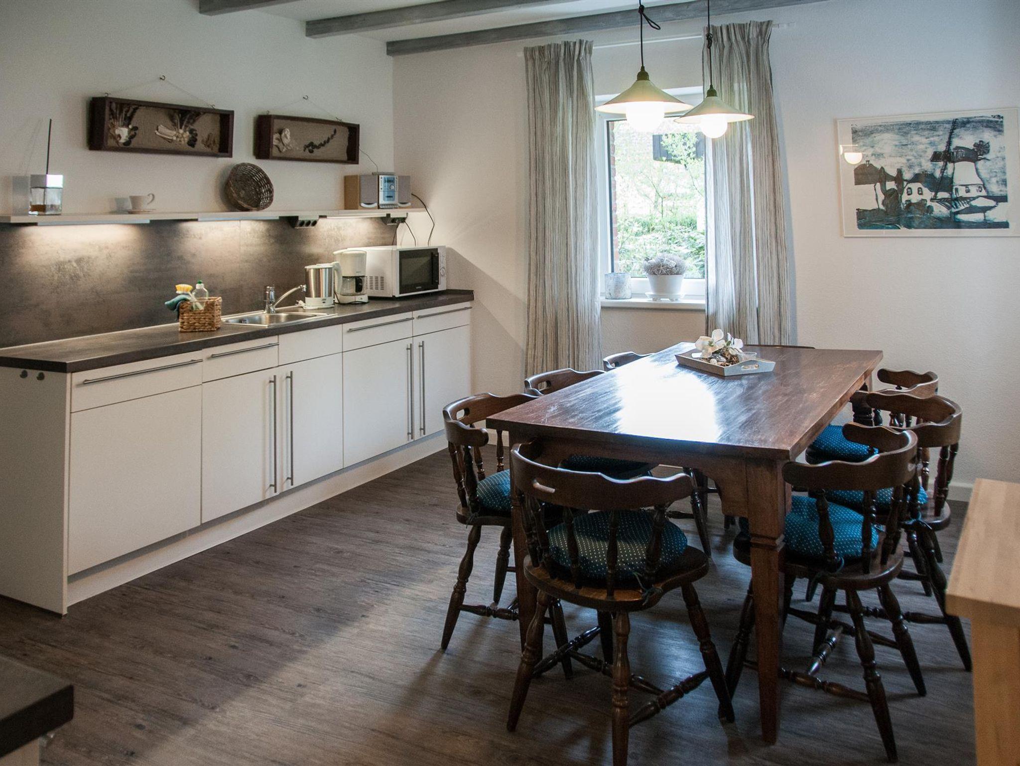 Die große Essküche lädt zum gemütlichen Abendessen in großer Runde oder zum ausgiebigen Frühstück ein. Die Küchenzeile ist voll ausgestattet und bietet Gelegenheit zum Experimentieren mit nordischen Spezialitäten. Für das Spülen nach dem Essen gibt es eine Spülmaschine – Sie haben ja Urlaub!