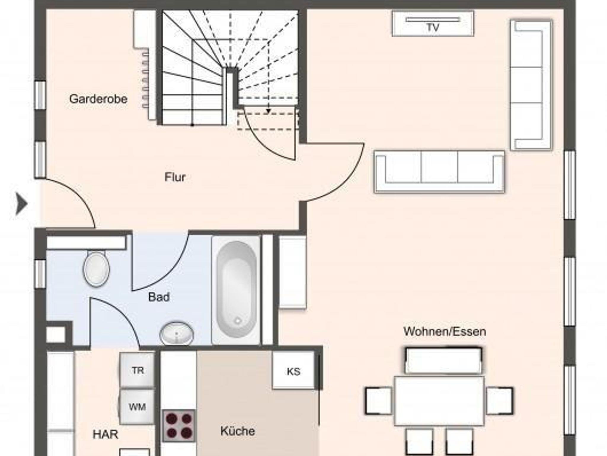 Die wunderschöne Haushälfte unter Reet verfügt über ca. 100 m² Wohnfläche und bietet Platz für 5 Personen. Im Erdgeschoss befindet sich der lichtdurchflutete Wohnraum mit großem TV, einer offenen Wohnküche sowie einem stilvollen Essbereich. Die Wohnräume sind mit stielvollen Möbeln ausgestattet. Die Küche verfügt über hochwertige Elektrogeräte und eine Tchibo Cafissimo Kapselmaschine. An den Wohnbereich schließen sich ein Flur mit eingebauter Garderobe und ein Duschbad an. Das gesamte Erdgeschoss verfügt über geschmackvolle Fußbodenfliesen, die über eine Fußbodenheizung beheizt werden können. Über eine Steintreppe gelangt man in das Obergeschoss. Dieses verfügt ebenfalls über eine Fußbodenheizung. Es bietet drei Schlafzimmer, eines mit einem Doppelbett, eines mit 2 Einzelbetten + TV und eins mit einem Einzelbett + TV. Kleiderschränke gewähren Ihnen hinreichend Ablageflächen. Darüber hinaus befindet sich im Obergeschoss ein weiteres, geräumiges Bad mit Dusche. Dieses schöne Haus bringt Sie sofort in Urlaubsstimmung. Das Grundstück mit Stellplatz, großer Rasenfläche und einer geschützten, sonnigen Terrasse ist mit heimischen Pflanzen angelegt.