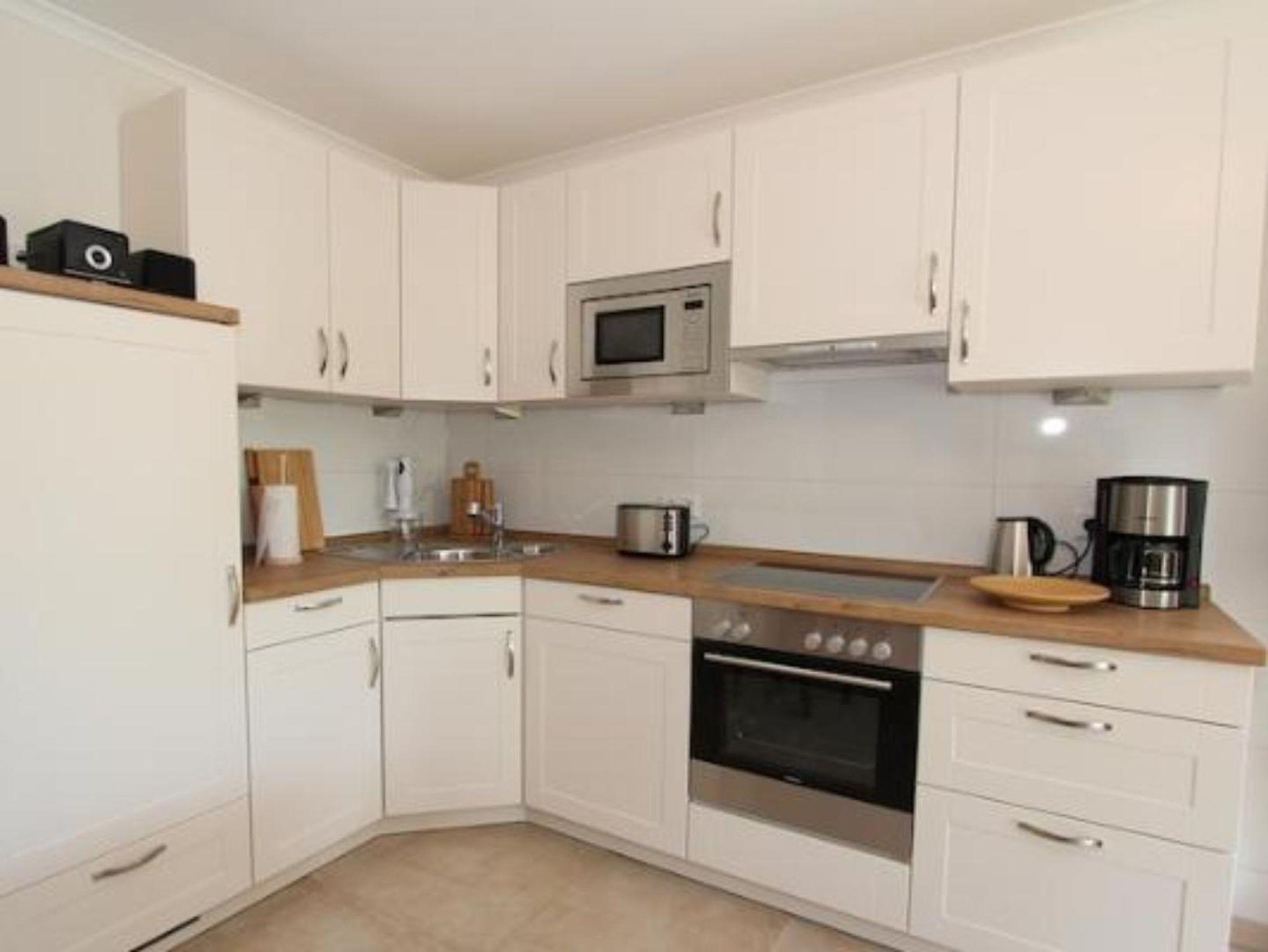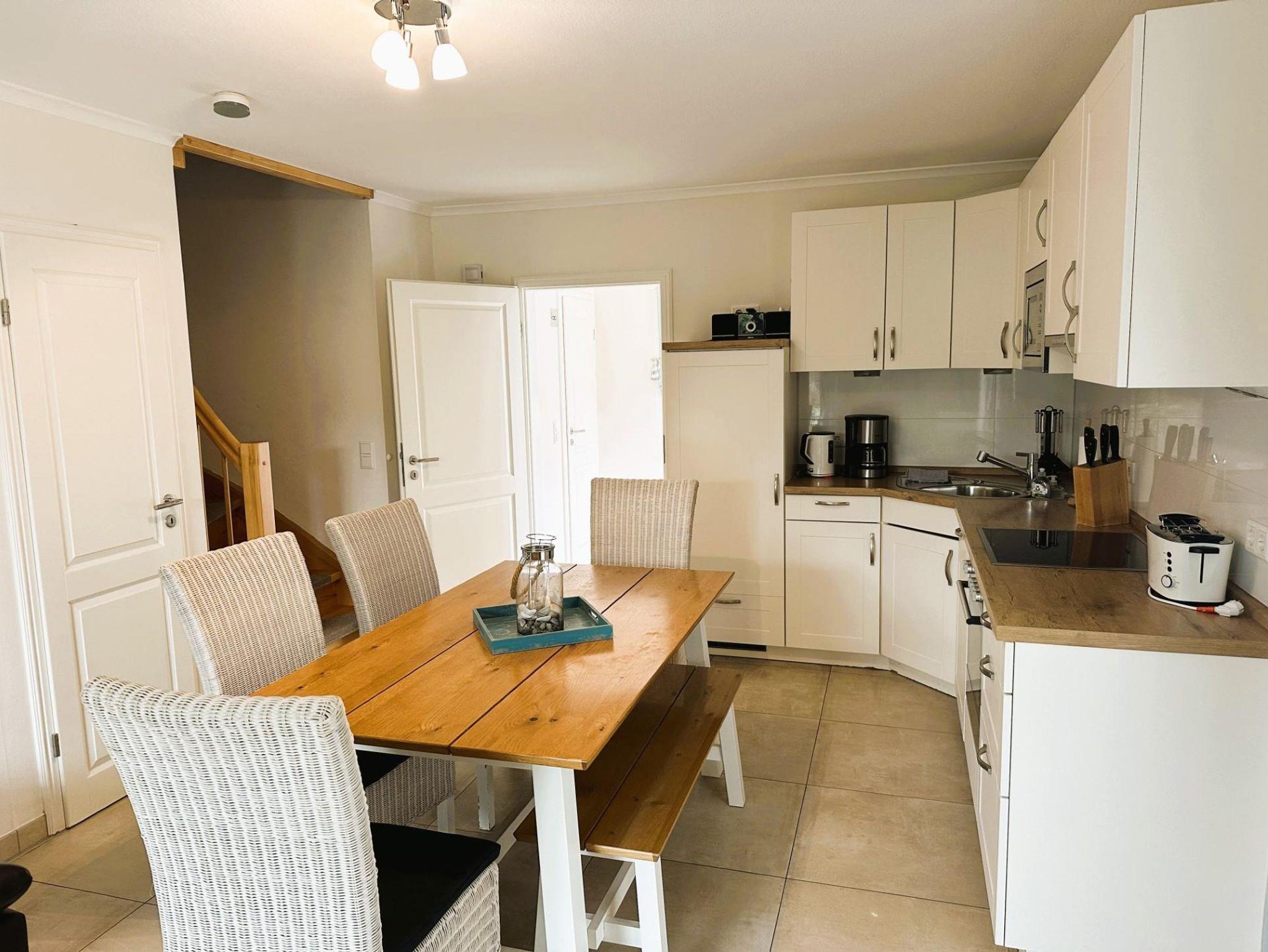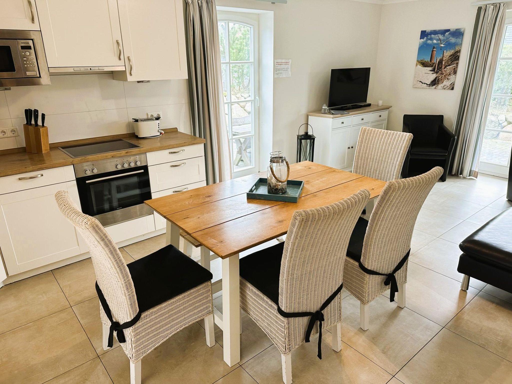 Die komplett ausgestattte Küche, mit Geschirrspüler, Gefrierfach, Cerankochfeld (Induktion)und Backofen ist in den Wohnbereich integriet und lädt zum kreativen Urlaubskochen ein.