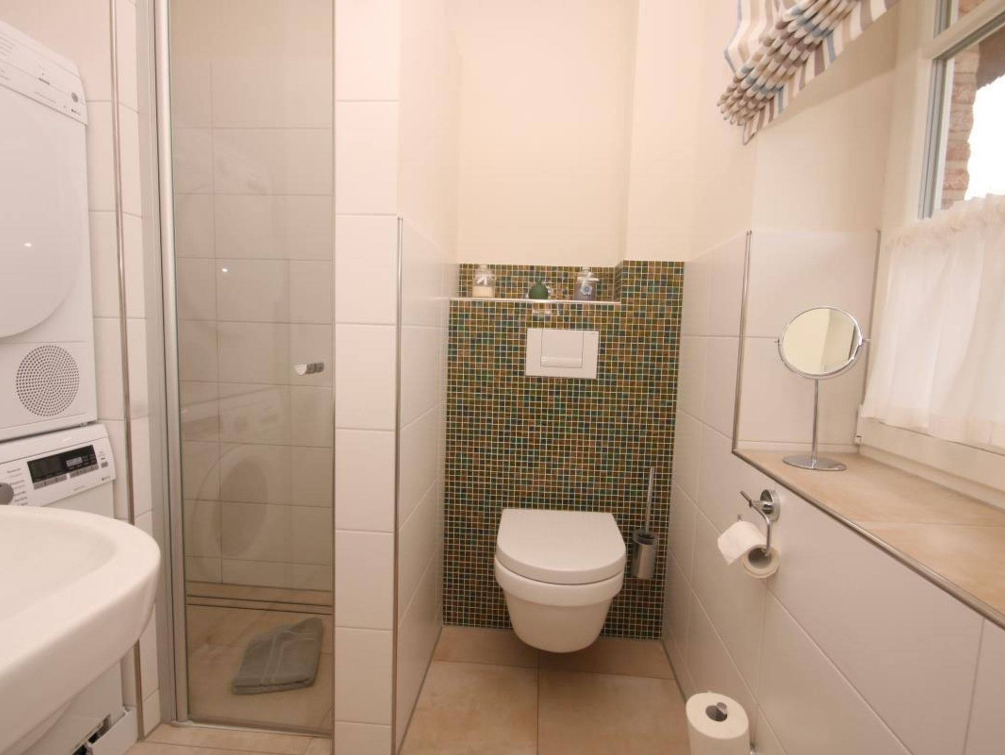 Das helle und hochwertig ausgestattete Tageslichtduschbad lässt keine Wünsche offen. Im Wirtschaftsraum befinden sich die Waschmaschine und der Wäschetrockner.