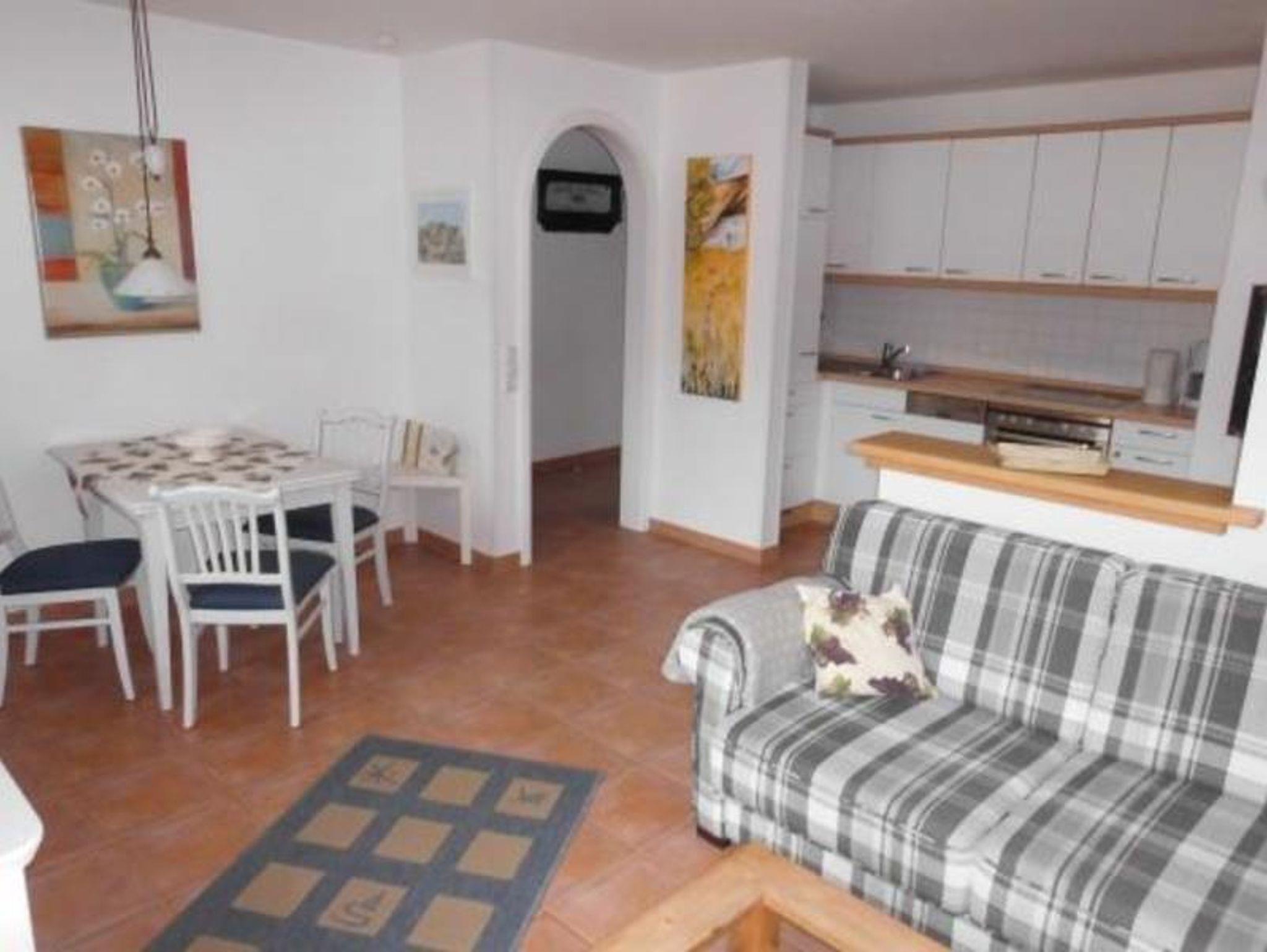 Die stilvoll eingerichtete 2-Zimmer-Wohnung im Erdgeschoß mit möblierter Südwest-Terrasse bietet höchsten Wohnkomfort. Großzügiger Wohn-Schlafraum mit Doppelbettcouch. Volleingerichtete Einbauküchenzeile mit 4-Pl.-Herd, Ceran, Backofen, Geschirrspüler. Schlafraum mit Doppelbett und Flachbildfernseher. Bad mit Wanne und Dusche, WC. Waschmaschine und Trockner. Pkw-Stellplatz Nr. 4. NICHTRAUCHERWOHNUNG. ALLERGIKERGERECHT. Die Hausordnung ist einzuhalten. Fahrradraum im Keller. Die Wohnung verfügt über ein high speed Internet.