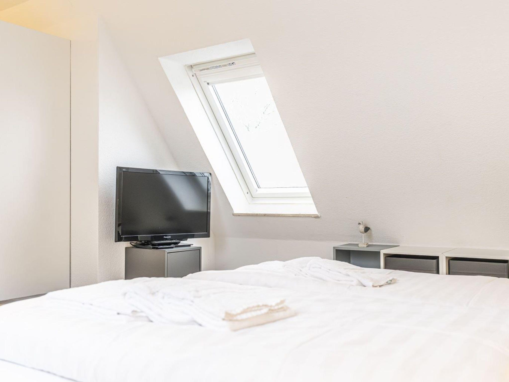 2. Schlafzimmer mit 1 Doppelbett (2x 90x200cm), 1 Einzelbett (90x200cm), SMART-TV (nur Streaming, Amazon Fire Stick), Kleiderschrank und 2 Stühlen.