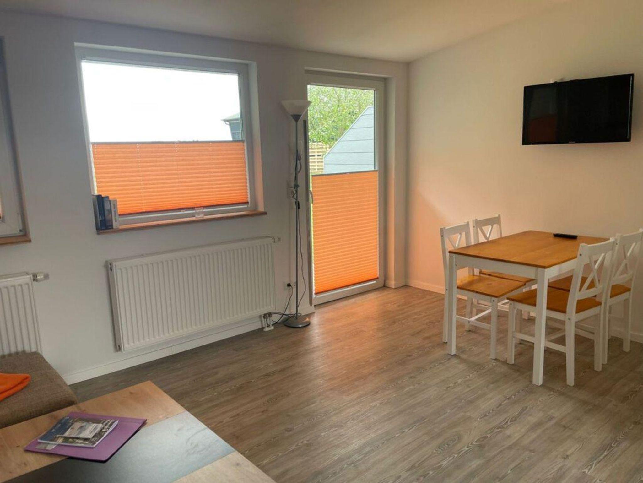 Wohnraum mit Schlafsofa mit Essbereich mit SAT-TV, offene Küche