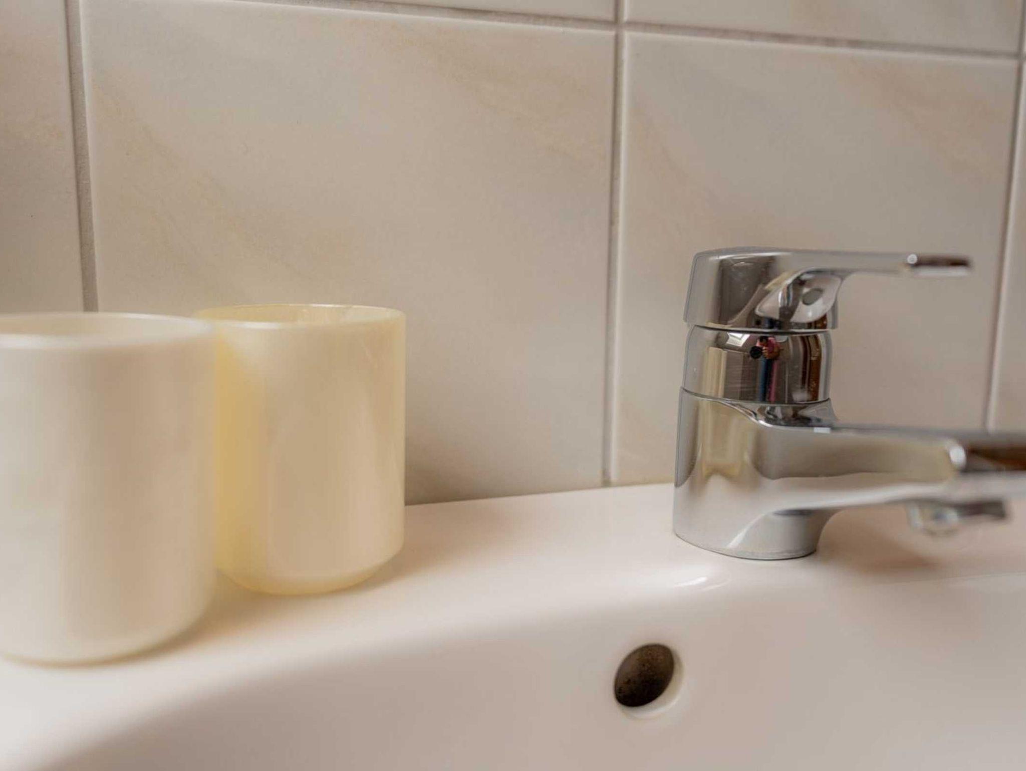 1. Schlafzimmer mit Doppelbett (2x 90x190cm), Waschtisch mit Spiegel und Handtuchhalter, Kleiderschrank und 2 Stühlen.