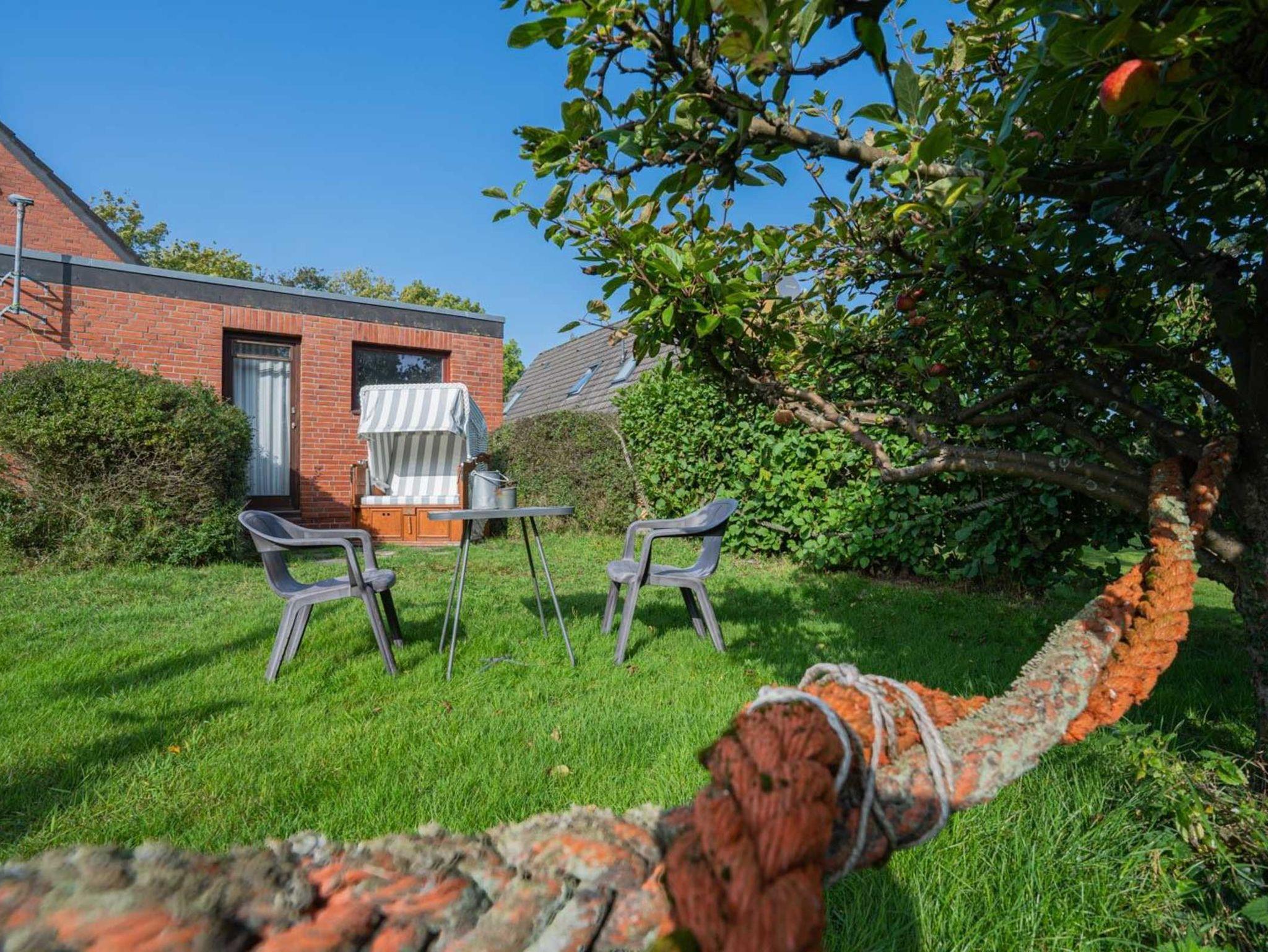 Zur Wohnung gehört ein windgeschützter Sonnenfreisitz mit Strandkorb auf der Südseite des Hauses.