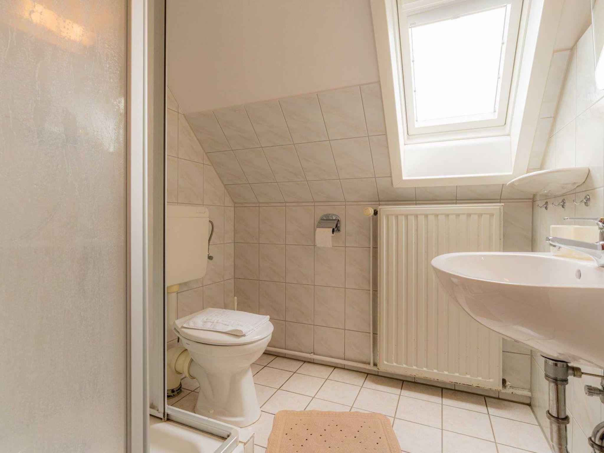 Badezimmer (Duschbad) mit Dusche, WC, Tageslicht und Föhn.