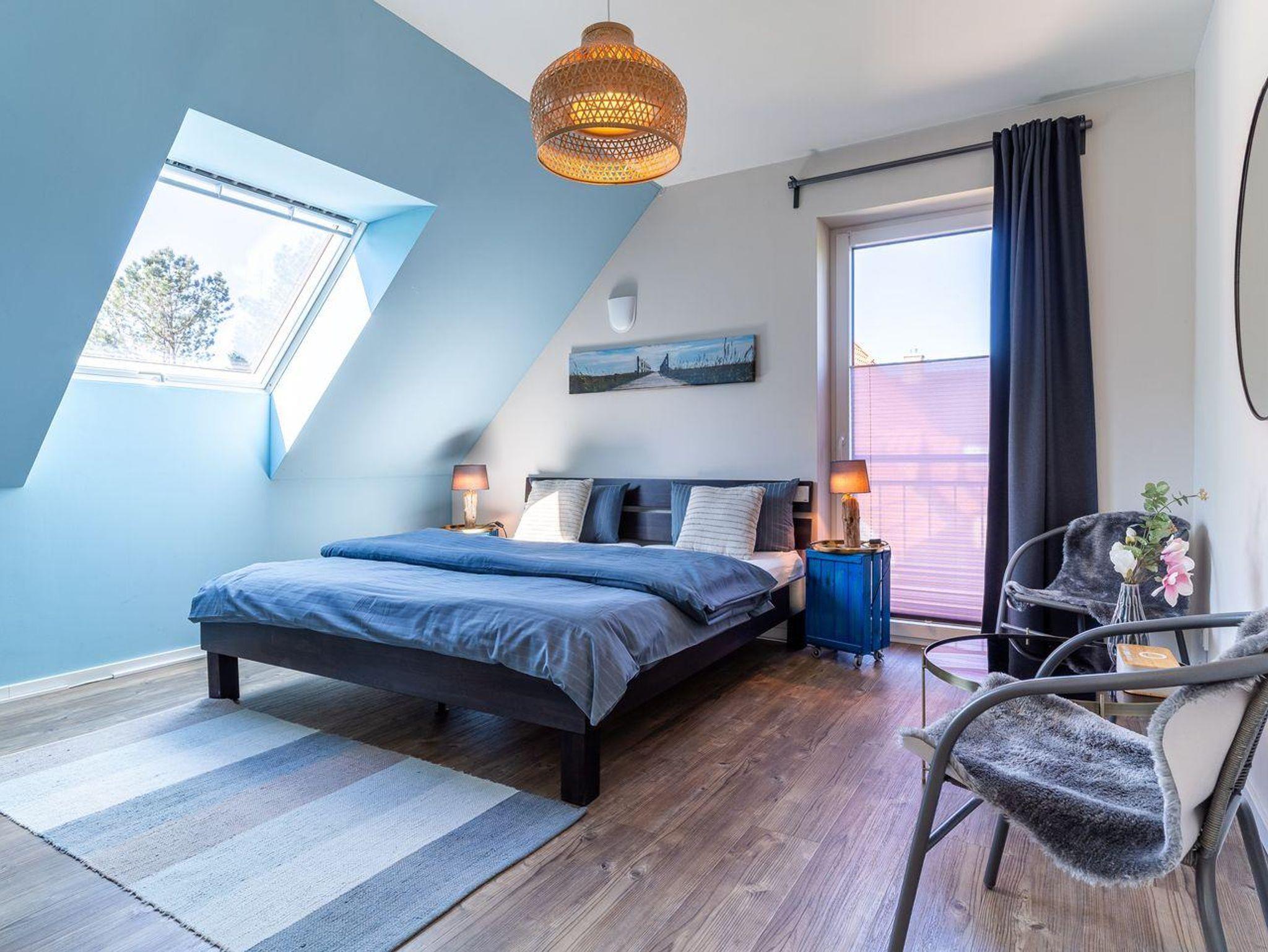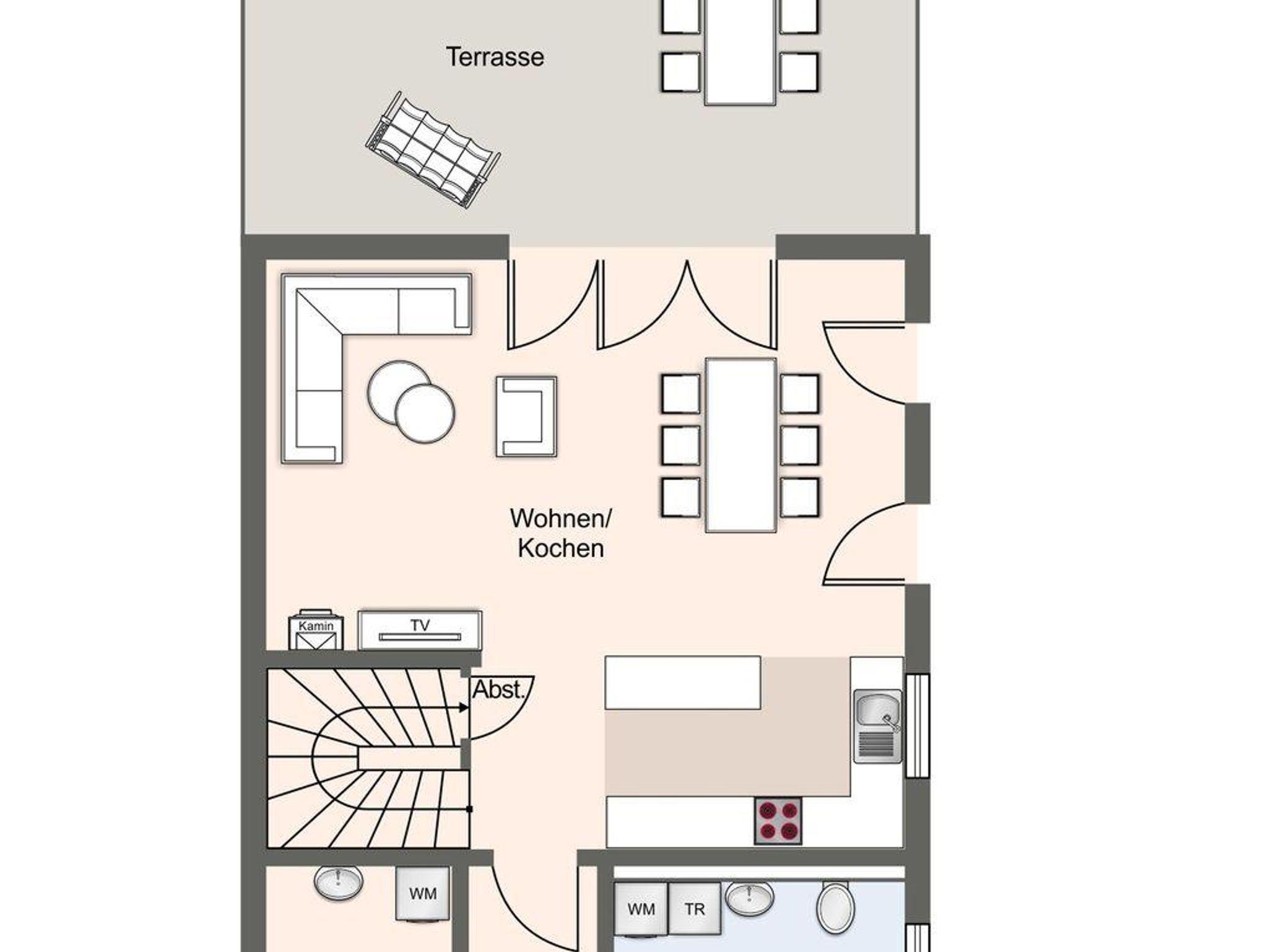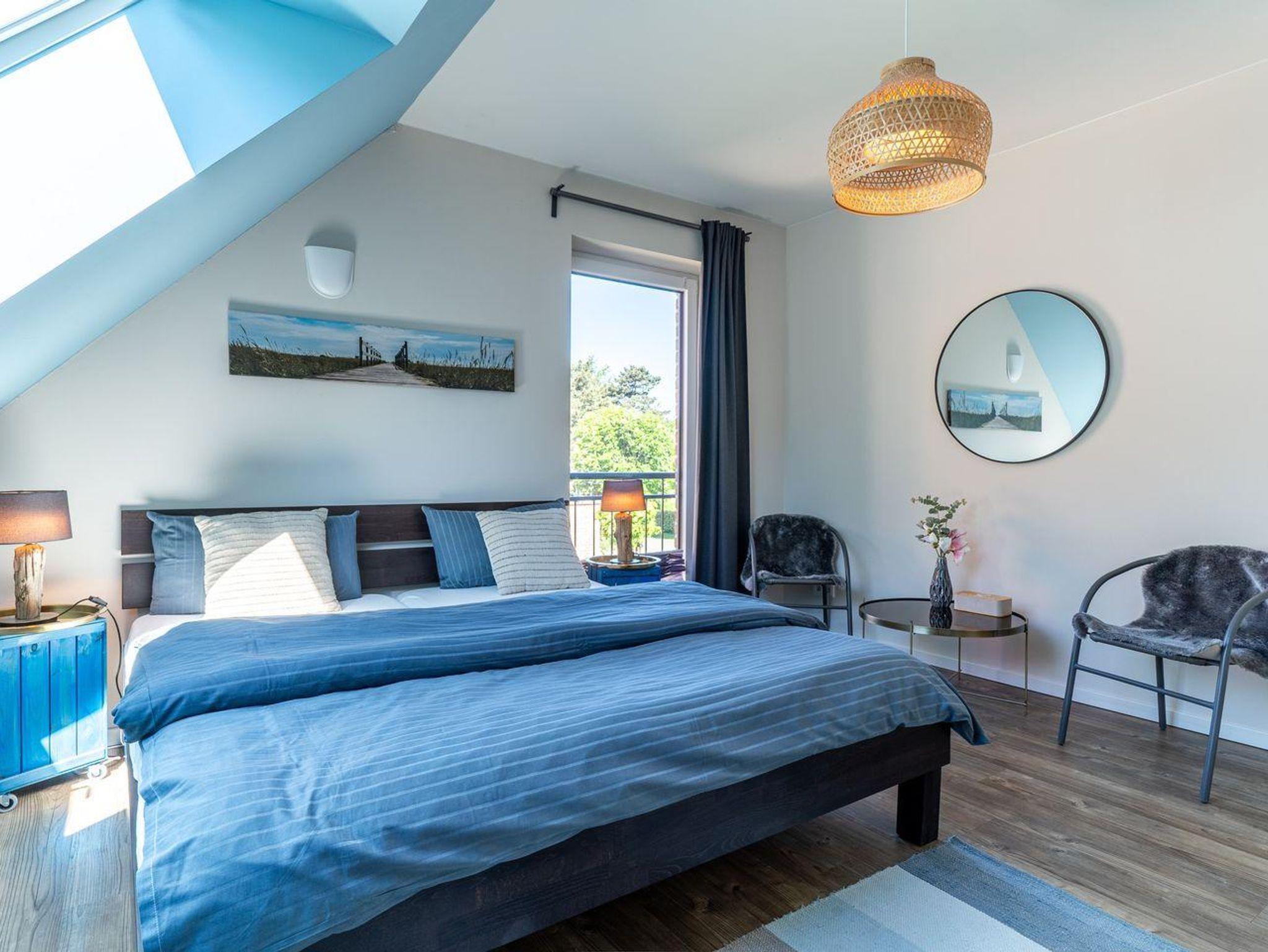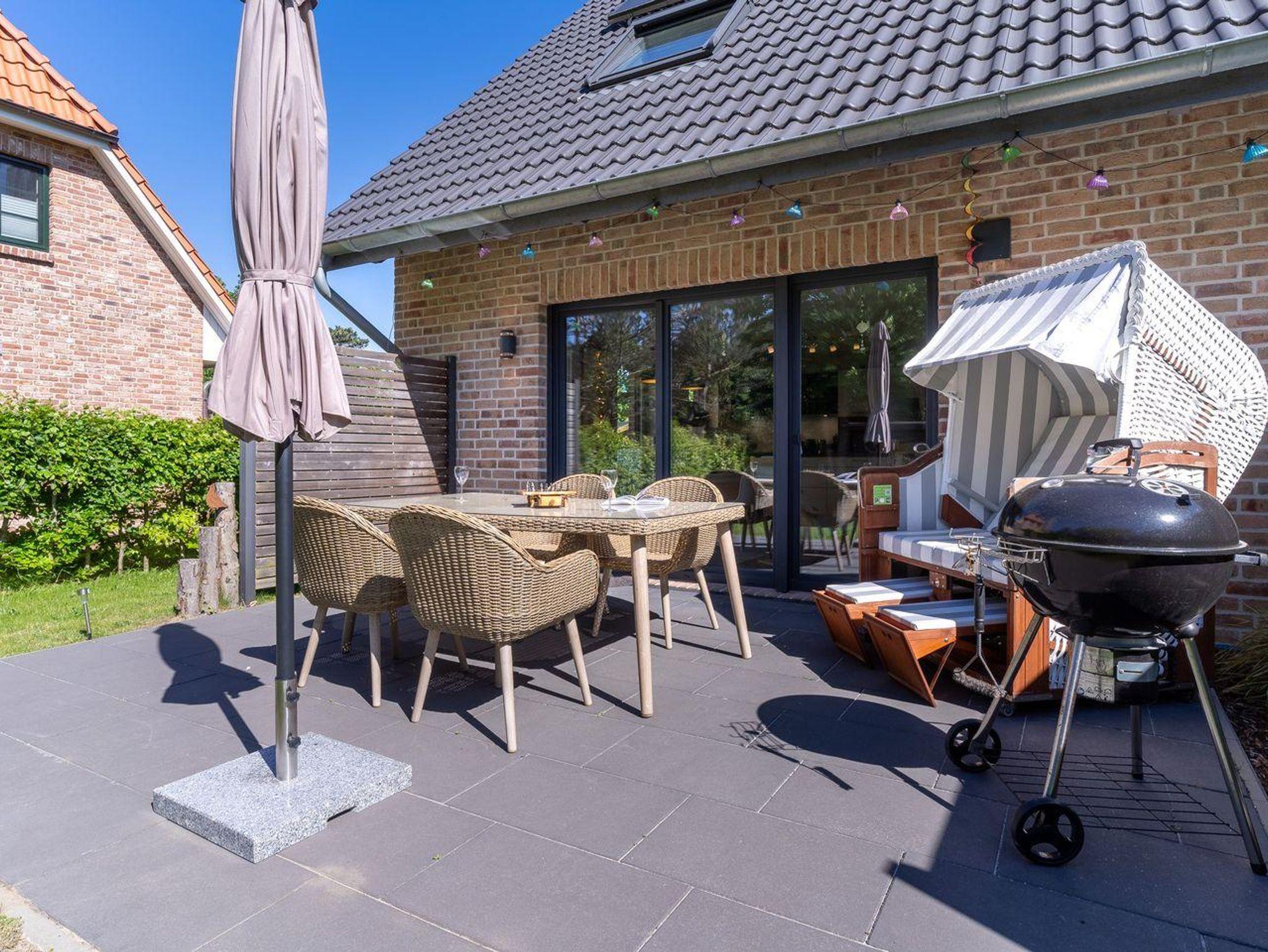 Das Ferienhaus besticht durch hochwertige Möbel und ein harmonisches Ambiente. Im lichtdurchfluteten Wohnzimmer mit TV können Sie herrlich entspannen und die offene Küche mit hochwertigen Elektrogeräten lädt zum gemeinsamen Kochen ein. Hier befindet sich außerdem ein gemütliches Esszimmer. Ob Morgensonne oder Abendsonne - vom Küchenbereich, sowie vom Wohnzimmer gelangen Sie jeweils auf eine große Terrasse mit hochwertigen Gartenmöbeln. Im Erdgeschoss befindet sich ebenso ein Doppelschlafzimmer (180 x 200 cm) und ein angrenzendes, modernes Duschbad. Vom großzügigen Flur mit Hauswirtschaftsraum und Gäste WC gelangen Sie über eine Holztreppe ins Obergeschoss. Hier befinden sich drei weitere gemütlich eingerichtete Schlafzimmer mit komfortablen Boxspringdoppelbetten Ein geräumiges Badezimmer mit Dusche und Badewanne sorgt für zusätzlichen Komfort.