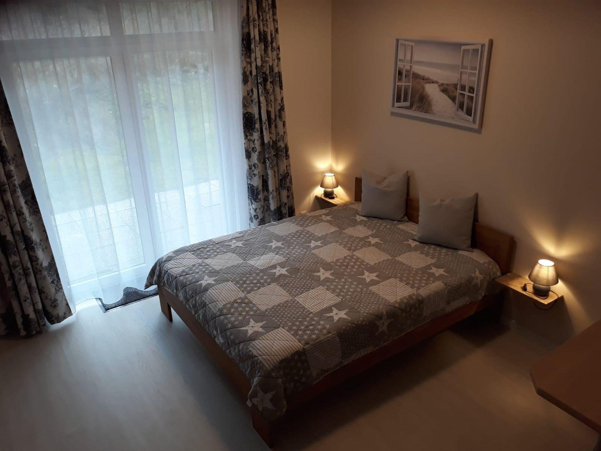 Die Wohnung ist hell und freundlich ausgestattet. Der Wohnraum ist mit einem Doppelbett (1,60m x 2m), Tisch und Flachbildfernseher für Ihren Urlaub hergerichtet.