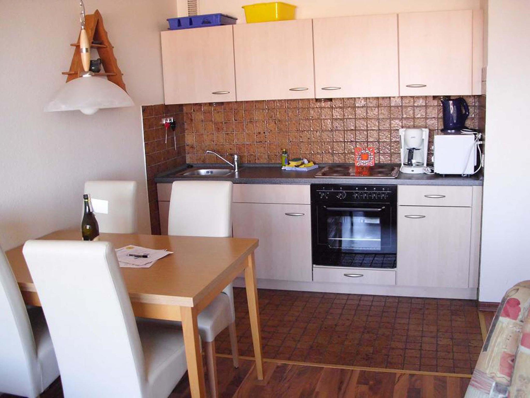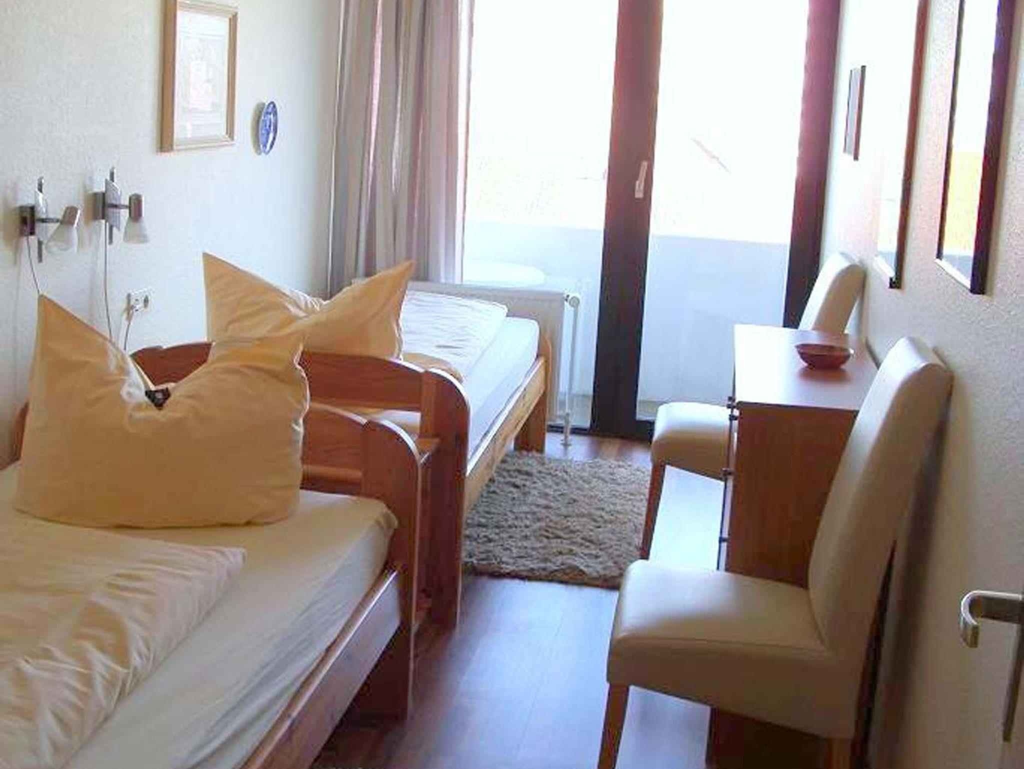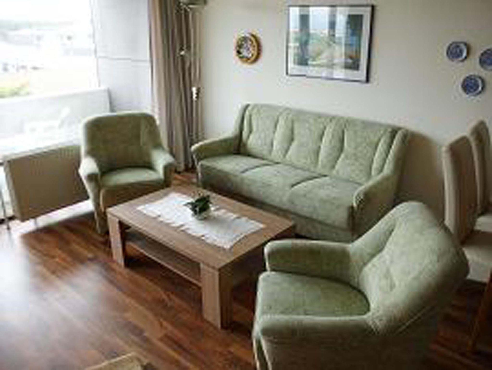 App.-Nr. 62, Typ 2, III. OG, Nord-Westlage Schlafraum mit 2 Einzelbetten, Wohn-Schlafraum mit 2 Wandschrankbetten, Laminatfußboden, Sitzecke, Essecke, Küchenzeile mit Backofen und Mikrowelle, Dusche/WC, Kabel-TV, Durchwahltelefon, Balkon, PKW-Platz-Nr. 62, Aufzug und Fahrradkeller. Rezeption, Brötchenservice, Schwimmbad, Sauna kostenpflichtig, kostenfreier Internetzugang (LAN1-Germania). Bettwäsche wird einmalig bei Einzug gestellt. Handtücher können gegen Gebühr entliehen werden.