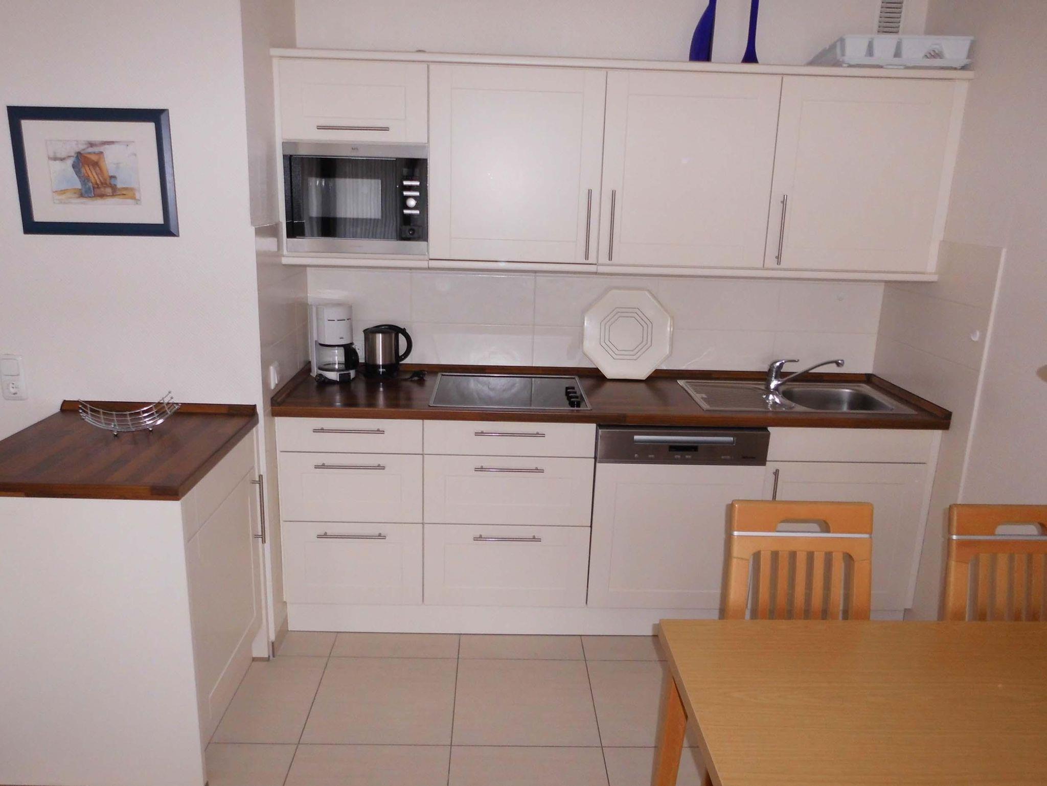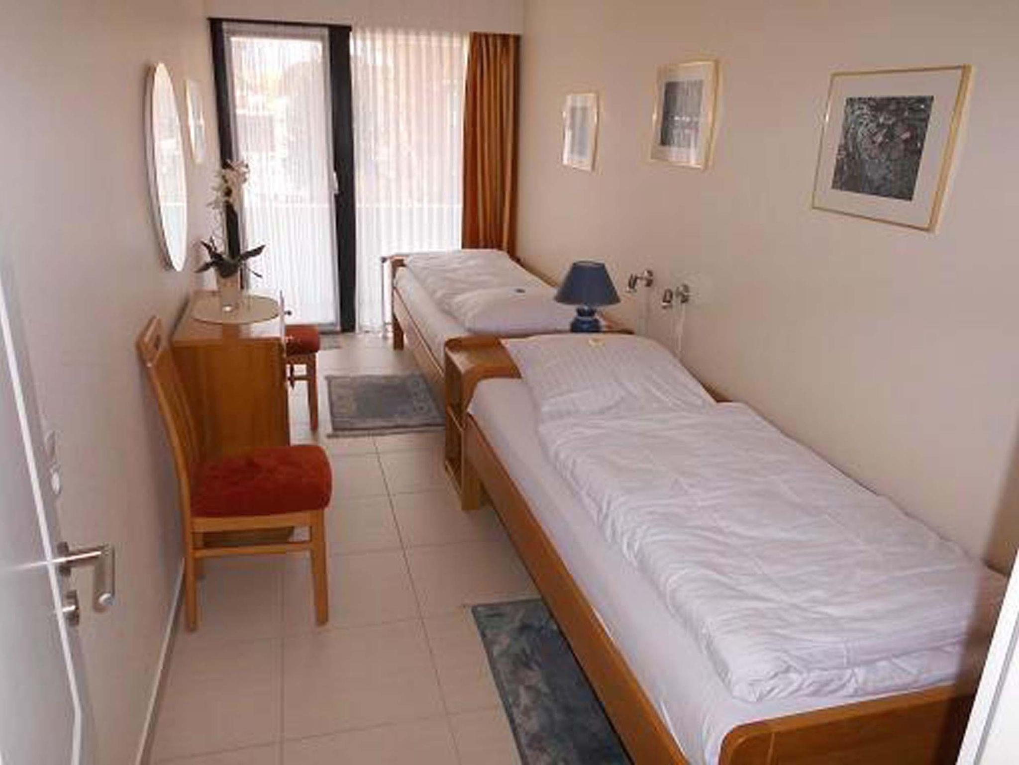 Schlafraum mit 2 Einzelbetten, Wohn-Schlafraum mit 2 Wandschrankbetten, Fußboden gefliest, Sitzecke, Essecke, Küchenzeile mit Mikrowelle und Geschirrspüler, Dusche/WC, Kabel-TV, Durchwahltelefon, Balkon, PKW-Platz-Nr. 35, Aufzug und Fahrradkeller. Rezeption, Brötchenservice, Schwimmbad, Sauna kostenpflichtig, kostenfreier Internetzugang (LAN1-Germania).