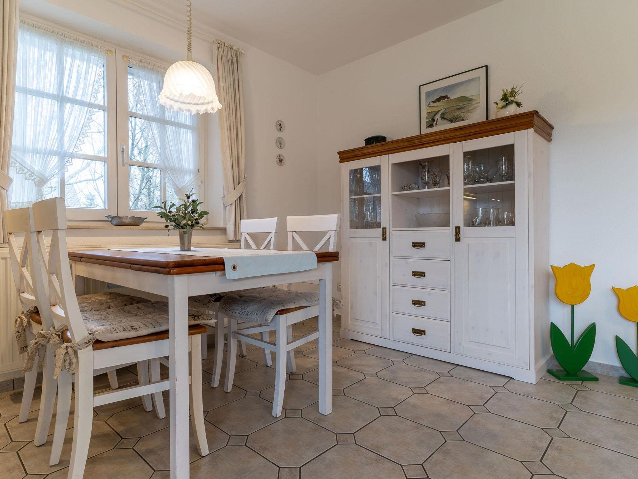 Zur Wohnung gehören ein PKW-Stellplatz und ein abgeschlossener Kellerraum, in dem bei Bedarf Fahrräder untergebracht werden können. Kinderhochstuhl und ein Bollerwagen, die dort zur Verfügung stehen unterstreichen die Gastfreundlichkeit für Familien mit Kindern.