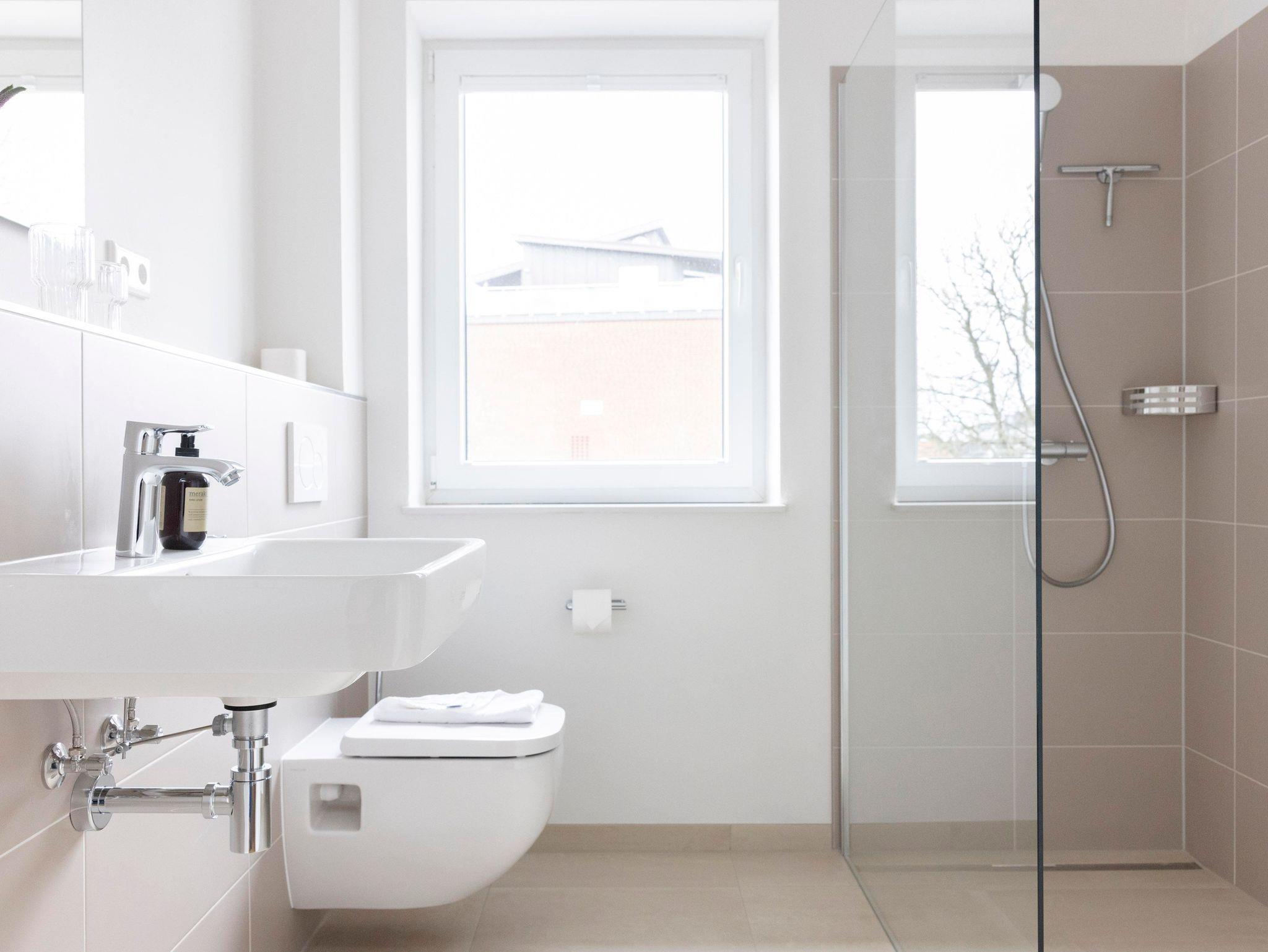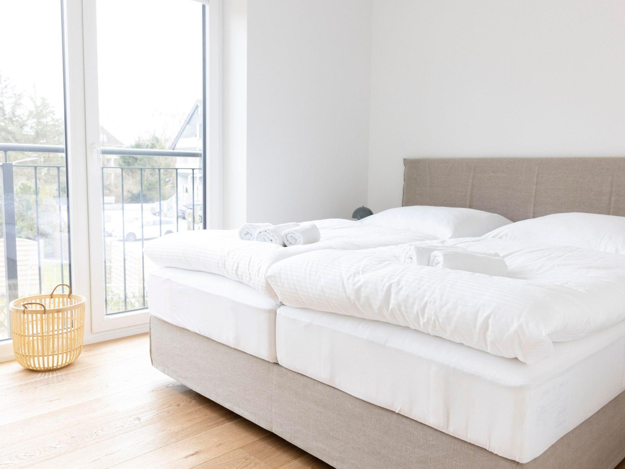 Hier kannst Du festmachen. Alles echt. Ob der Boden oder die Fliesen von Royal Mosa. Nachhaltigkeit ist unser Thema. Und das Boxspringbett lädt zum Träumen ein.