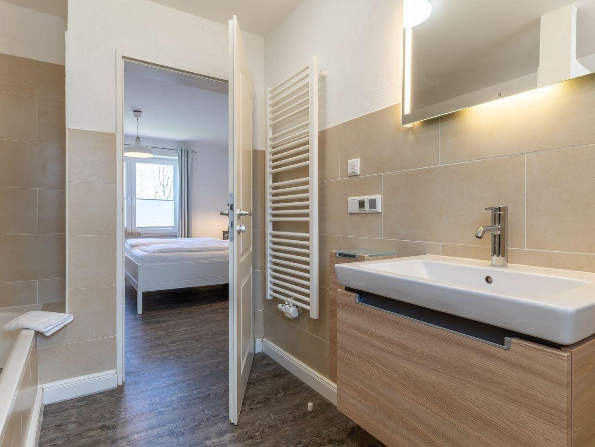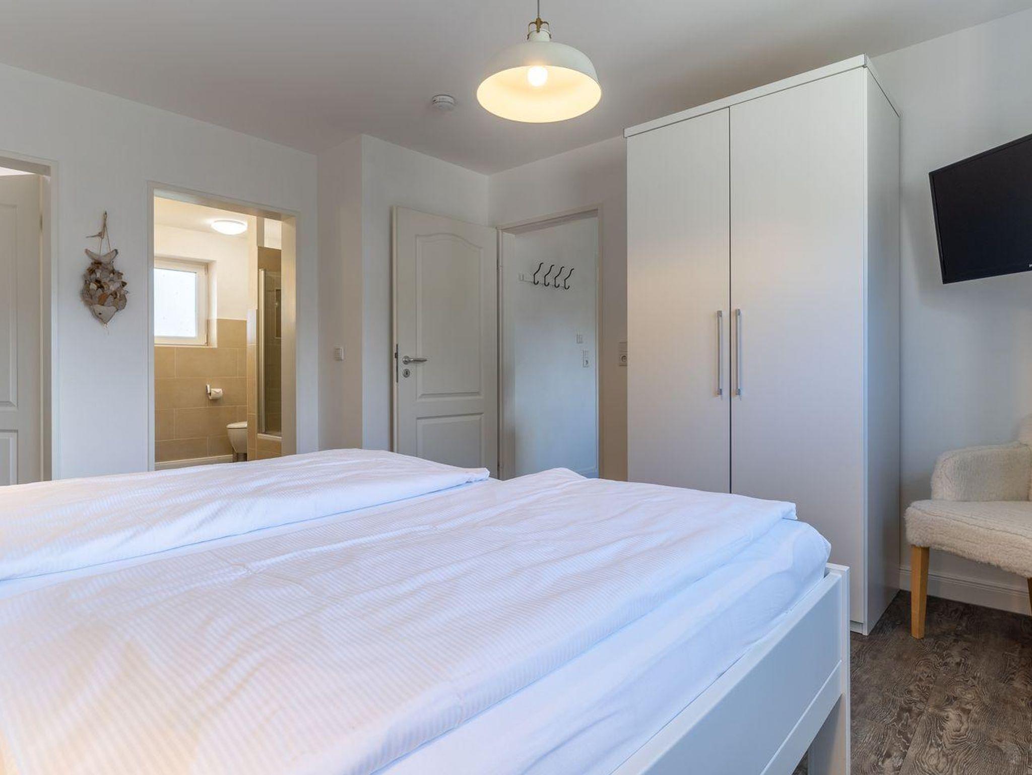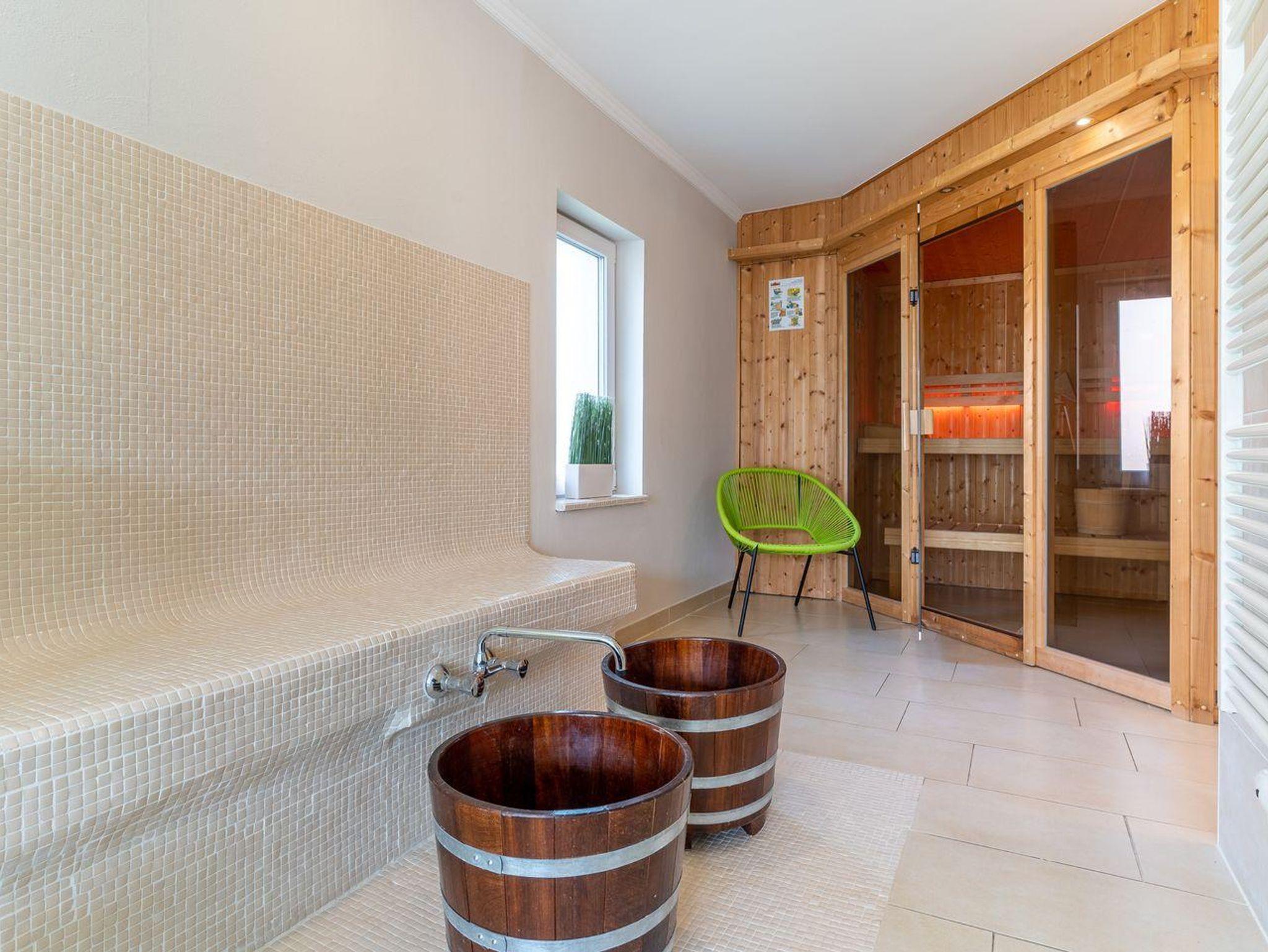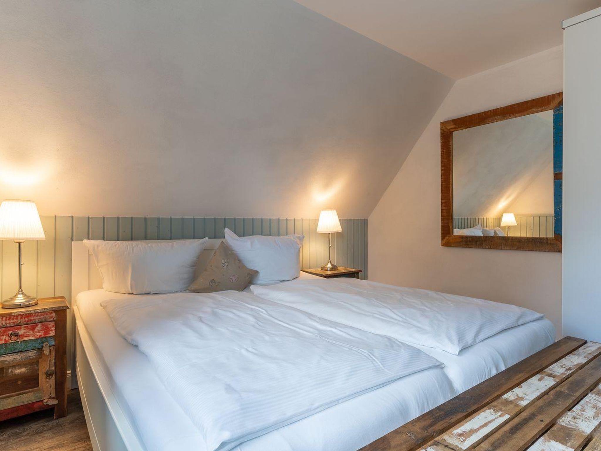 Über einen weiteren Flur gelangen Sie zu dem Doppelschlafzimmer mit Ausziehbett jeweils 2x 80er Matratzen, außerdem einem weiteren Doppelschlafzimmer mit jeweils 2x90er Matratzen und LED TV sowie einem Vollbad. Über eine wunderhübsche Holztreppe gelangt man in das Obergeschoss mit zwei weiteren Schlafzimmern. Eins verfügt über ein Doppelbett mit jeweils 2x 80er Matratzen und LED TV, das andere Schlafzimmer verfügt über 2 Einzelbetten mit je einer 90er Matratze. In einem separaten wunderschönen Anbau lädt der große Wellnessraum mit Sauna, Ruhezone, Dusche, WC und eingezäunter Terrasse zur Erholung ein. Traumhaft schön und einzigartig in SPO! (Nutzbar von 2 Appartements im Haus gegen Gebühr) Carpe Diem!
