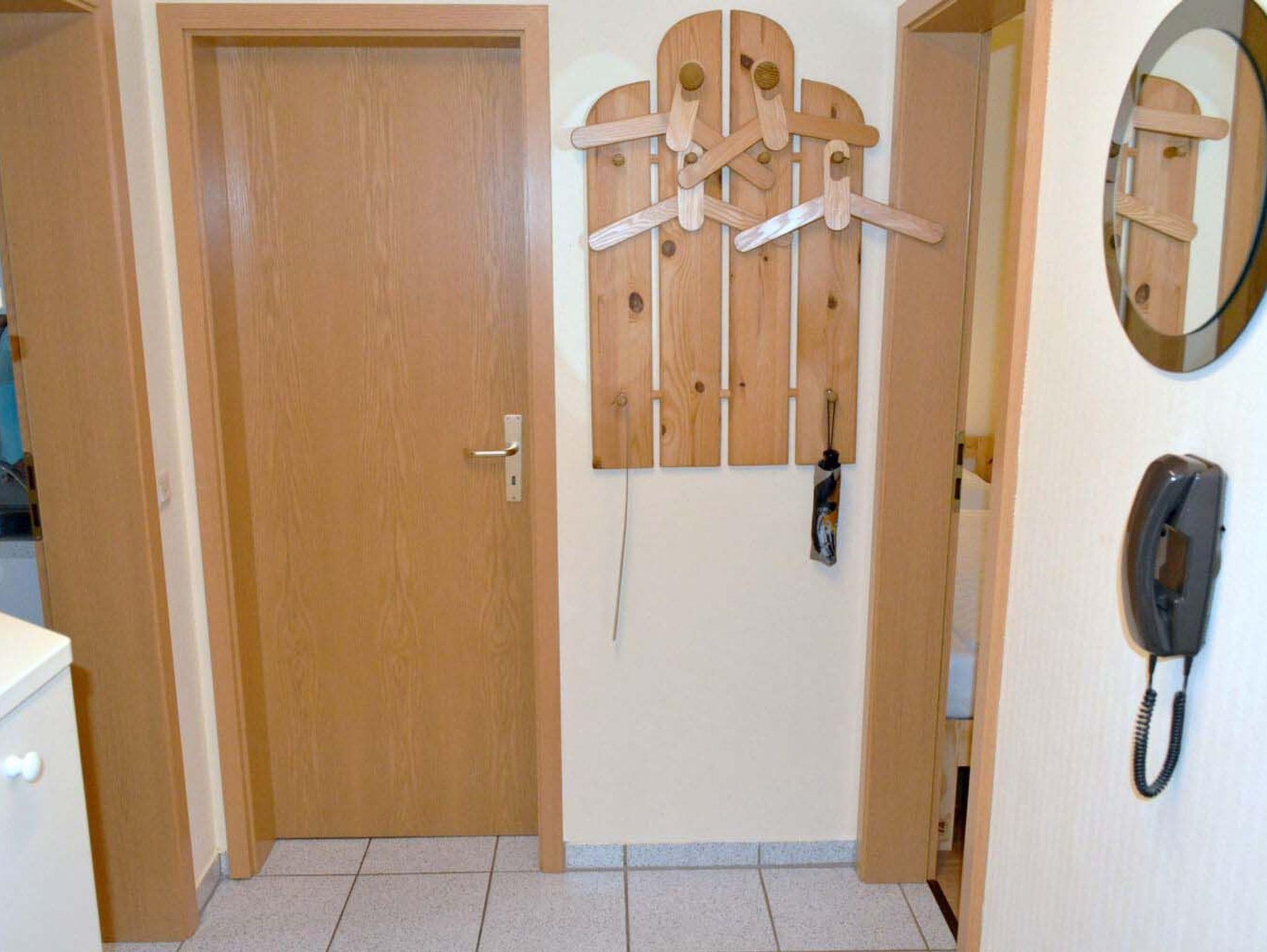 Flur: Garderobenschrank, Spiegel, Staubsauger
