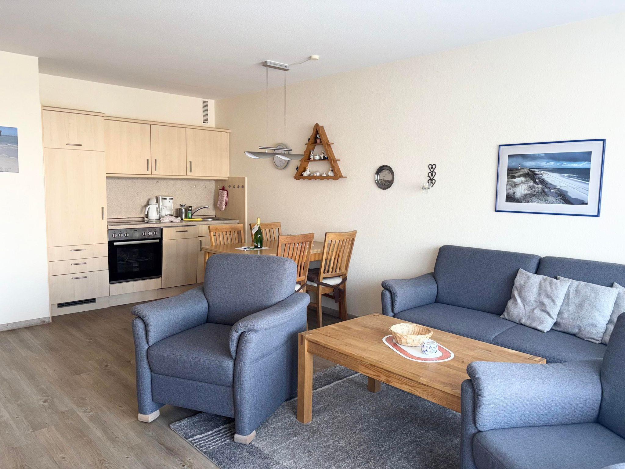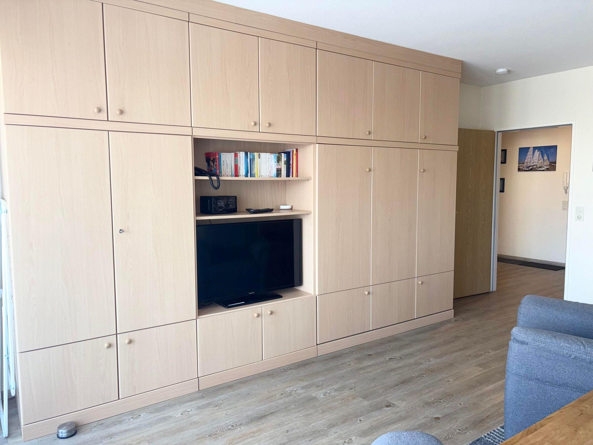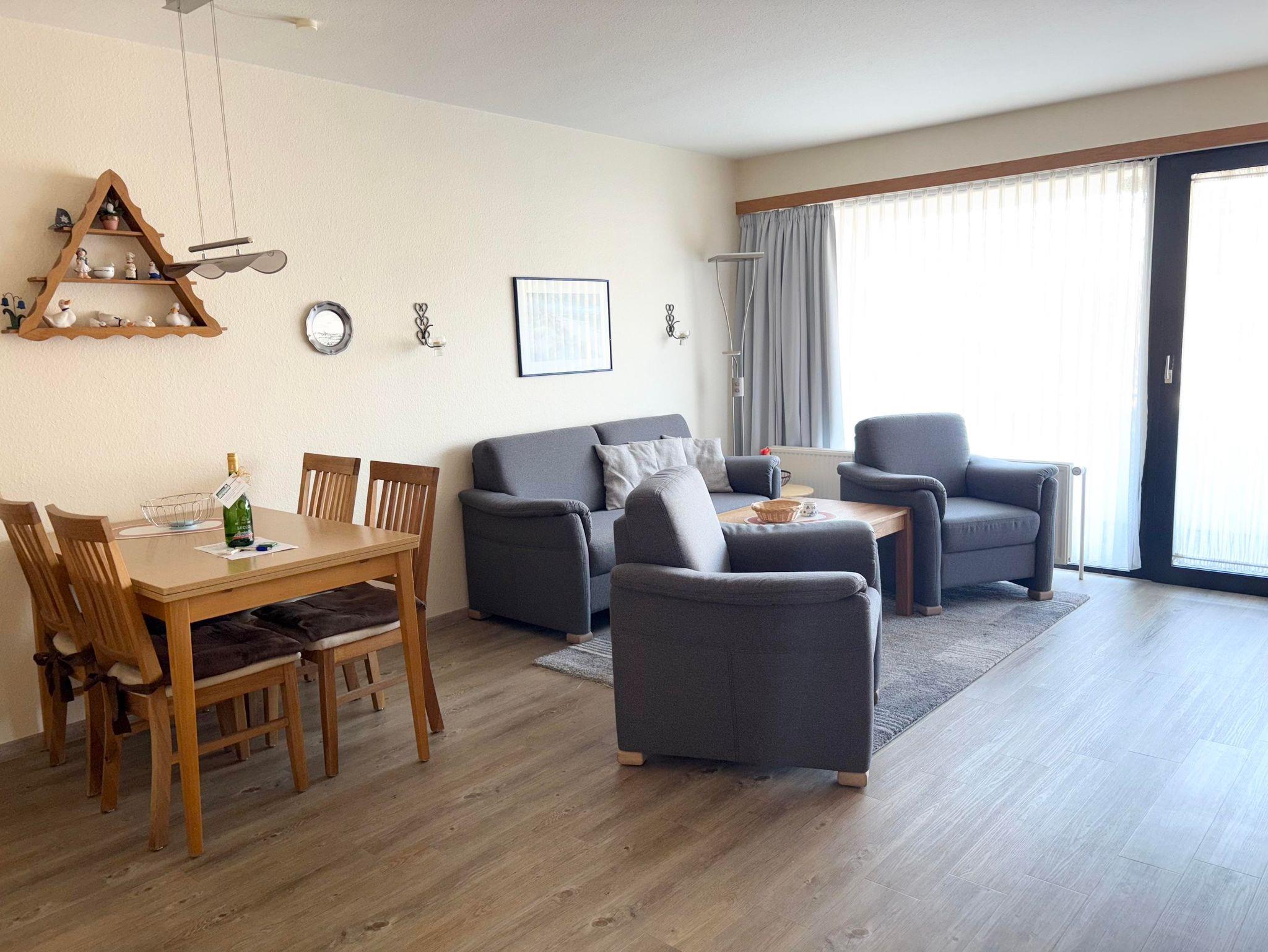 Schlafraum mit 2 Einzelbetten, Wohn-Schlafraum mit 2 Wandschrankbetten (Februar 2018 neu), PVC-Fußboden, Sitzecke, Essecke, Küchenzeile mit Geschirrspüler und Backofen, 2 x Kabel-TV, Dusche/WC, Durchwahltelefon, Balkon, PKW-Platz-Nr.28, Aufzug und Fahrradkeller vorhanden. Rezeption, Brötchenservice, Schwimmbad, Sauna kostenpflichtig,