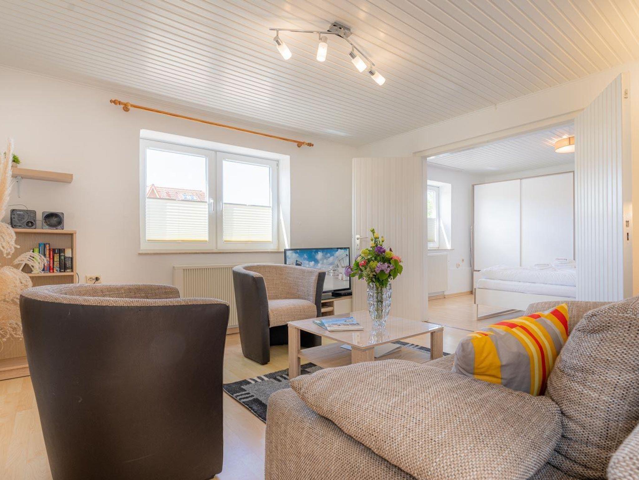 Gemütliche Ferienwohnung Aufwind in St. Peter-Ording, nah zum Strand und Dorfzentrum, mit Terrasse und WLAN.