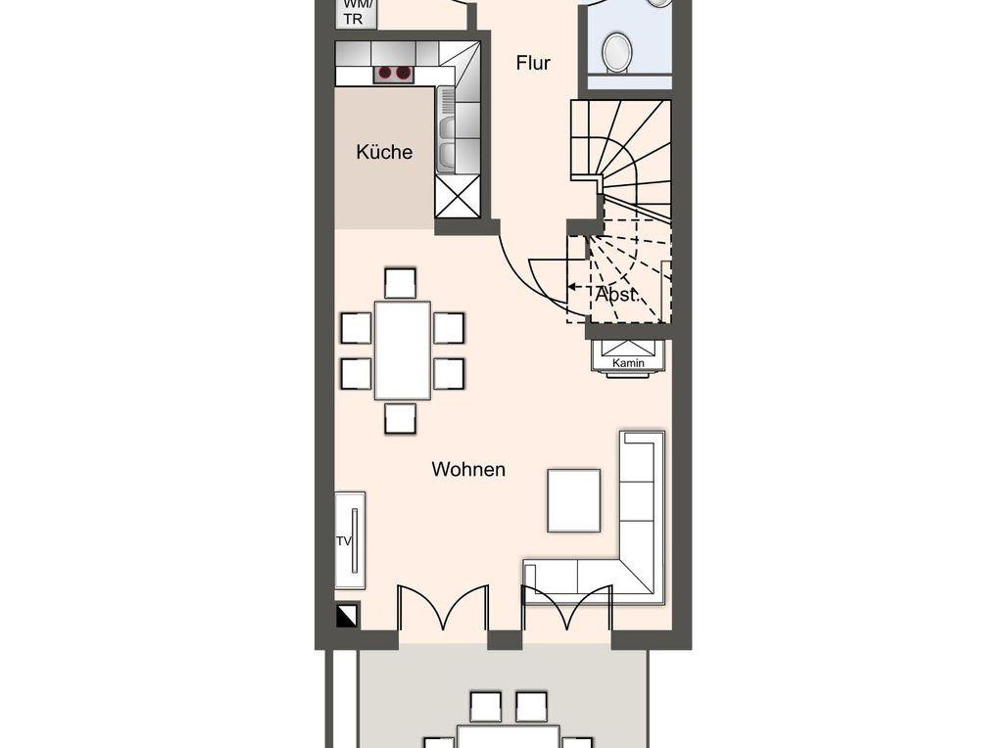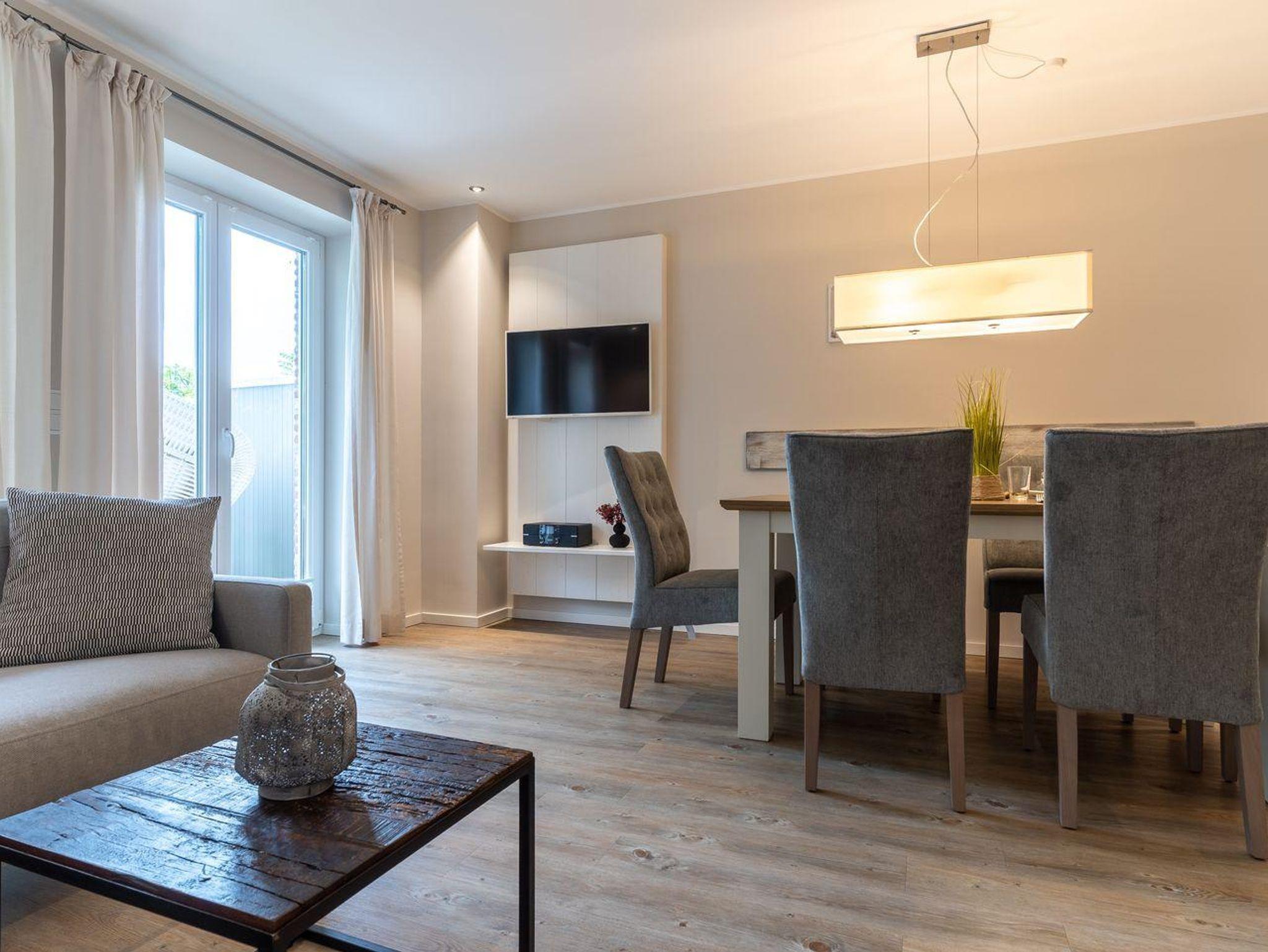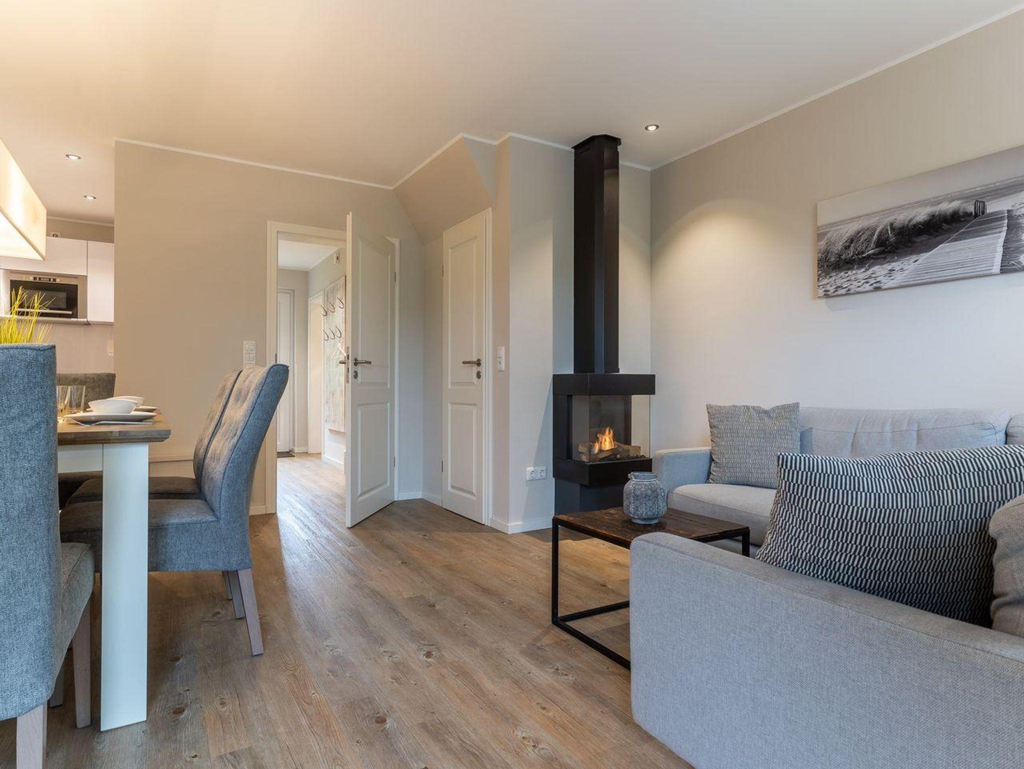 Die luxuriöse Mittelhausscheibe mit Garten, gemütlicher Terrasse und traumhaften Blick über den Deich befindet sich direkt am Ordinger Hauptstrand. Das Haus verfügt über ca. 84 m² Wohnfläche und teilt sich wie folgt auf: Im Erdgeschoss befindet sich der Wohnraum mit einer offenen Wohnküche und einem gemütlichen Essbereich. Ein edler Kamin im Wohnraum bietet ruhevolle Entspannung. Die Küche ist mit hochwertigen Geräten und edlem Geschirr voll ausgestattet. Im Erdgeschoss ist ebenso ein Gäste WC, ein Flur mit Garderobe, ein Abstellraum unter der Treppe und Hauswirtschaftsraum mit Waschmaschine. Über eine Holztreppe gelangt man in das Obergeschoss mit zwei großzügigen Schlafzimmern, eines mit einem Doppelbett und das Andere mit 2 Einzelbetten. Ebenso ist im OG noch ein geräumiges Duschbad. Über eine weitere Holztreppe geht es vom Doppelzimmer der Einzelbetten ins Dachgeschoss mit gemütlichem Schlafsofa für 2 Personen. Hier kann man mit einem traumhaftem Weitblick bis zum Wasser herrlich entspannen oder übernachten. Mit viel Liebe zum Detail wurde großen Wert auf die Inneneinrichtung gelegt. Das ganze Haus verfügt über große Fenster und somit ist jeder Raum herrlich lichtdurchflutet.