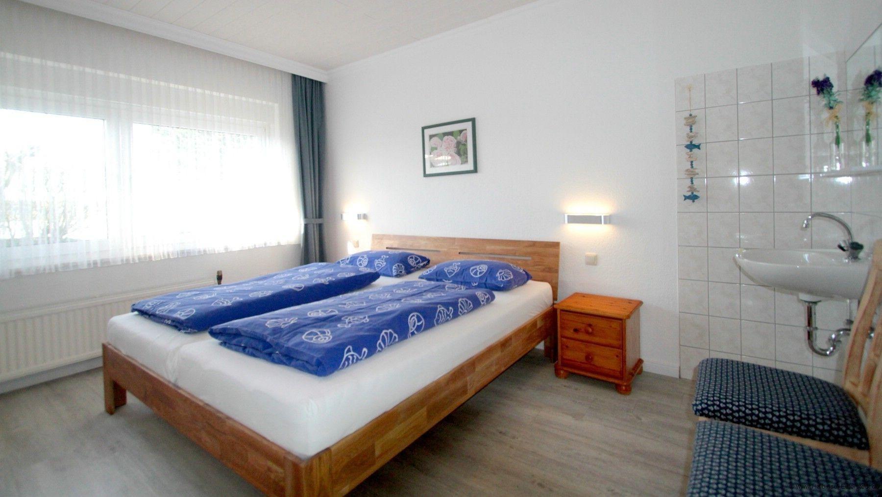 Unsere gemütliche Nichtraucher Ferienwohnung ist ideal geschnitten. Es erwartet Sie ein Schlafzimmer mit Doppelbett, Kleiderschrank, Nachttischen und Fernseher. Der Boden ist mit Laminat ausgelegt und das große Fenster verleiht dem Raum ein wohliges zuhause Gefühl. Das zweite Schlafzimmer ist zwei Einzelbetten eingerichtet, mit Laminatboden ausgelegt. Das Zimmer bietet auch Platz für Ihre privaten Sachen.