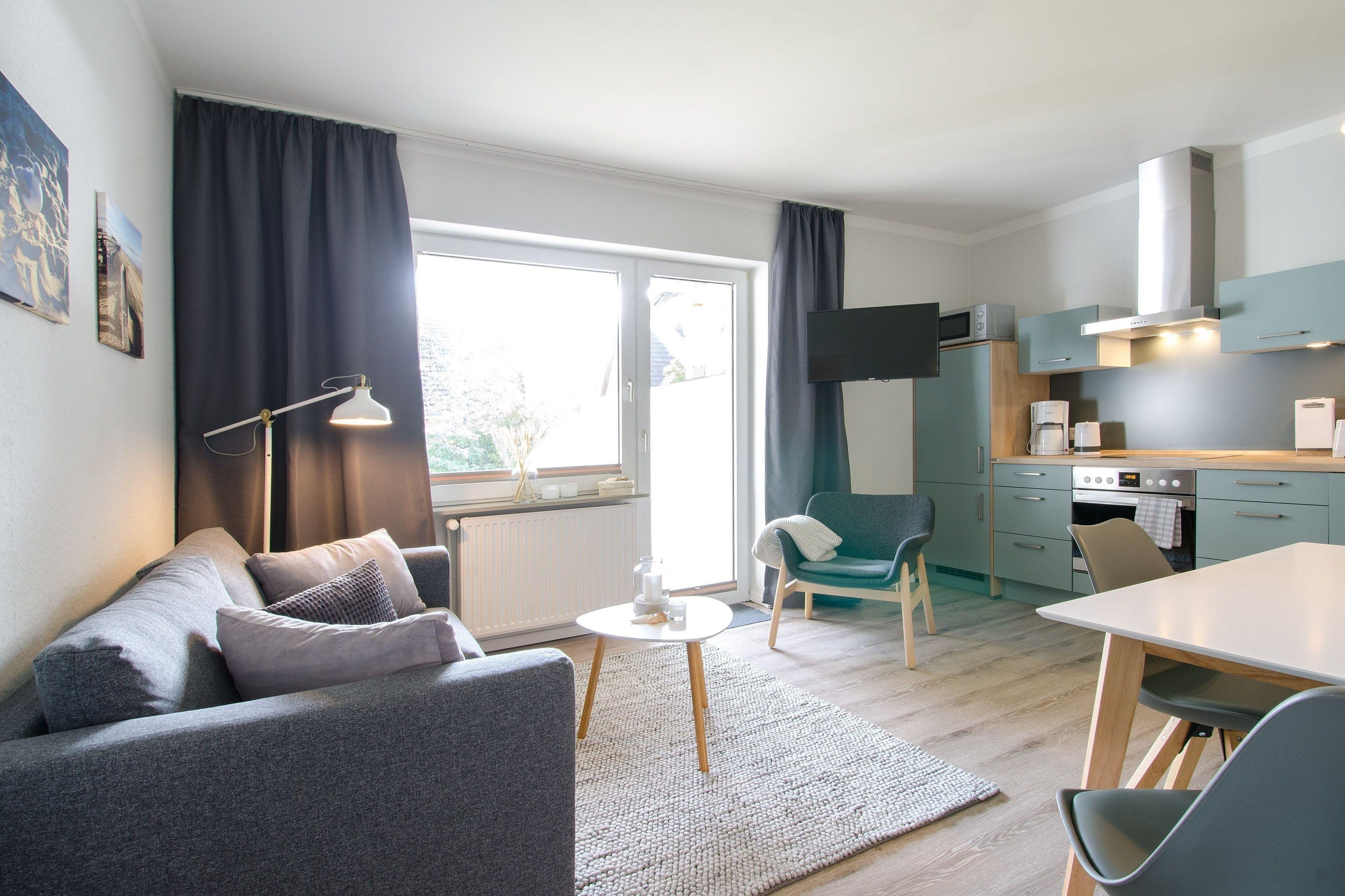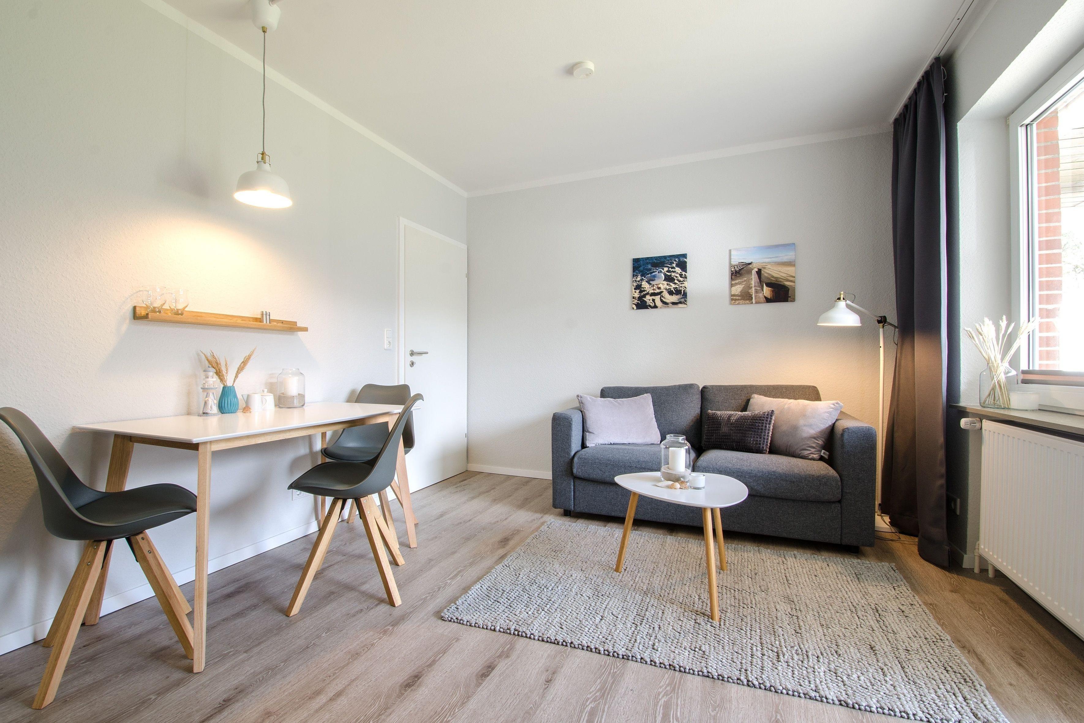 Gemütliche 2-Zimmer-Wohnung mit Terrasse und Garten in St. Peter-Ording, nahe dem Strand und Leuchtturm.