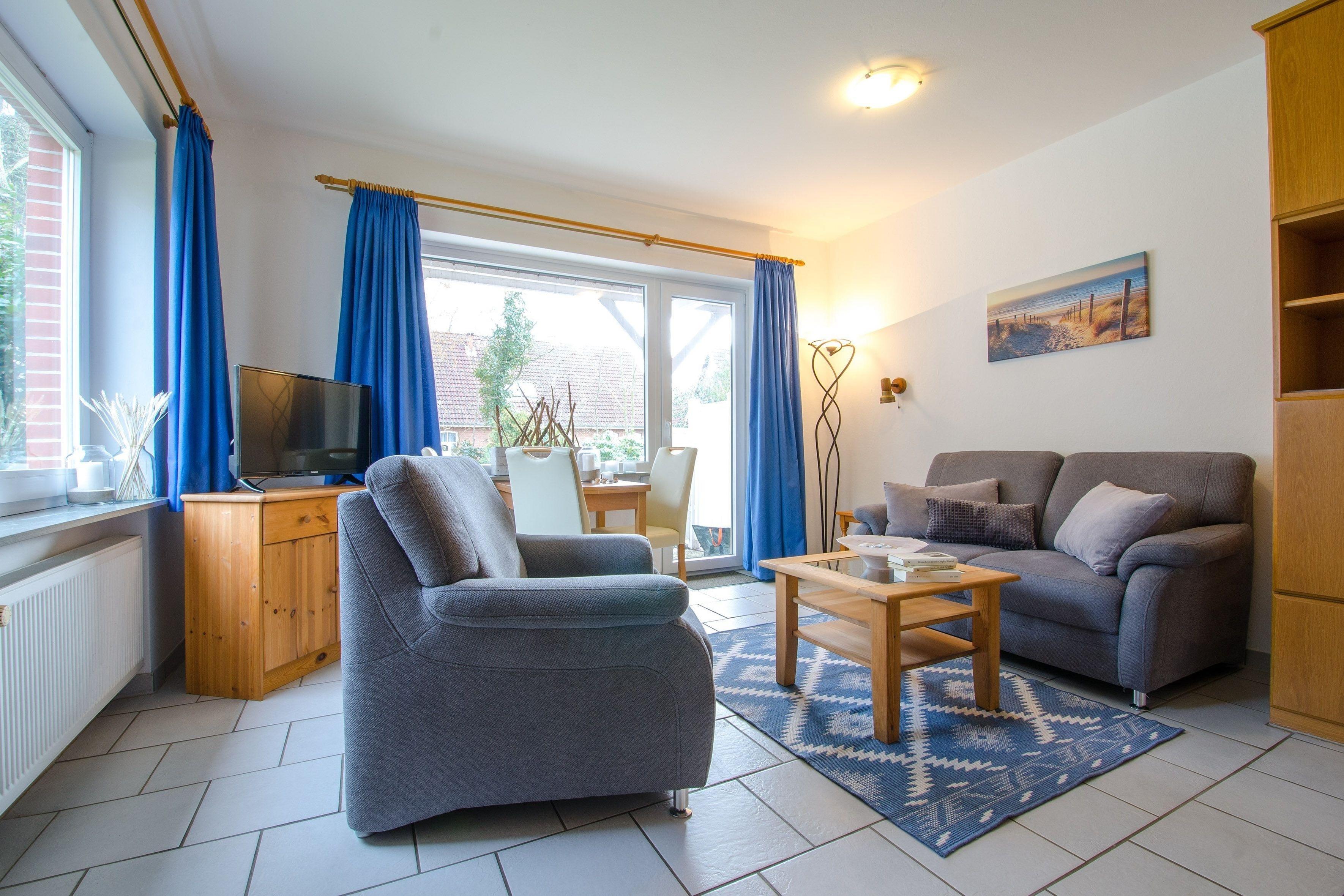 Gemütliche Ferienwohnung mit Terrasse, Garten und Strandkorb in ruhiger Lage nahe dem Deich in St. Peter-Ording.