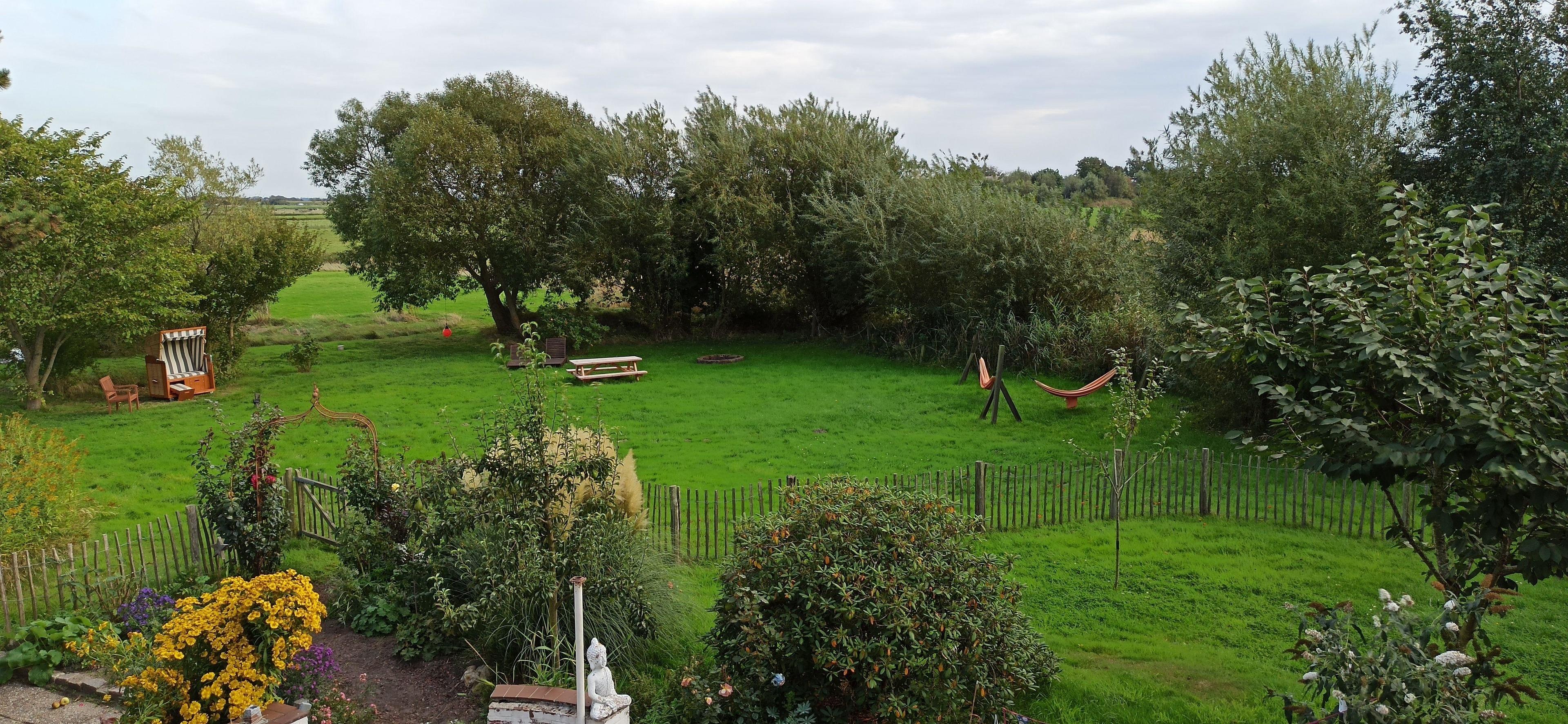 Unser Landhaus hat einen herrlichen Garten, der Sie einlädt, zu entspannen und in Ruhe den weiten Blick über die schöne nordfriesische Landschaft zu genießen.