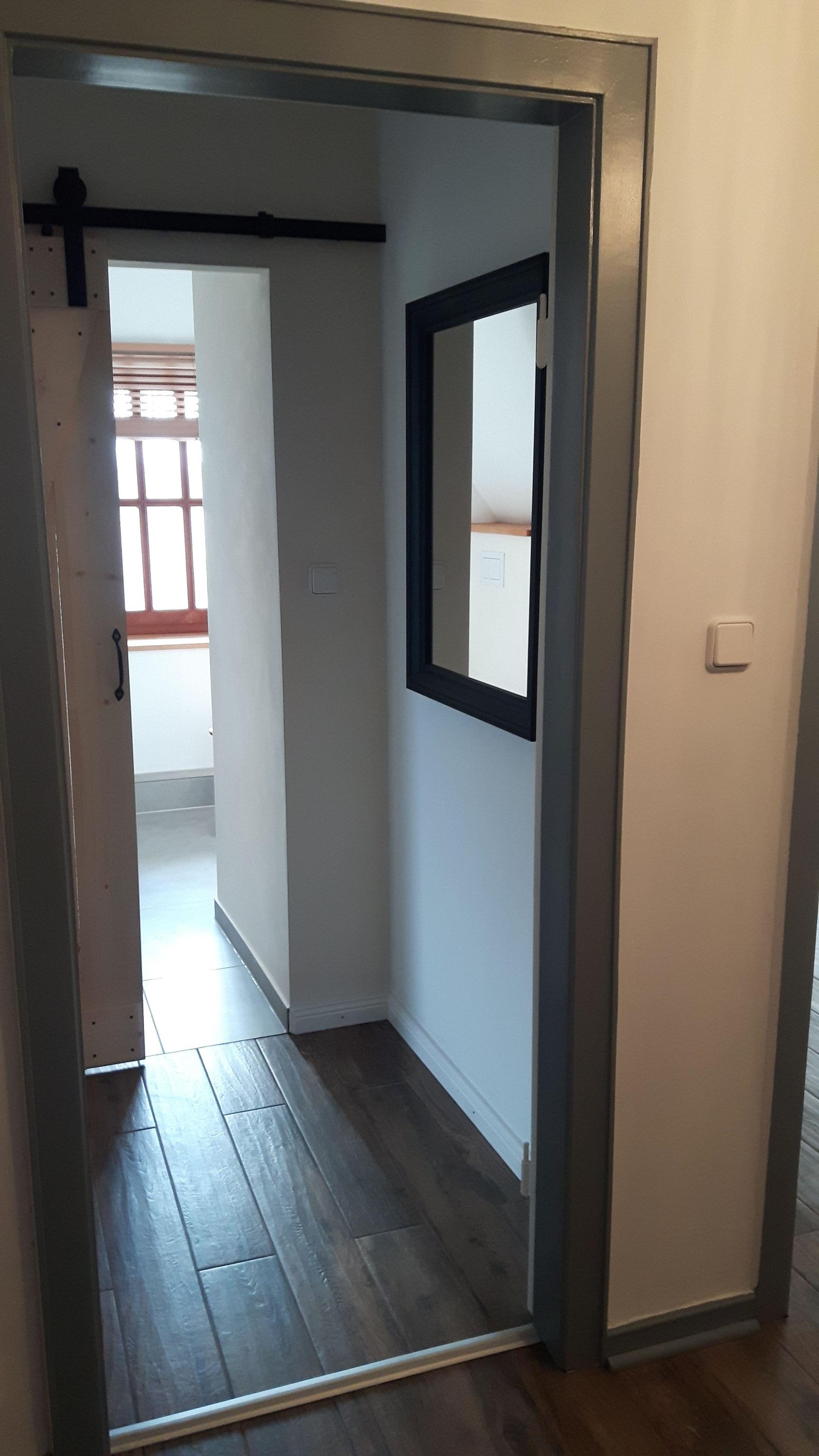 Die Ferienwohnung im Obergeschoss hat einen großzügigen Flur und einen sehr einladenden Wohnbereich.