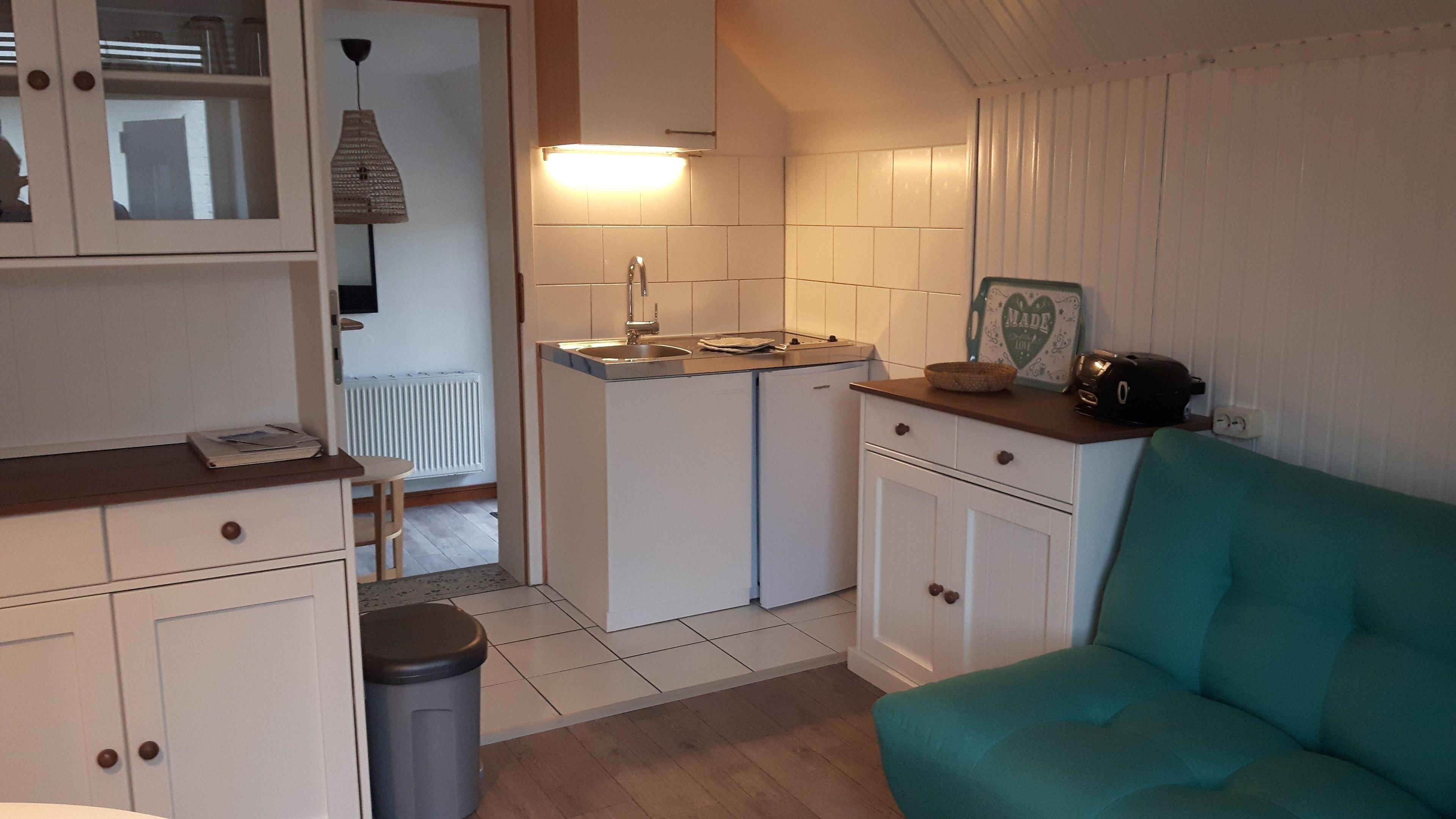 Die Pantry-Küche hat einen 2-Platten-Herd, Kühlschrank mit Gefrierfach, Mikrowelle, Wasserkocher, Kaffeemaschine und ausreichend Geschirr.