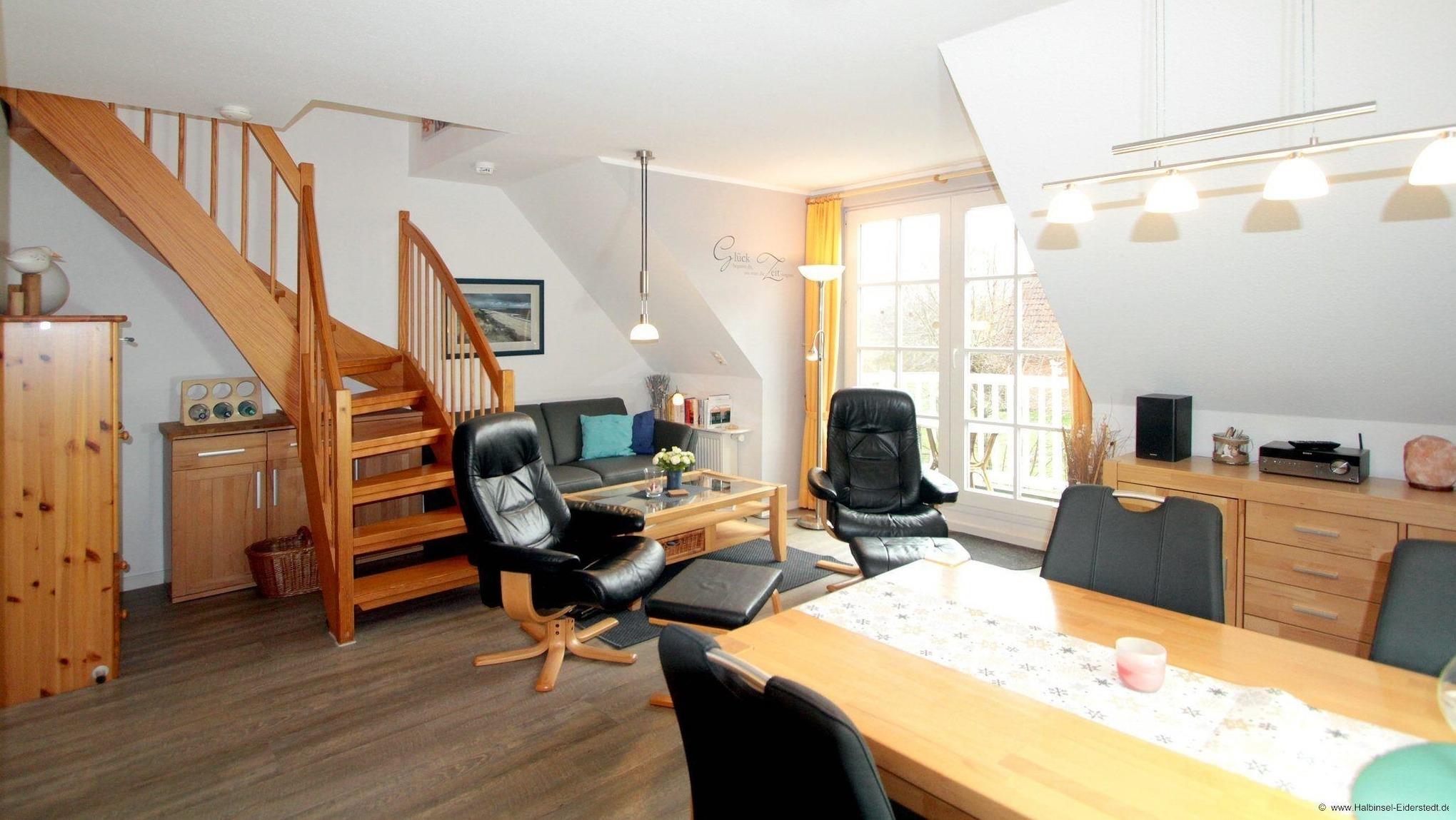 Unsere Nichtraucher Ferienwohnung ist geräumig und ideal aufgeteilt. Es erwarten Sie helle und lichtdurchflutete Räume mit komfortablen Möbeln. Im Wohnzimmer erwarten Sie bequeme Sitzmöbel, für Entertainment sorgen TV-Gerät und eine Stereoanlage.