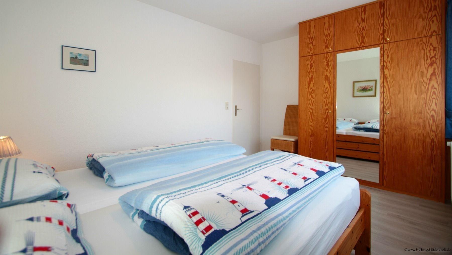 Insgesamt stehen Ihnen zwei separate Schlafräume zur Verfügung. Alle Betten sind hochwertig und bieten guten Komfort. Das schlichte Eltern-Zimmer ist mit einem Doppelbett eingerichtet. Das zweite Schlafzimmer verfügt über zwei Einzelbetten. In den Kleiderschränken gibt es genug Platz für ihre Kleider.
