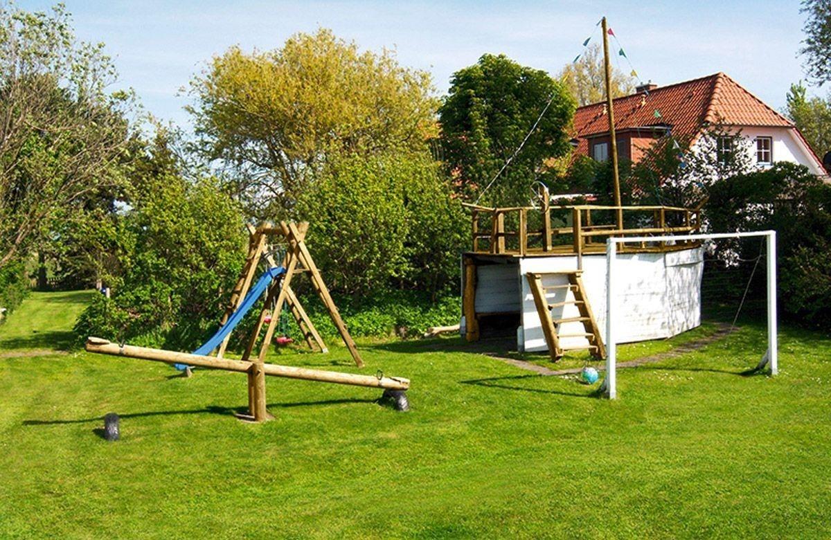 Für die großen und kleinen Kinder gibt es eine Tischtennisplatte, einen Tischkicker, den Spielplatz mit Spielschiff, Fußballtor, Wippe, Reckstangen, Schaukeln, eine Sandkiste, reichlich Platz und vieles mehr.