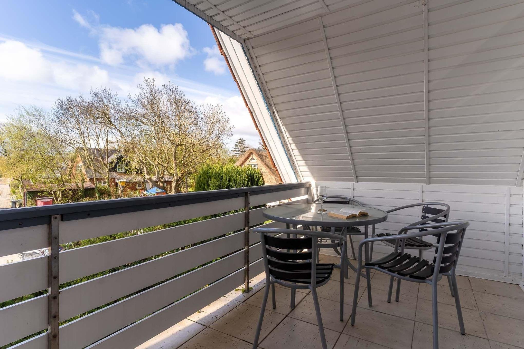 Auf dem großen sonnigen Balkon mit Gartenmöbeln können sie hervorragend Frühstücken oder einfach den Urlaub im eigenen Strandkorb genießen. In dieser besonderen Atmosphäre fühlt sich jeder richtig wohl. Entspannen Sie im wunderschönen Garten mit Blick auf die nordfriesische Wiesenlandschaft. Gerne dürfen sie auch die zahlreichen weiteren Sitzmöglichkeiten, Strandkörbe und Ruheoasen im gesamten Garten nutzen. Natürlich gibt es auch einen Grillplatz für gesellige Stunden.