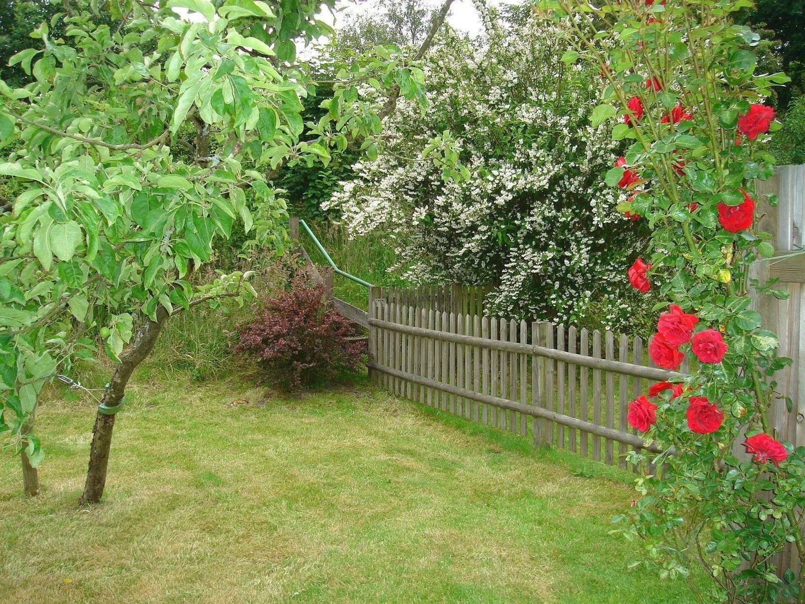 Die Fischerkate ist umgeben von einem sehr schönen Garten mit altem Baumbestand. Ein geräumiger Holzschuppen steht für Ihre Fahrräder bereit. Ihr Auto hat einen sicheren Platz im sehr praktischen Carport mit Bewegungsmelder. Zwei sonnige Terrassen mit Gartenmöbeln warten auf Sie zum Entspannen und Träumen. Für die Kinder haben wir eine Schaukel. Der Garten liegt sehr geschützt direkt am alten Westmarken Deich. Unsere Fischerkate liegt sehr ruhig und dennoch zentral. Von hier aus gelangen Sie schnell in die verschiedenen Ortsteile und Strandabschnitte von Sankt Peter-Ording.