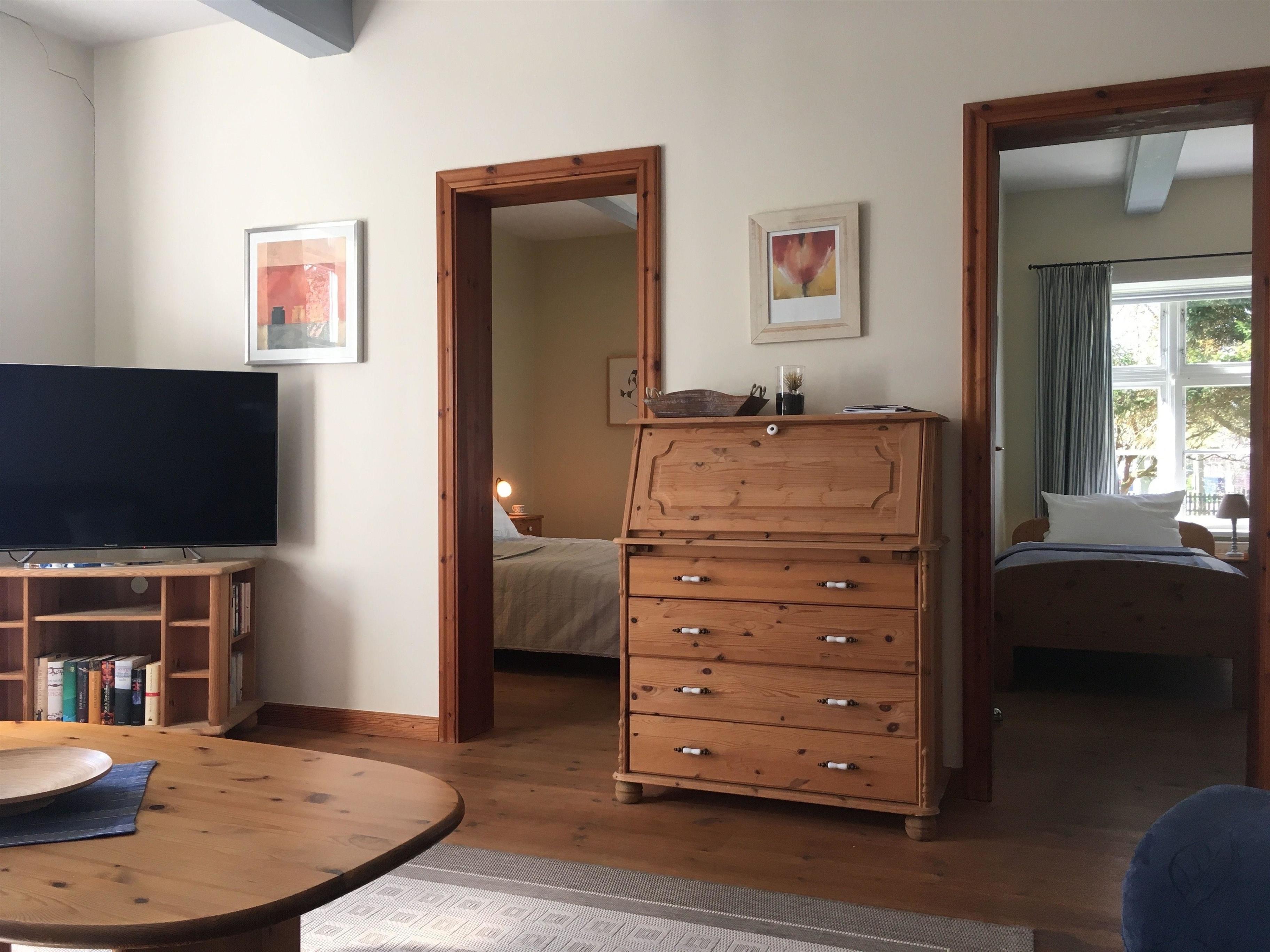 hochwertige Ausstattung. Offene Küche mit einer auf einer Empore befindlichen separaten Sitzecke. Großes Duschbad. 1 Schlafzimmer mit Doppelbetten, 1 Schlafzimmer mit 2 Einzelbetten. Großzügiger Wohnbereich. Sehr grosses Duschbad mit WC, Waschtisch und Urinal.