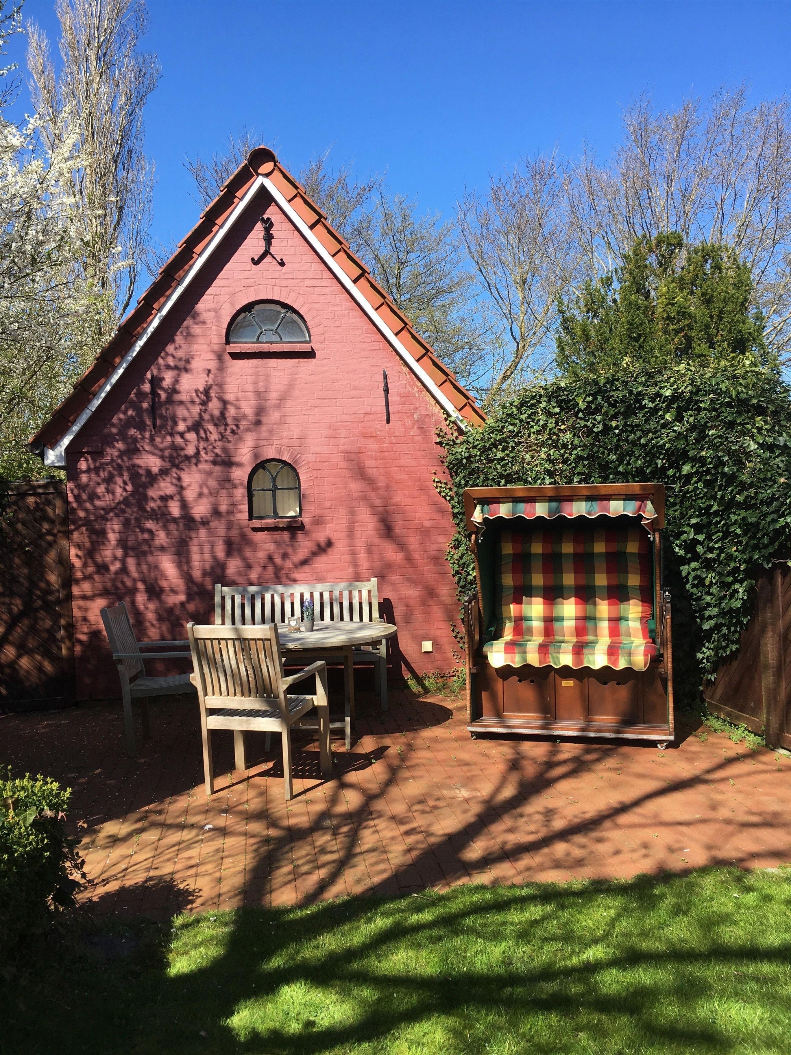 Gemütliche Ferienwohnung mit Reetdach in St. Peter-Ording, nah am Strand und Dorfzentrum, mit eigener Terrasse und Parkplatz.