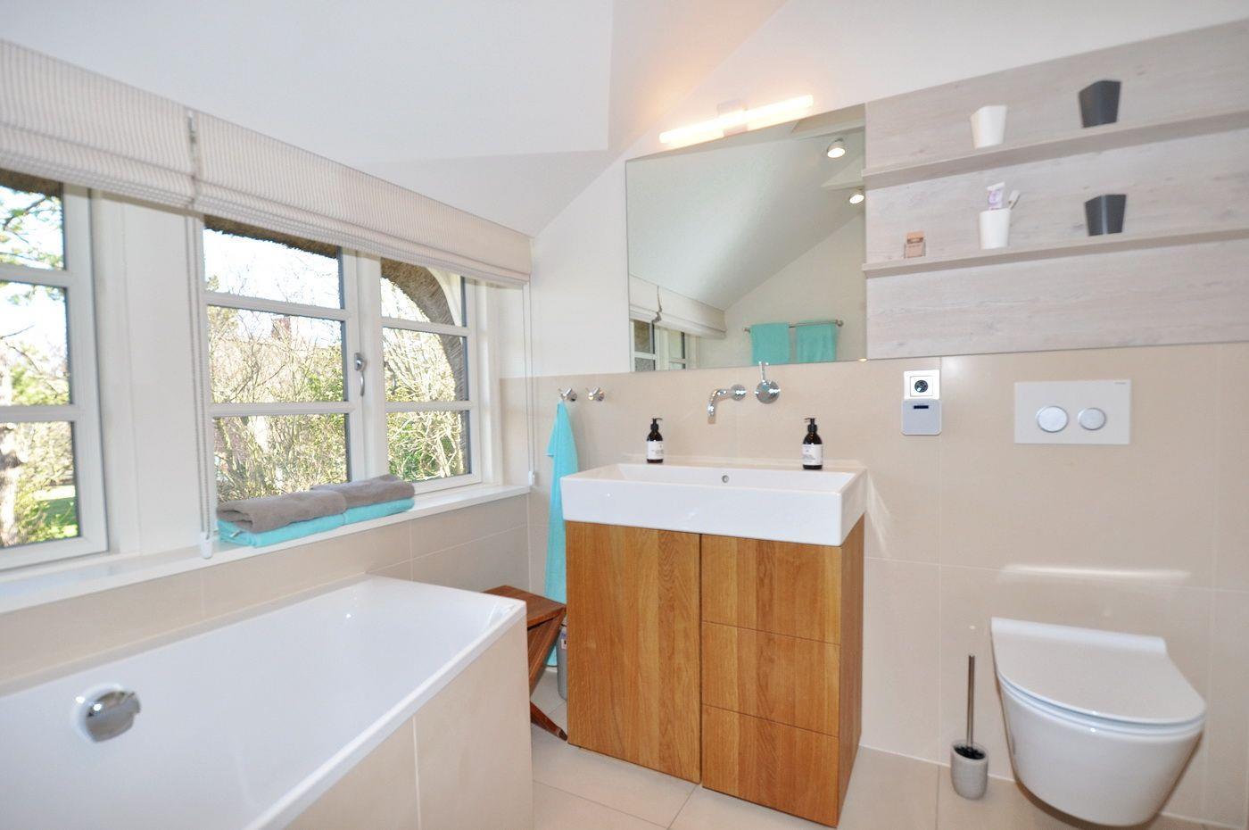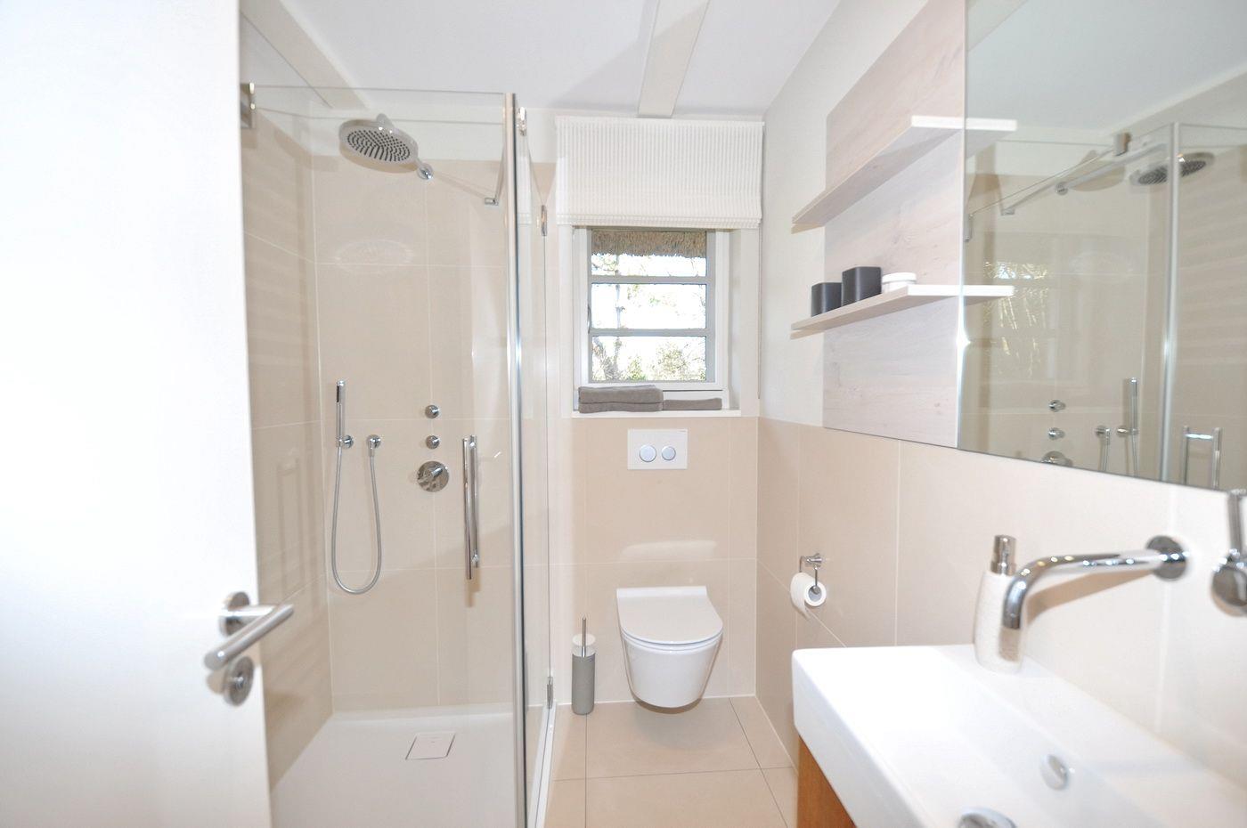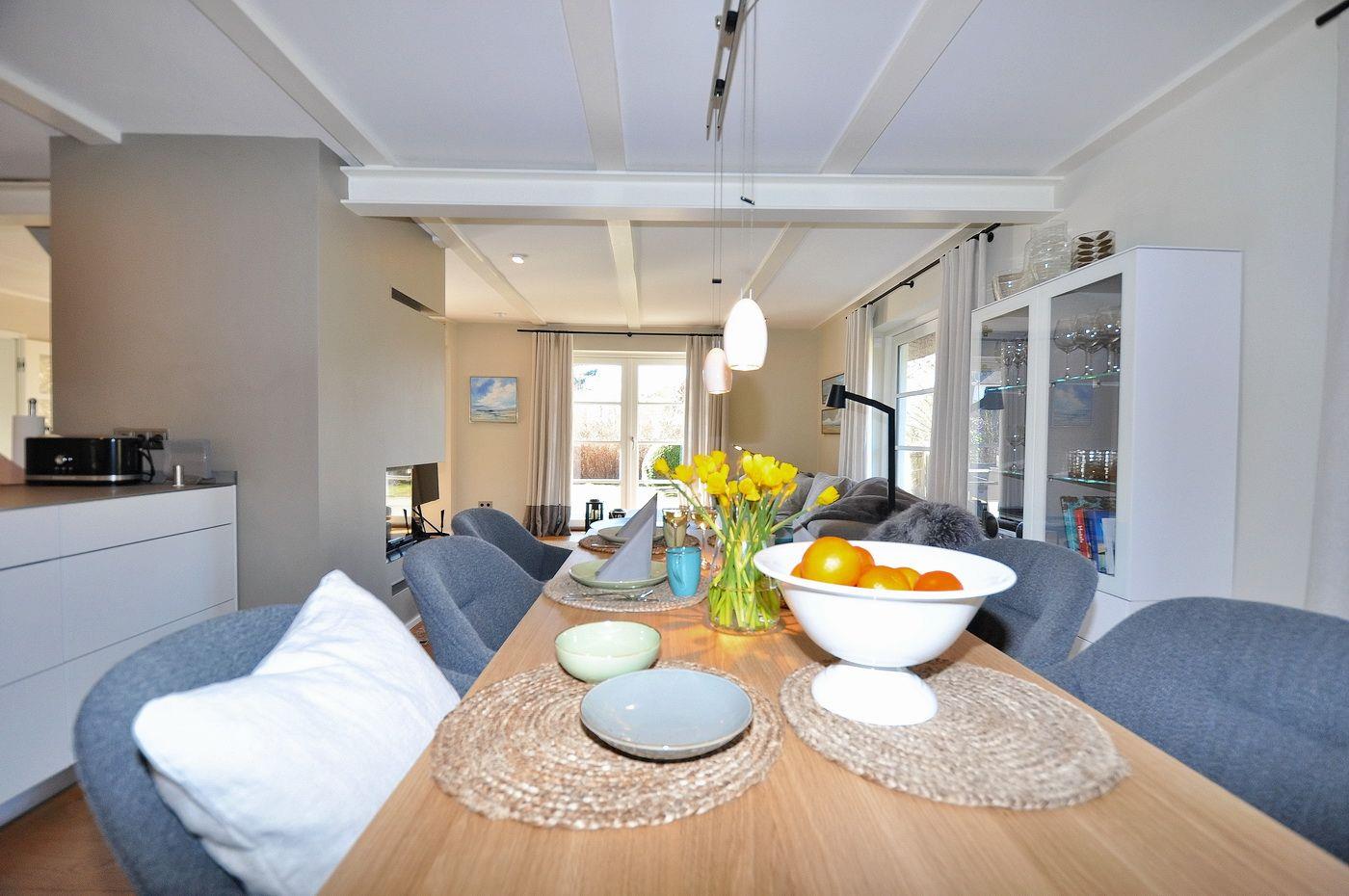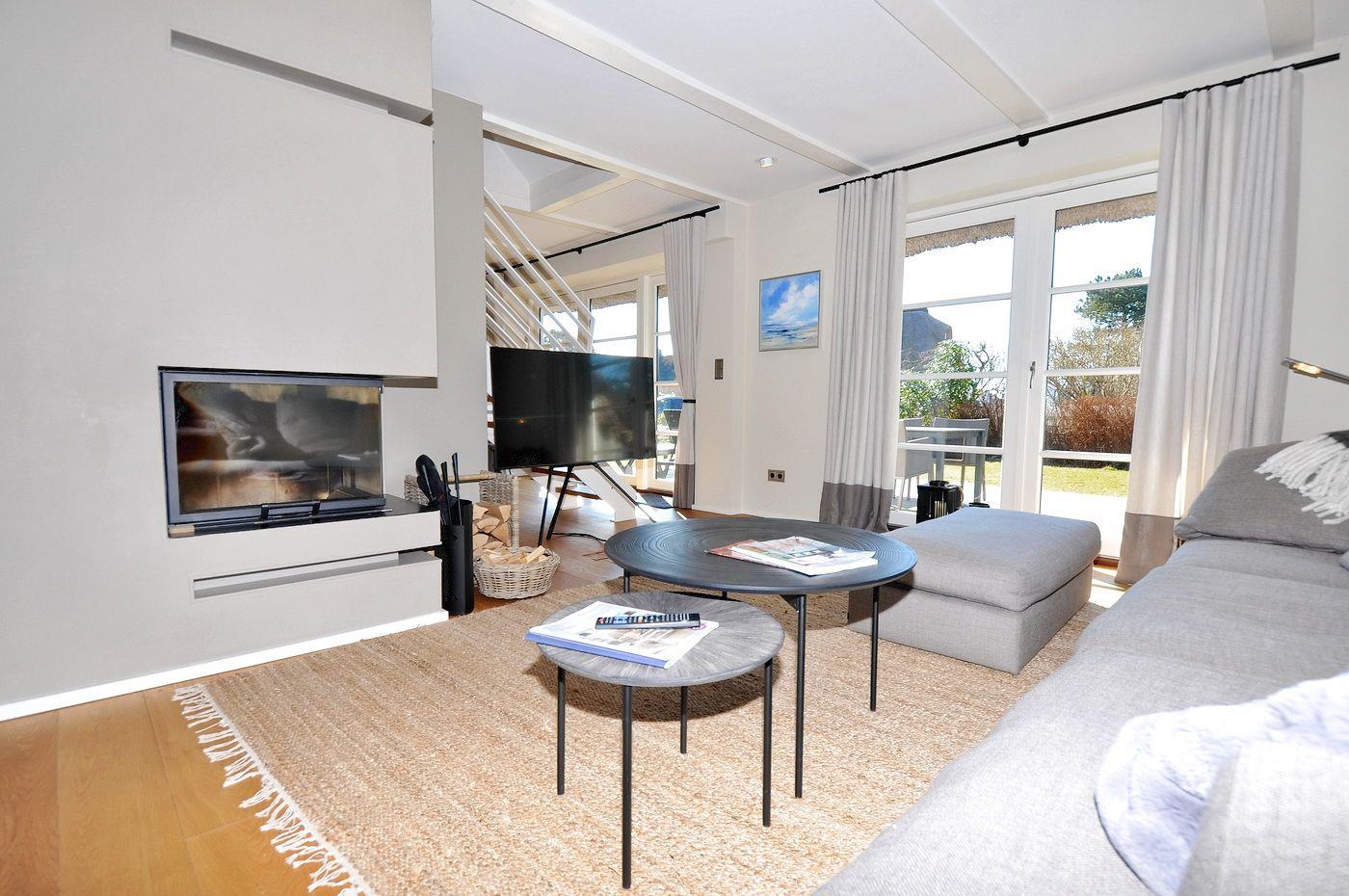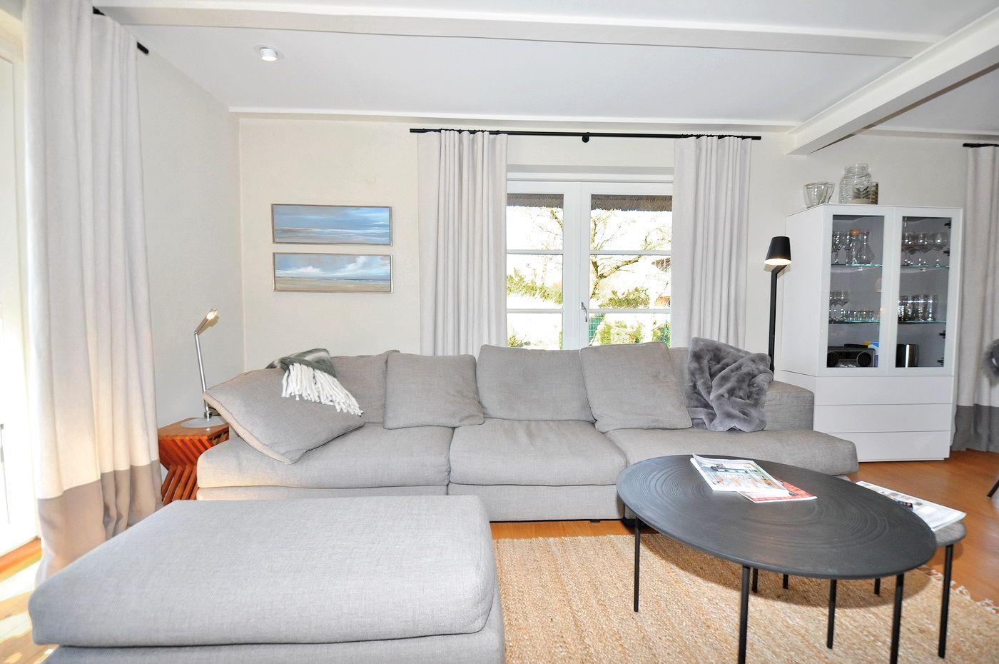 Modernes Reetdachhaus mit Sauna und Garten in ruhiger Lage nahe Strand und Dorfzentrum.
