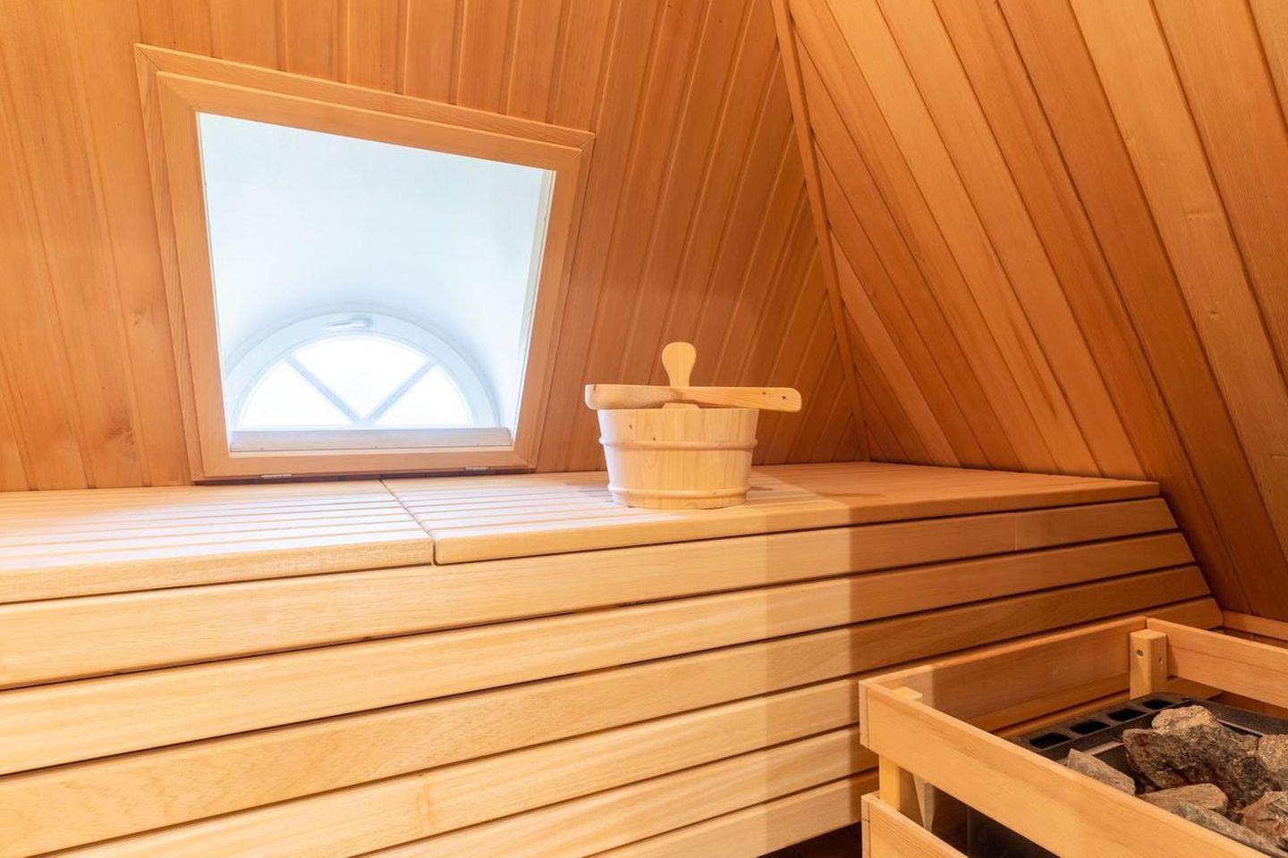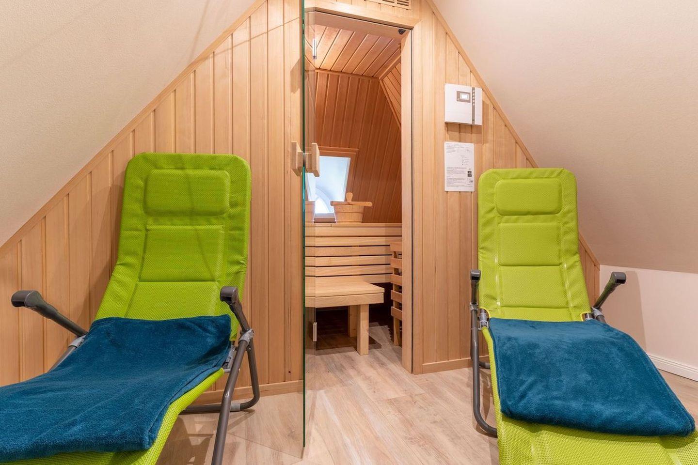 Das Wohlfühlprogramm erwartet Sie im Dachgeschoss, hier erwartet Sie eine Sauna.