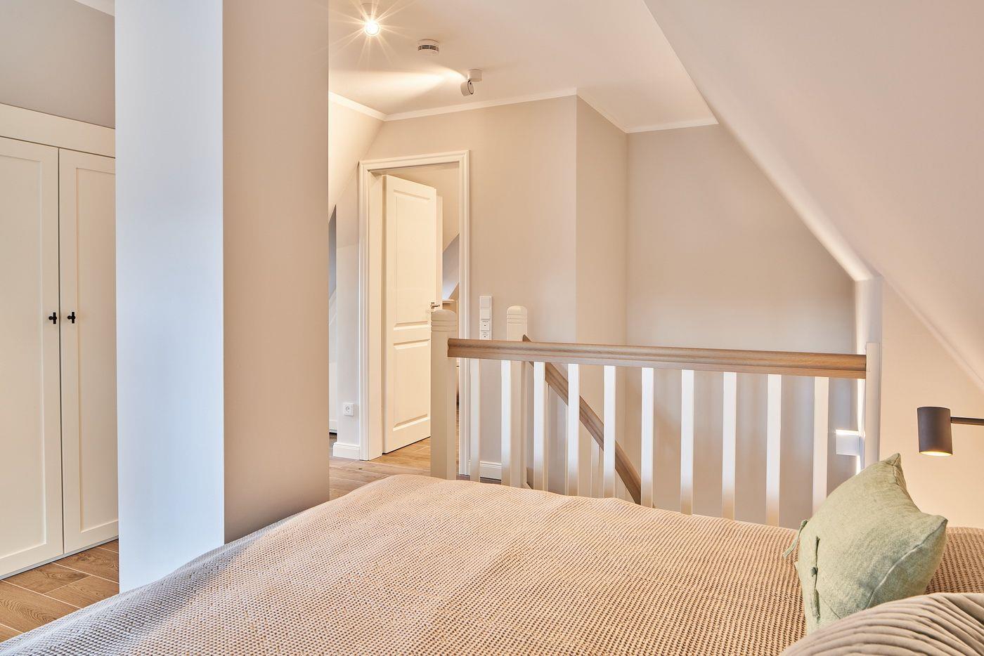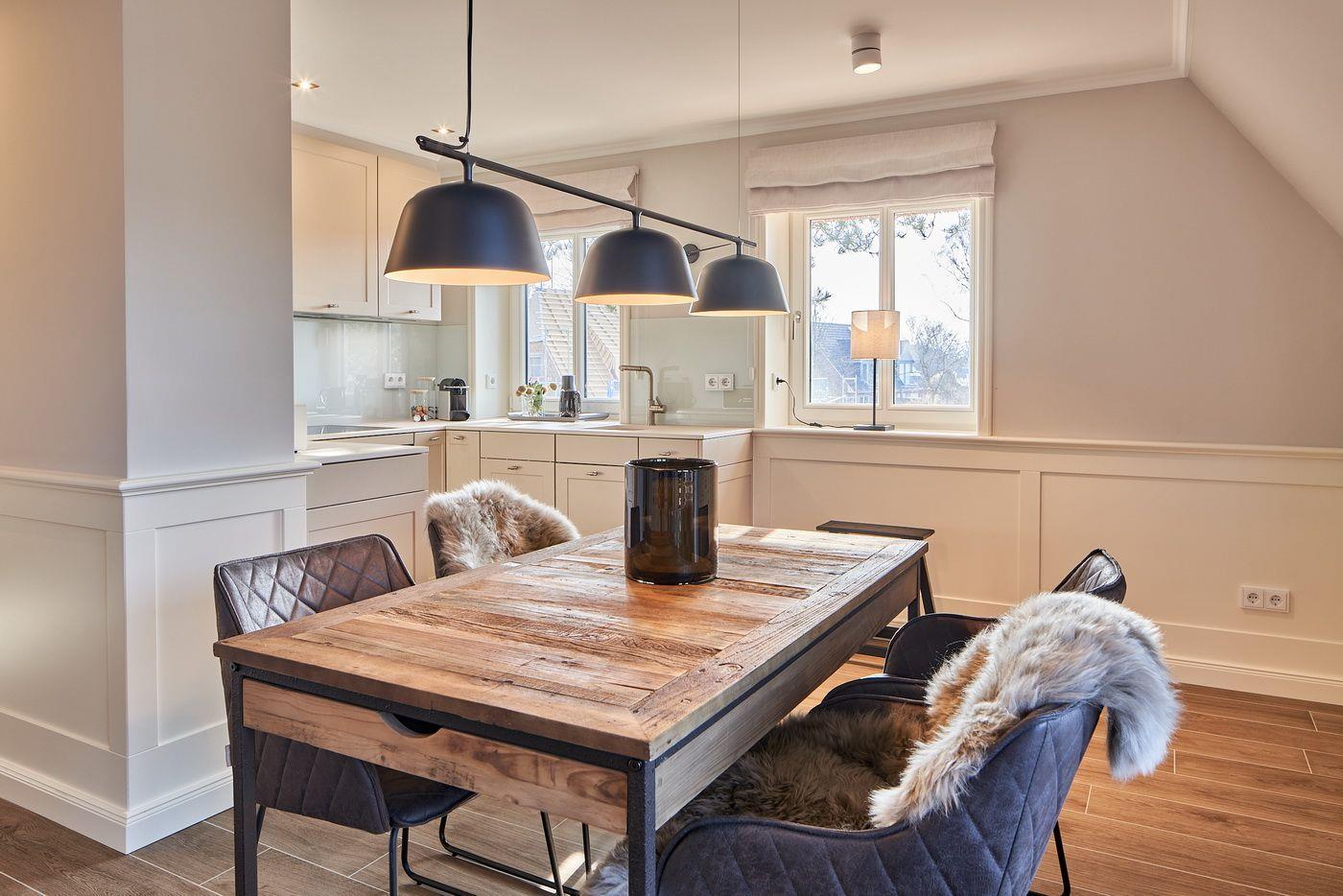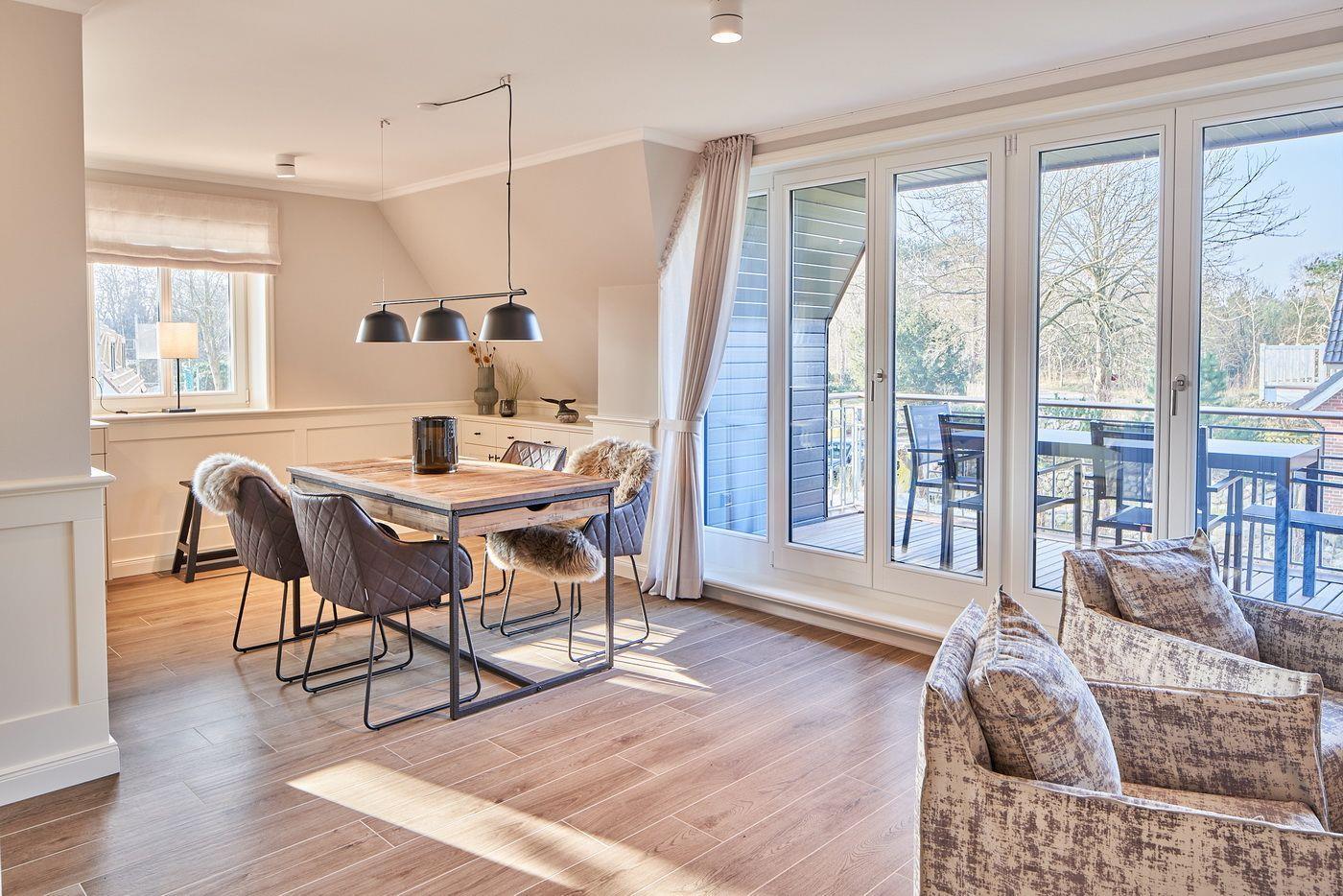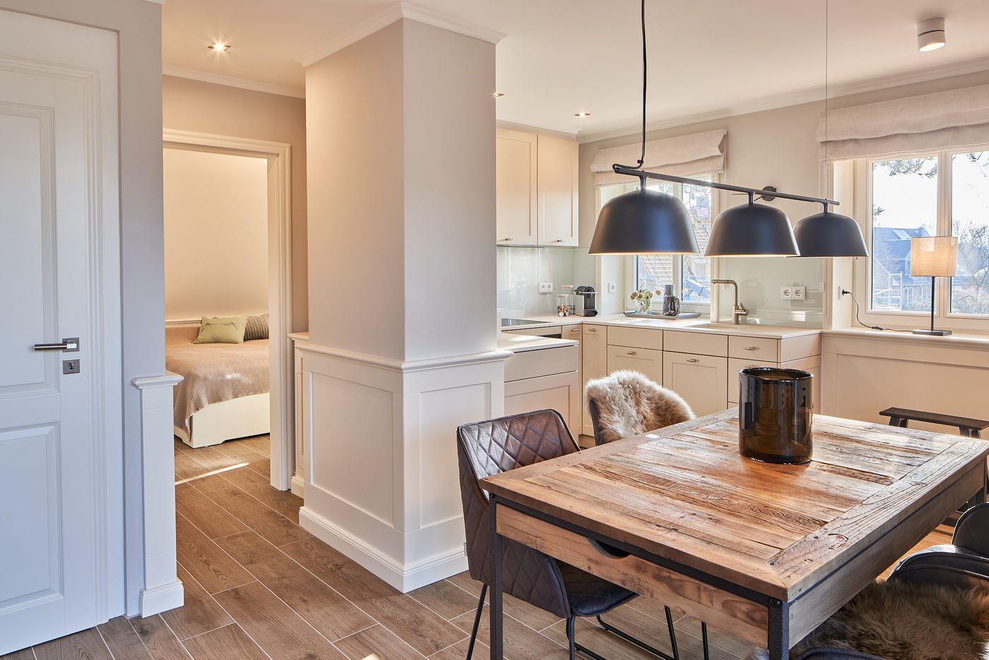 Das Appartement LYKKE 3 befindet sich im Obergeschoss, eines 2021 neu erbauten Reetdachhauses am Waldrand, welches insgesamt 4 Wohneinheiten umfasst. Sie suchen einen Ort an dem Sie gemeinsam Urlaub machen können und doch jeder seinen Bereich hat?! Hier haben Sie den perfekten Ort gefunden! Das angrenzende Wäldchen führt Sie auf direktem Wege mitten ins Zentrum des Ortsteils Bad, in dem Sie neben vielen Restaurants und Einkaufsmöglichkeiten auch die Dünentherme vorfinden. Das Appartement selbst überzeugt mit seinem klaren Stil und lädt durch die exklusive Ausstattung zum Verweilen ein.