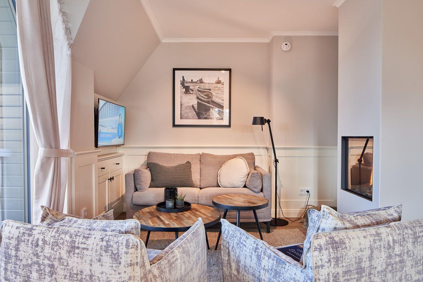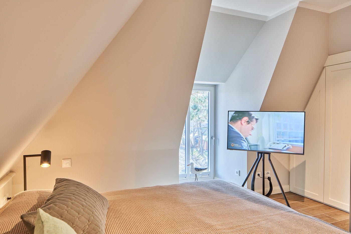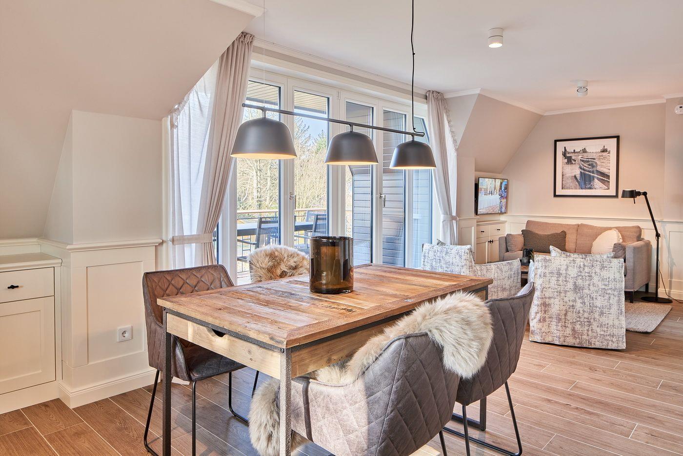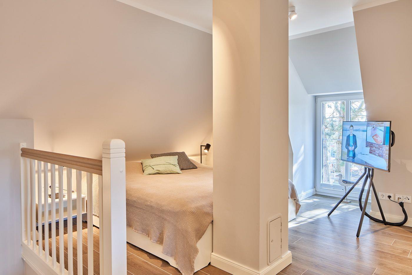 Das Appartement LYKKE 3 befindet sich im Obergeschoss, eines 2021 neu erbauten Reetdachhauses am Waldrand, welches insgesamt 4 Wohneinheiten umfasst. Sie suchen einen Ort an dem Sie gemeinsam Urlaub machen können und doch jeder seinen Bereich hat?! Hier haben Sie den perfekten Ort gefunden! Das angrenzende Wäldchen führt Sie auf direktem Wege mitten ins Zentrum des Ortsteils Bad, in dem Sie neben vielen Restaurants und Einkaufsmöglichkeiten auch die Dünentherme vorfinden. Das Appartement selbst überzeugt mit seinem klaren Stil und lädt durch die exklusive Ausstattung zum Verweilen ein.
