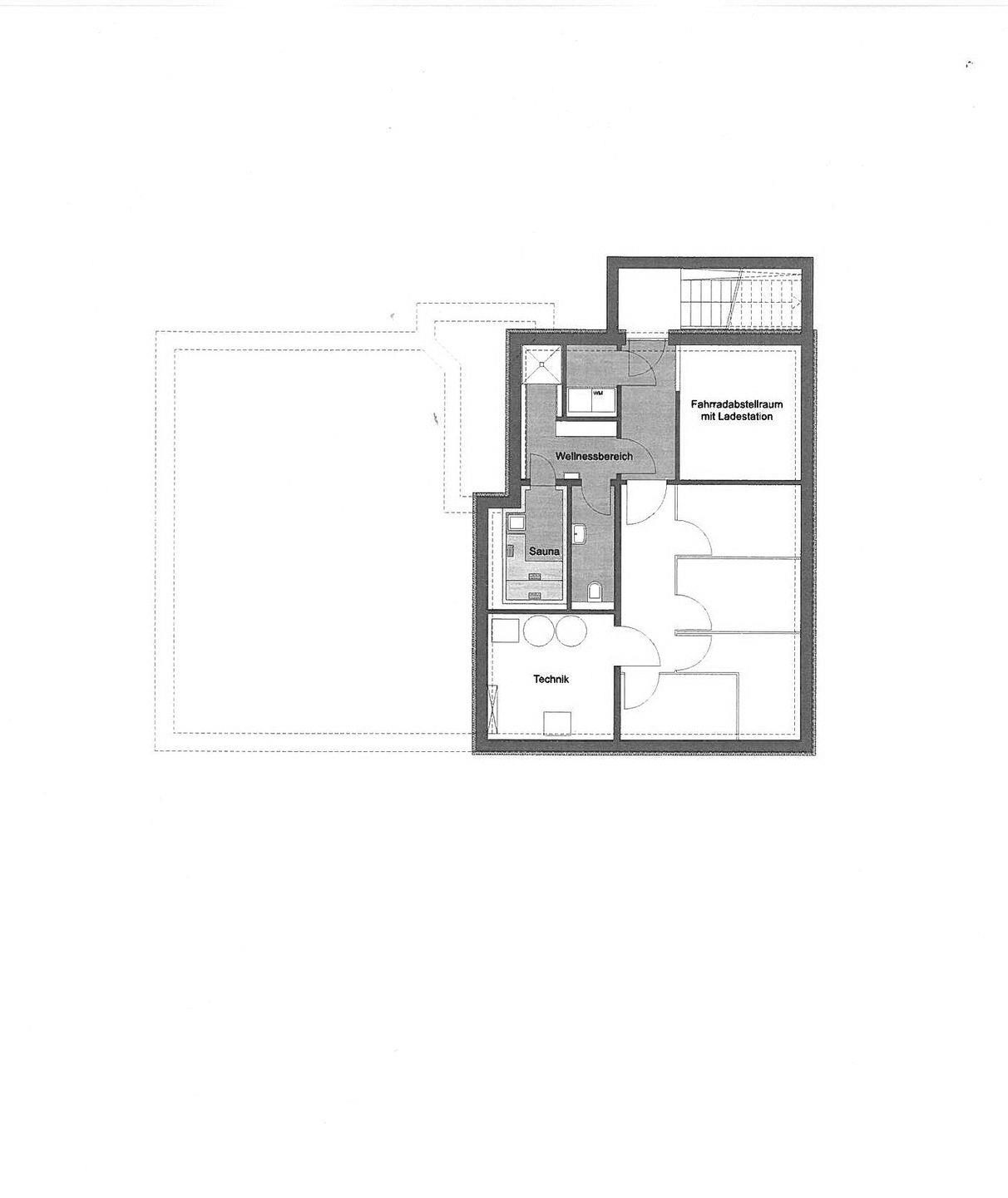 Darüber hinaus finden Sie hier auch den Wellnessbereich mit Gemeinschaftssauna, sowie Dusche und WC.