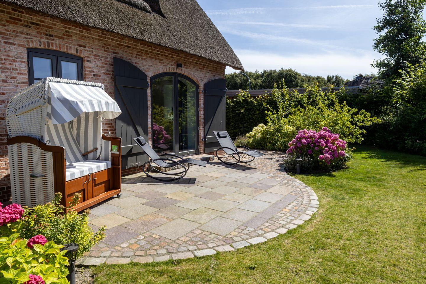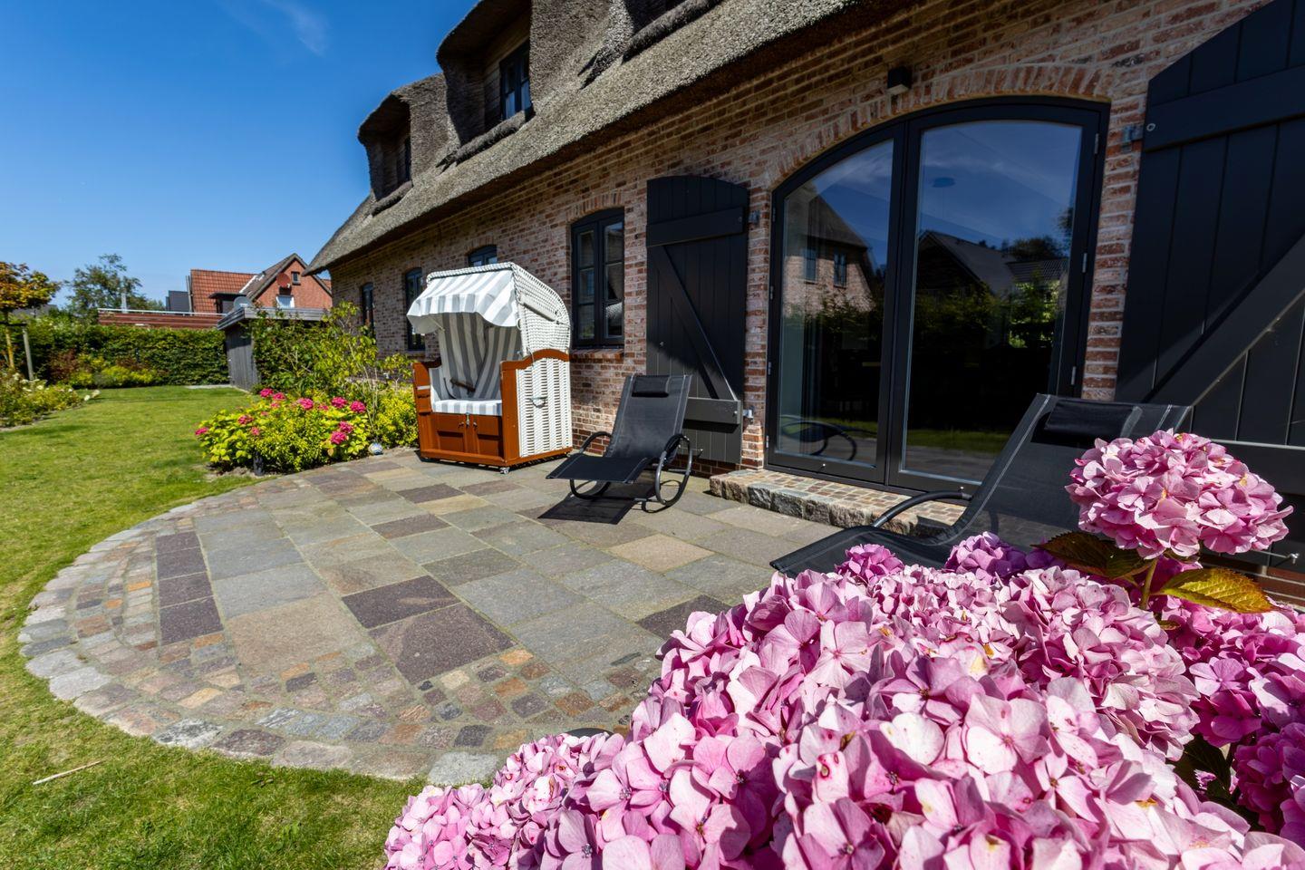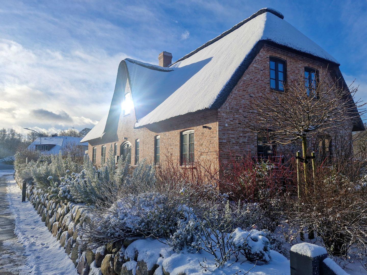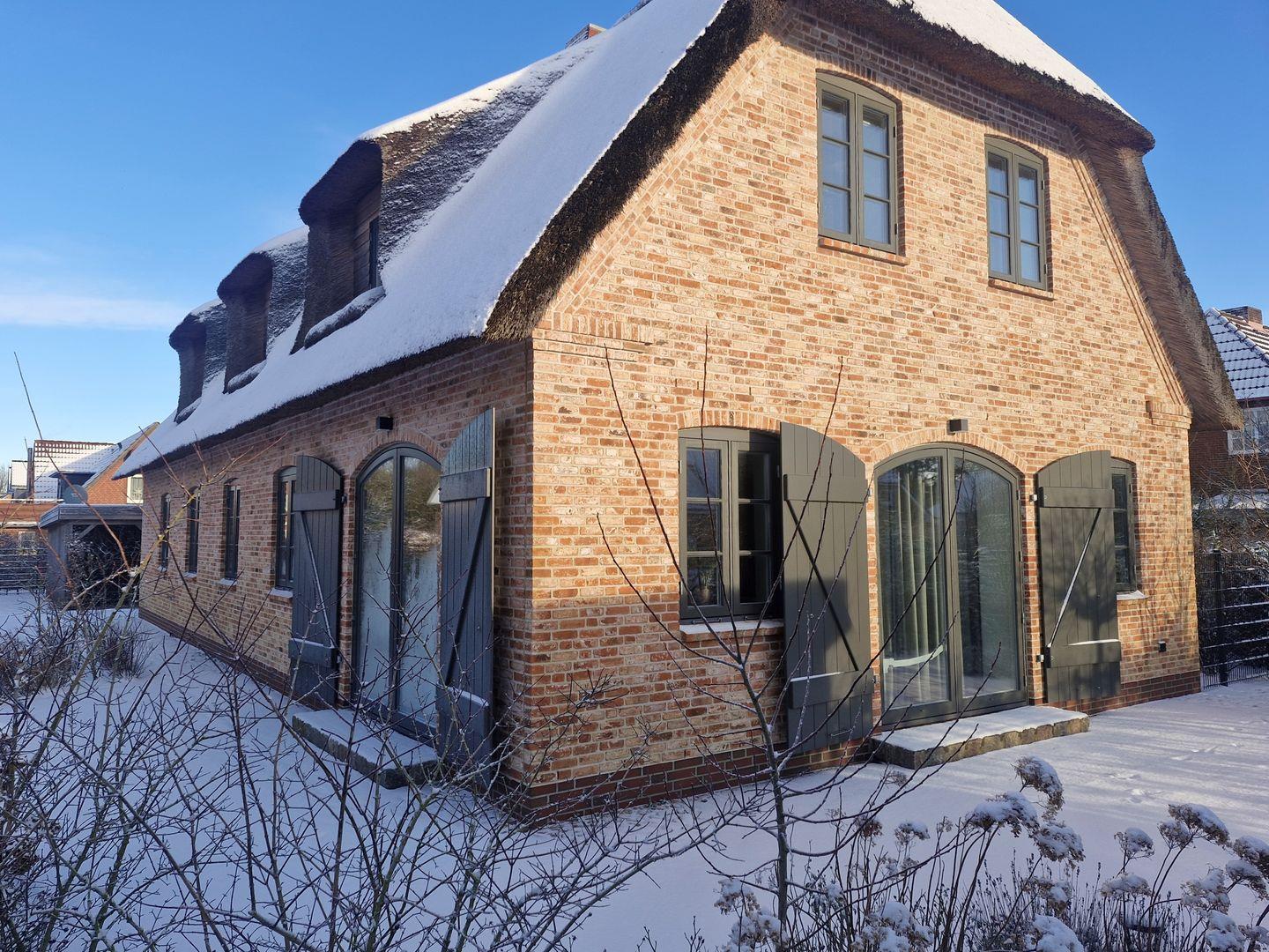 Erleben Sie Luxus, Komfort und Sauna im Reetdachhaus Krabbenhuus in St. Peter-Ording, nur wenige Minuten vom Deich entfernt.