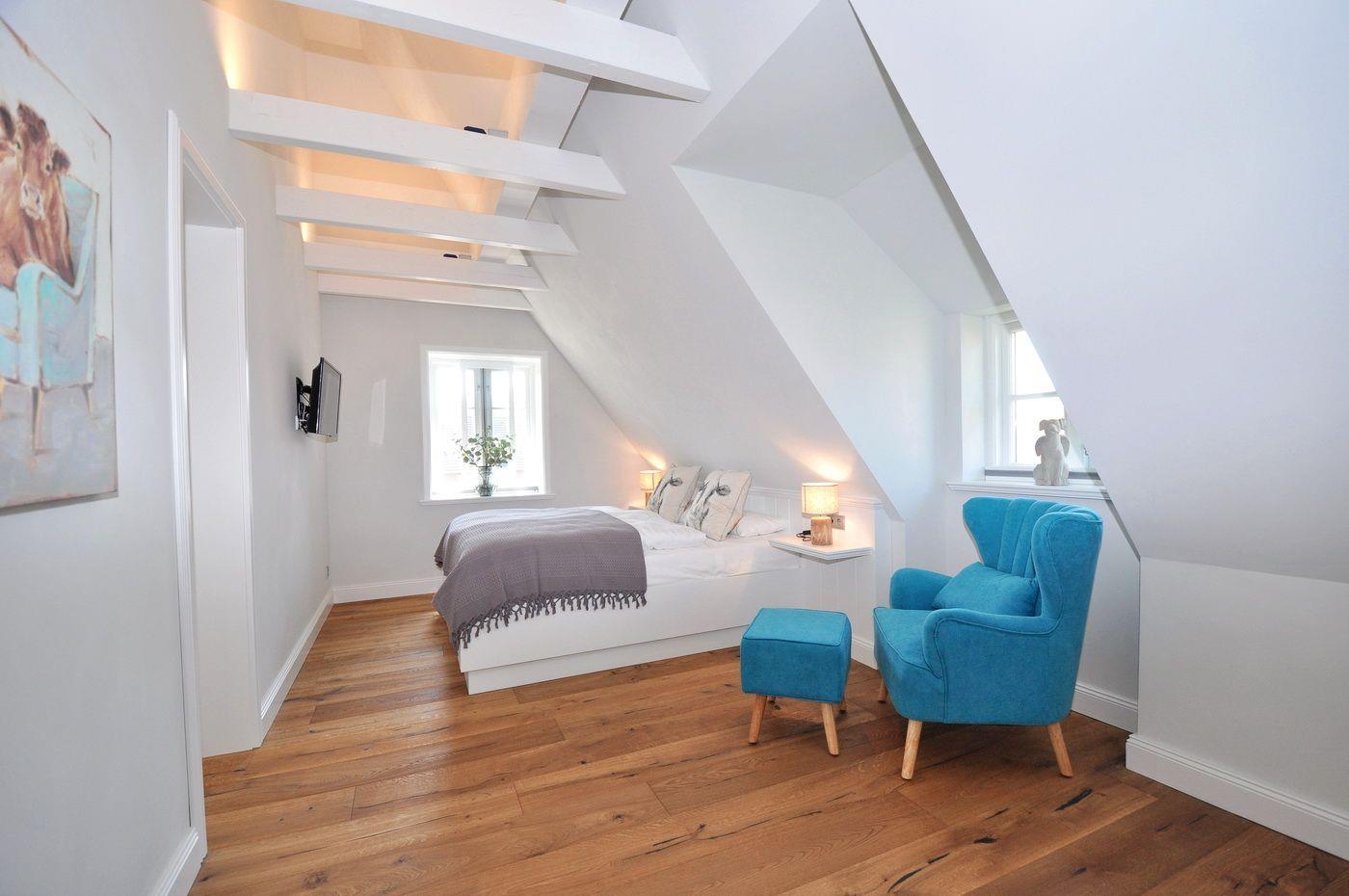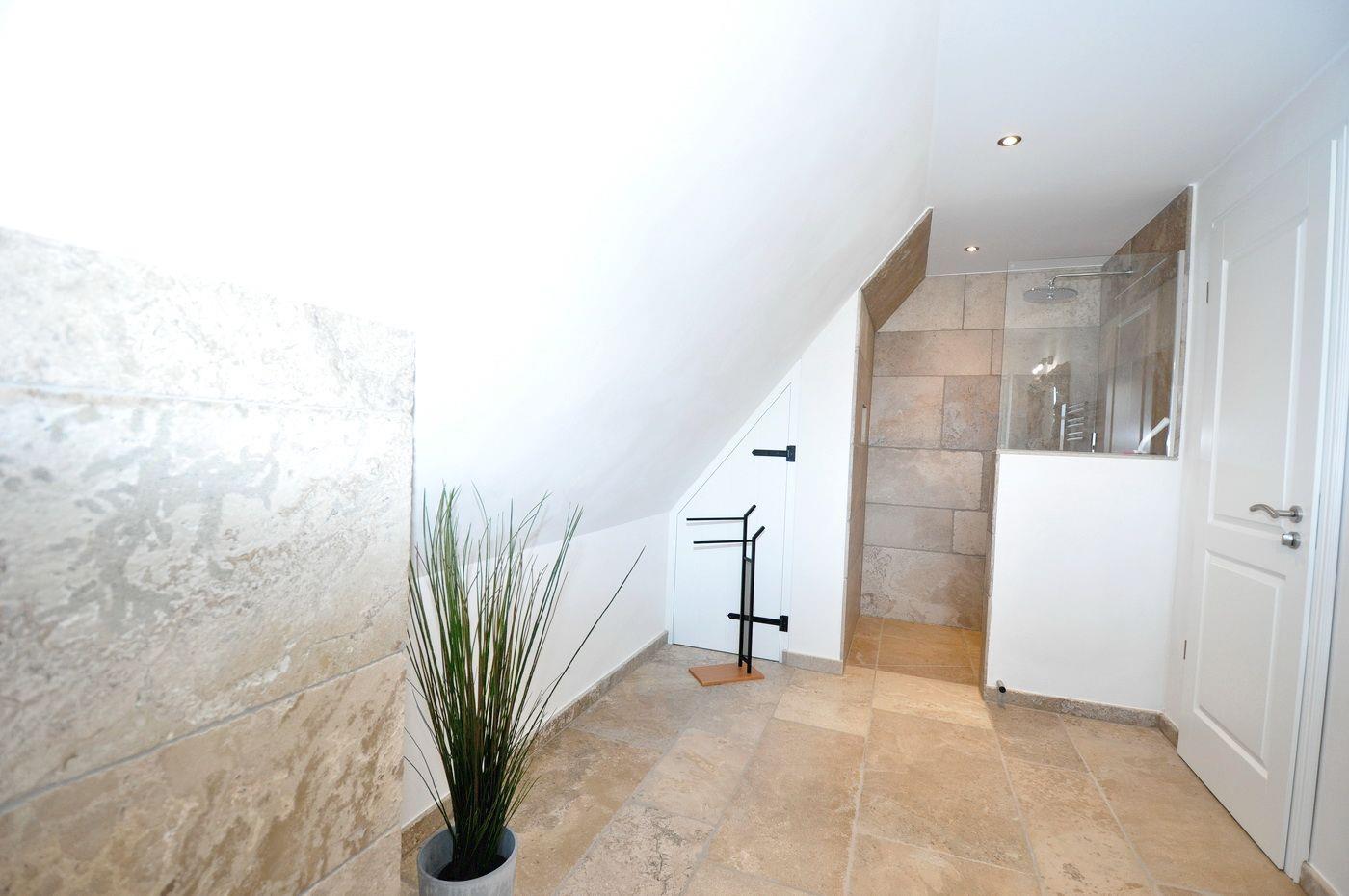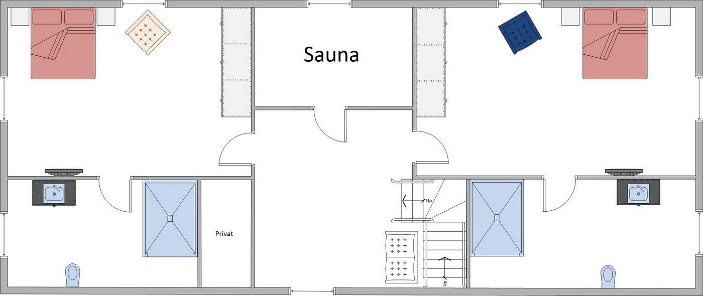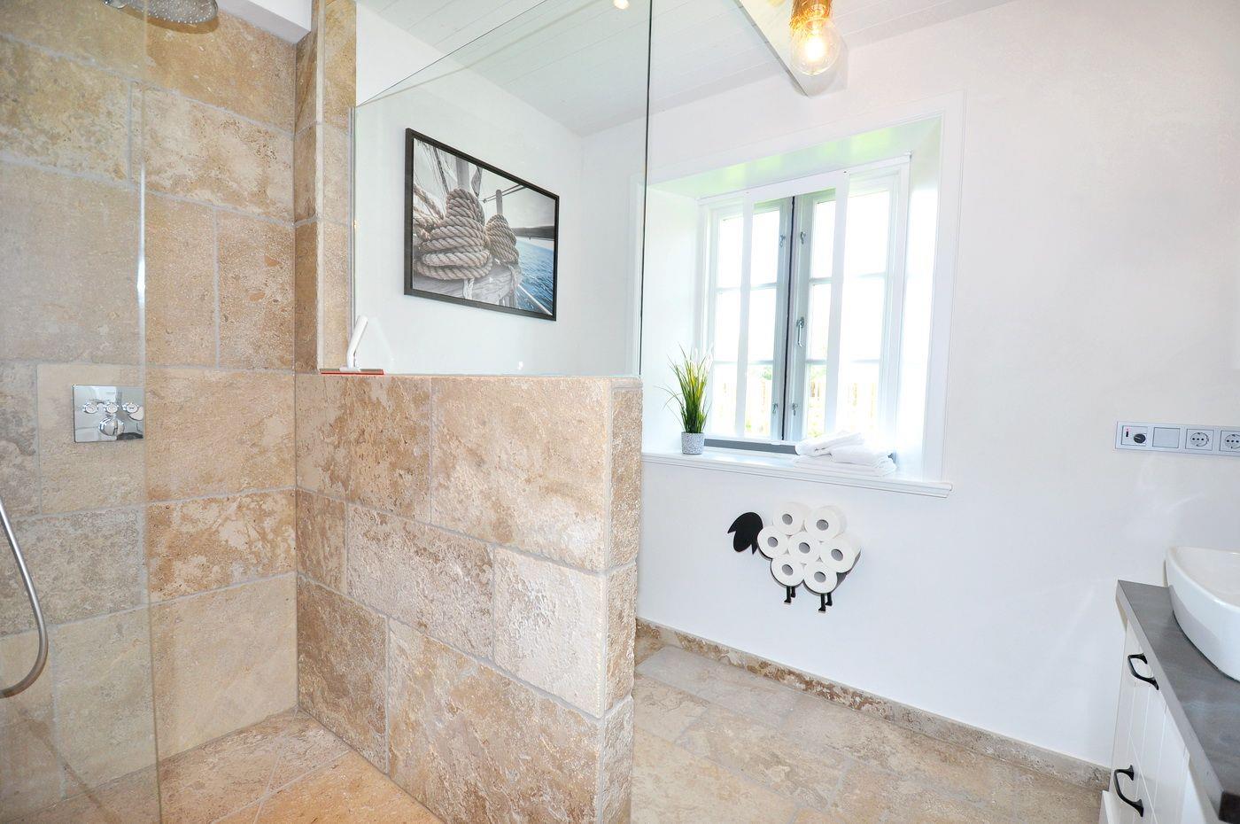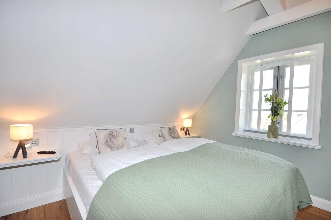 Obergeschoss: zwei Schlafzimmer mit Doppelbett (je 180 x 200 cm), TV und jeweils einem Duschbad en Suite, eine Sauna