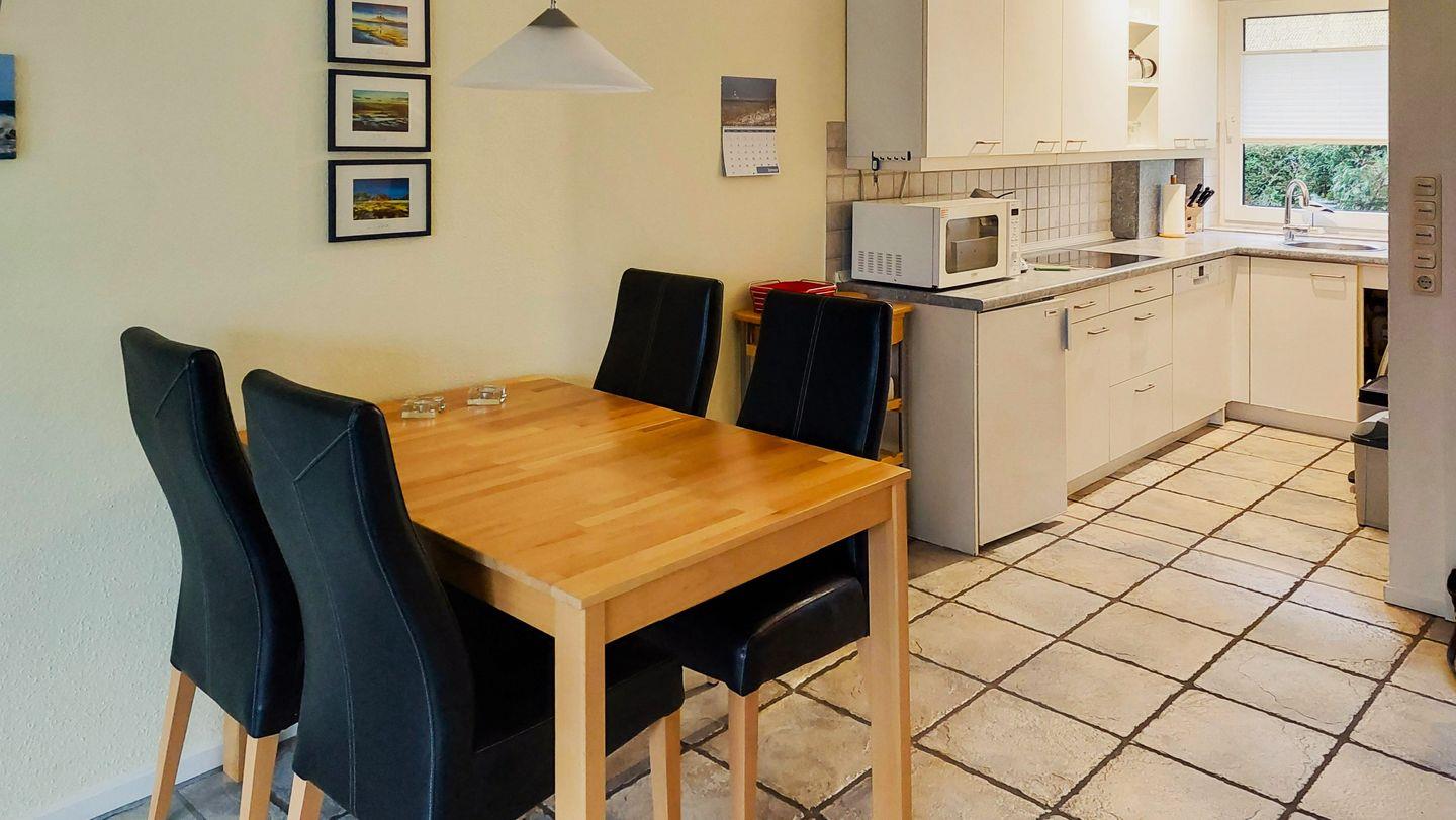 Im Erdgeschoss lädt der einladende Wohnbereich mit Essecke zu entspannten Stunden ein. Die offene Küche, ausgestattet mit einem Geschirrspüler und einer Mikrowelle, ist der ideale Ort, um gemeinsam mit Ihren Lieben zu kochen und zu speisen.